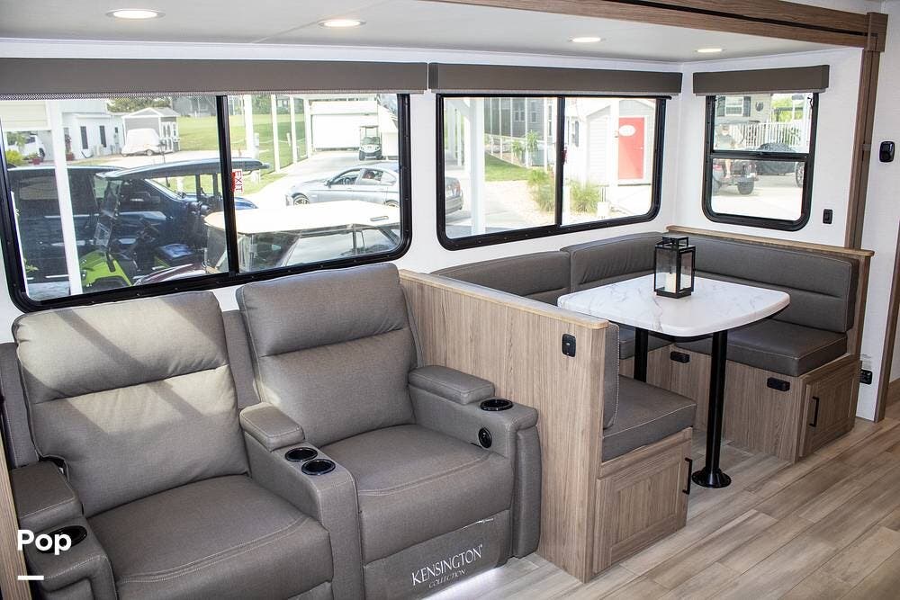 In the living area, you get stadium-style recliners--an upgrade from the standard jackknife sofa--and a U-shaped dinette that converts for extra sleeping space. That said, this layout works best for two to four people.