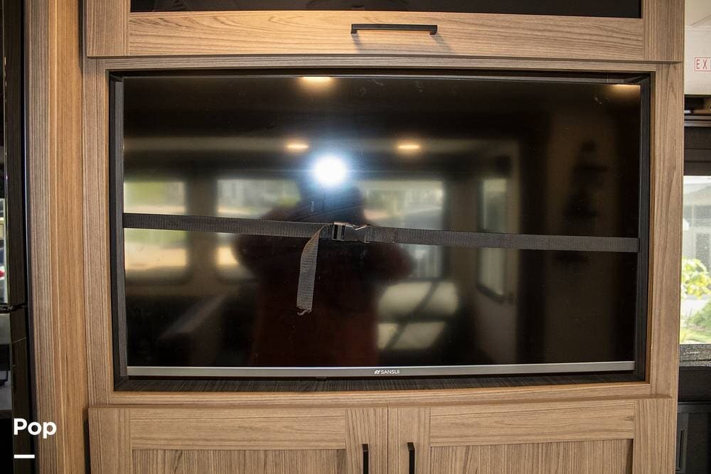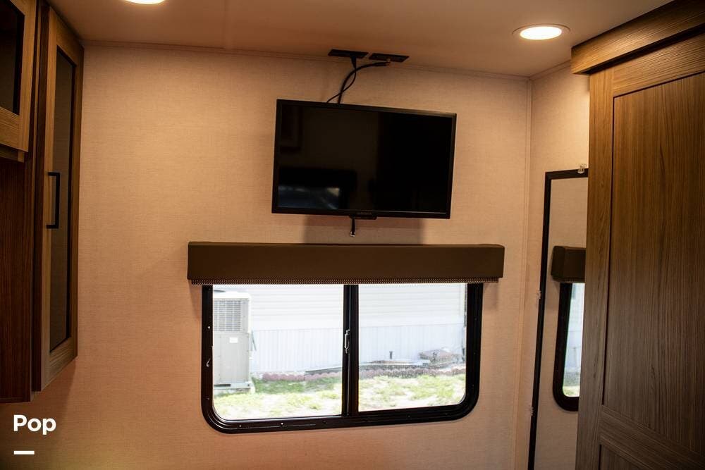 You'll find a 40-inch smart TV and Bluetooth speakers in the main area, plus two A/C units( standard only includes one unit) and a propane furnace that handles the climate control.
