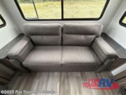 You will feel right at home camping in this travel trailer! The rear living area has a rear sofa and a set of theater seating conveniently across from the entertainment center with a 50" class HDTV above a pull-out fireplace storage for a cozy evening indoors. Prepare your best home cooked meals with the three burner cooktop, kitchen island which even has a tip-out trash can, and 10 cu. ft. 12V refrigerator. Enjoy your meals at the free standing dinette then either freshen up in the full bathroom with the 30" x 36" shower or head outside to relax under one of the two awnings. The front private bedroom has a queen bed for you to lay your head on at night and has wardrobe nightstands for your items!