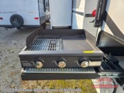 Start camping in luxury with this travel trailer! Prepare your best home cooked meals in the rear kitchen with the three burner cooktop, 10 cu. ft. 12V refrigerator, tip-out trash can, and even two bar stools to enjoy your morning coffee while reading the newspaper. Freshen up in the full bathroom with the 30" x 36" shower or head outside to relax under one of the two awnings. There is even an outdoor griddle/grill underneath one of the awnings to protect you while you grill up some juicy burgers, plus an outside 32" TV. The front private bedroom has a queen bed for you to lay your head on at night and has wardrobe nightstands for your items. Relax in true comfort each night on one of the two furniture spots in front of the entertainment center with a 50" class HDTV with a fireplace below it!