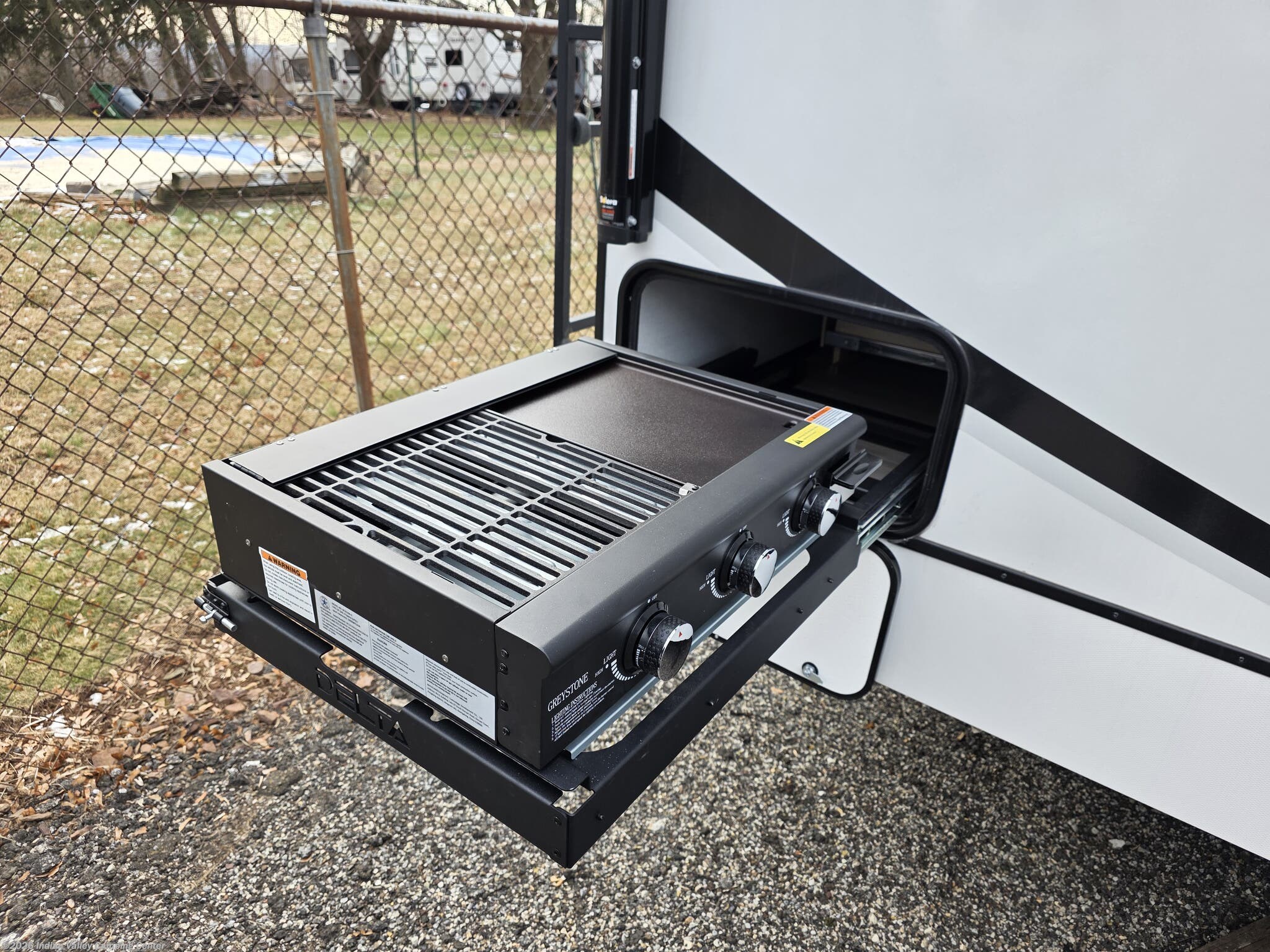 - Towability and camping readiness: Bumper pull hitch, twin axles, single exterior entry, and 2 slideouts