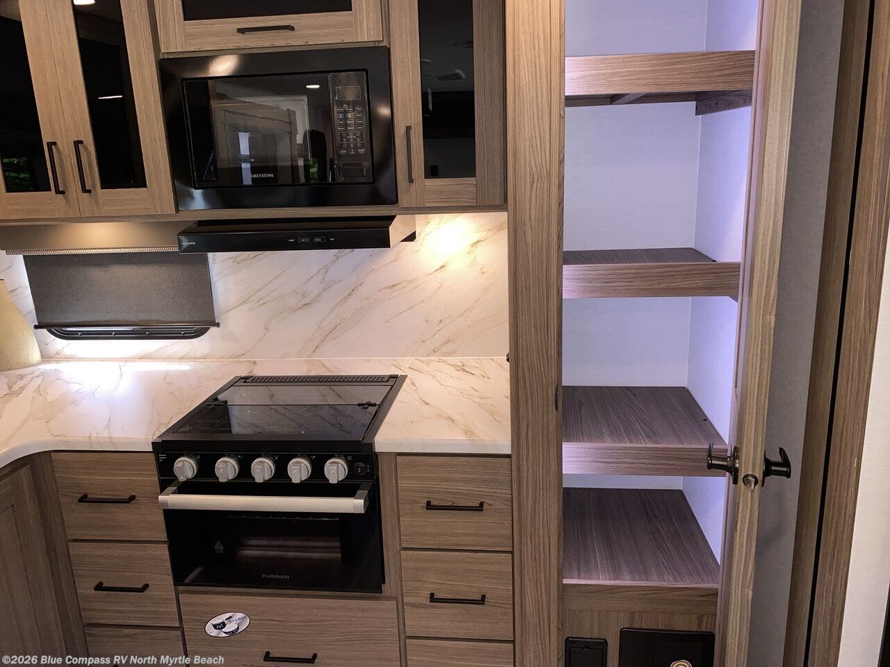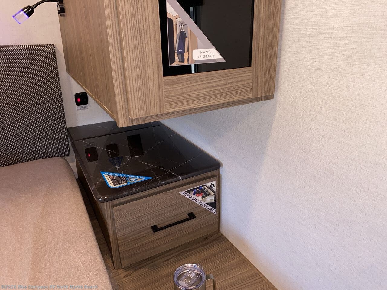 Form and function works together with every one of these Alliance RV Delta travel trailers! They are built with a walk-on roof with a seamless PVC roof covering, Mylar reinforced exterior seals, and a heated and enclosed underbelly to protect your unit in all seasons. The commercial grade vinyl flooring will be easy to clean and the oversized atrium windows throughout let in plenty of natural sunlight. With 62 cu. ft. of drop frame pass-through storage, you can bring along all of your essential camping gear plus it has USB charging for more convenience. There are many at home interior conveniences including a Bluetooth speaker, USB charging throughout, and even a pull-out kitchen trash can. Come find your favorite model today!