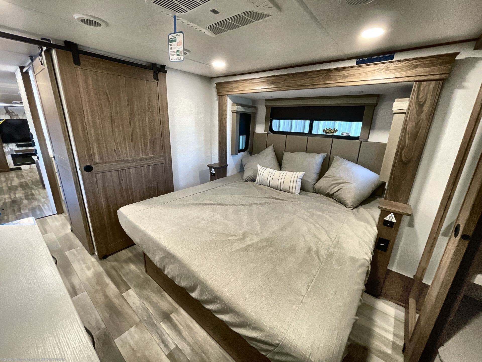 The Paradigm fifth wheels by Alliance RV are functional, high-quality, and luxurious for an unforgettable camping experience. There are three A/C units and a 40K BTU furnace to keep you comfortable year around, and you'll appreciate additional convenient amenities, like the all-in-one enclosed/heated utility center and the color coded and numbered wiring. A Rota-Flex pin box comes standard for hassle-free towing, along with Super-G 4,400 lb. rated tires and Dexter 7,000 lb. axles. You'll love the kitchen with its LG solid surface countertops and Insignia range, plus there is LED motion lighting in the pantry and a Maxx fan with a rain sensor to keep everything fresh when making dinner. Each model also includes an HD Smart TV in the living room and bedroom, plus a Winegard Air 360 antenna to keep you connected to the outside world. And of course there are a variety of options you can choose from to further customize your fifth wheel; dual pane windows, Super Solar Plus, slide out awning toppers, and generator prep or a generator to name a few!