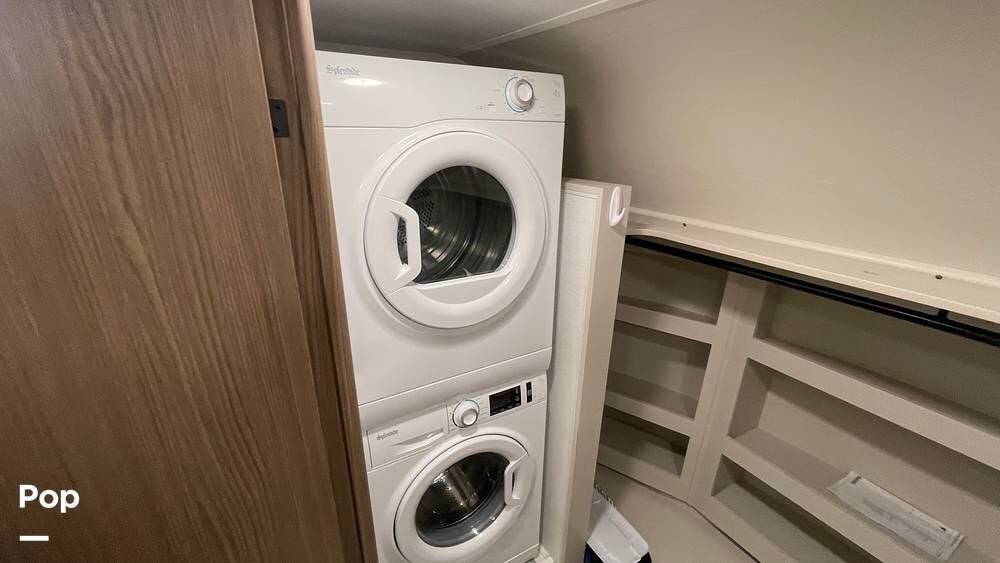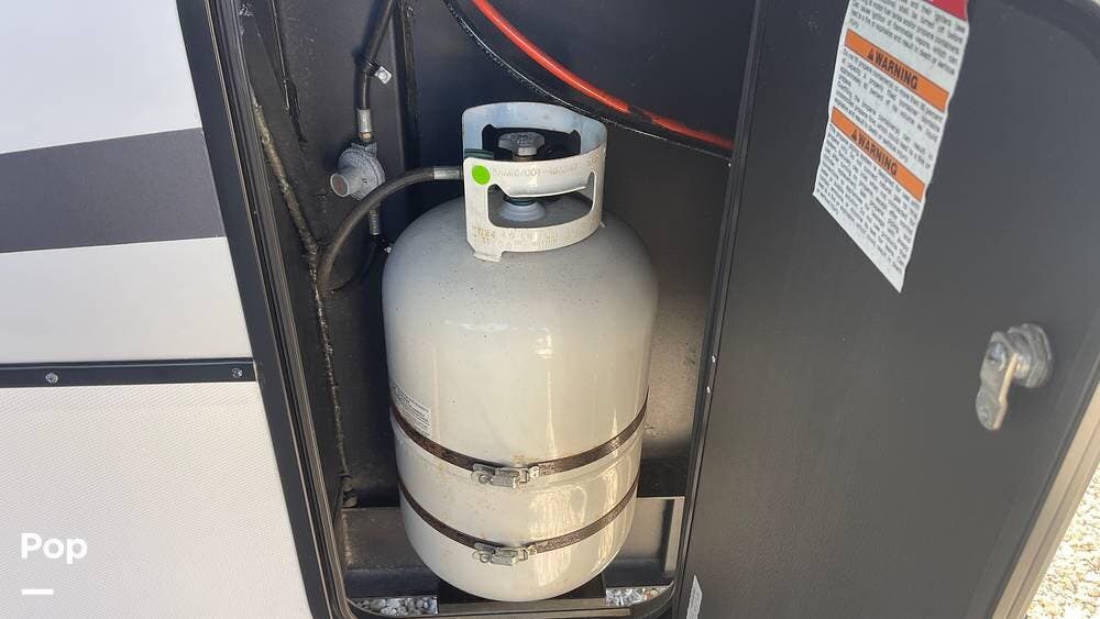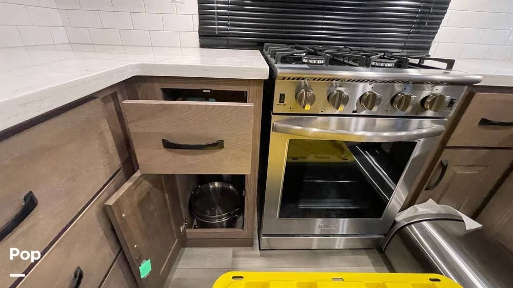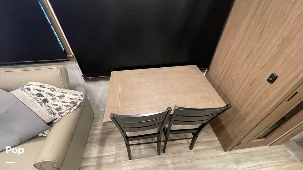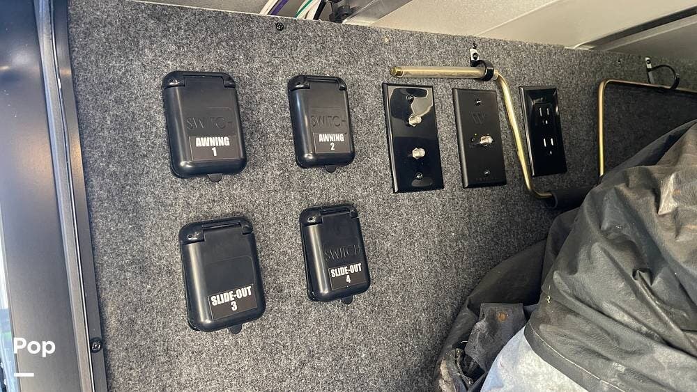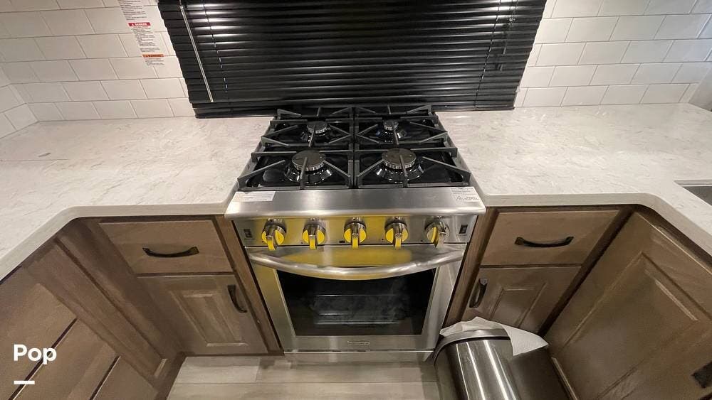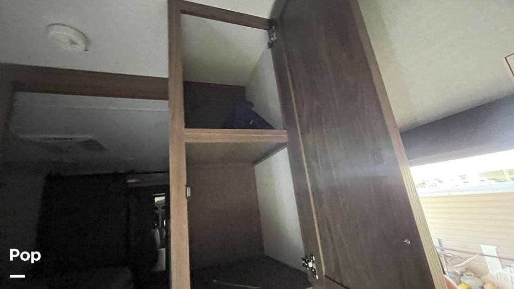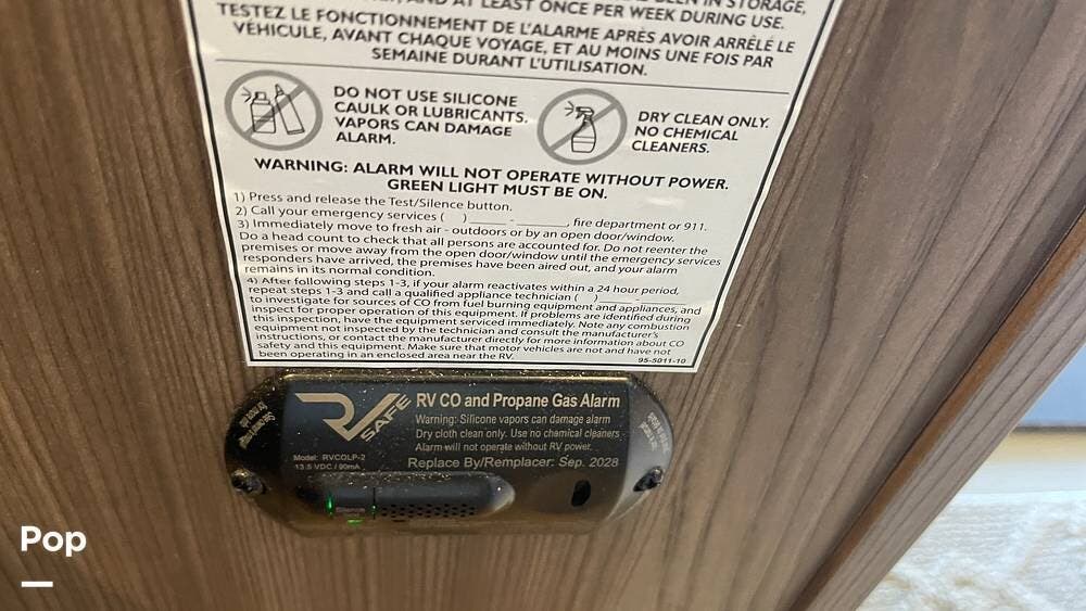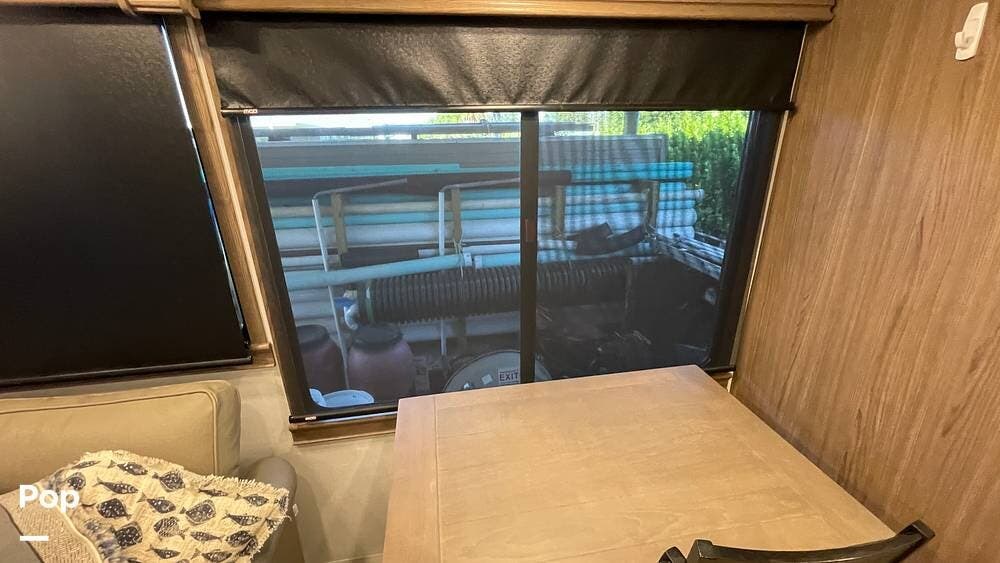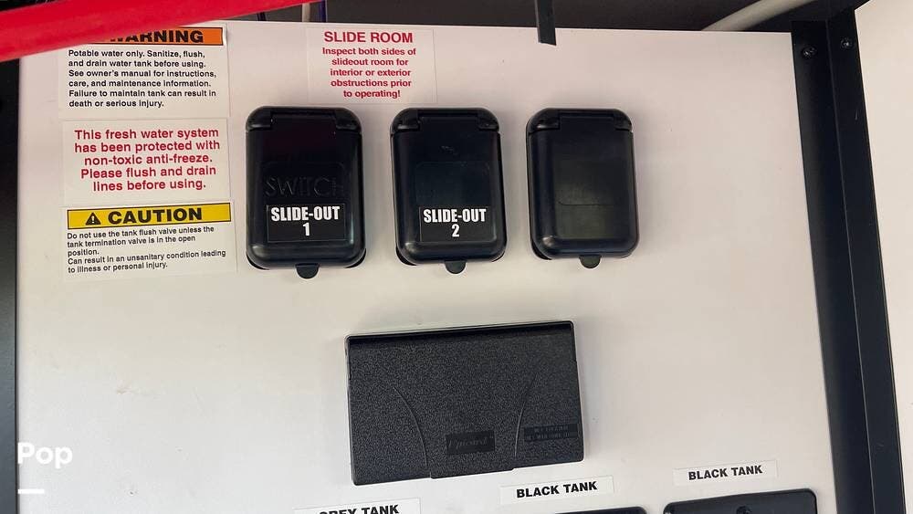 Inside, the open floor plan connects the rear kitchen, dining, and living areas. Washer and Dryer included, full size gas oven, walk in closet, two awnings, push button septic dump . Day night shades