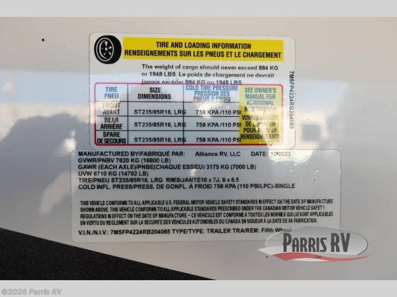 Request More Info on this 2024 Alliance RV Paradigm 385FL Offered for sale by Parris RV