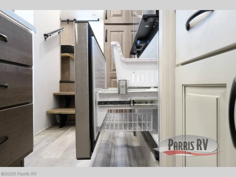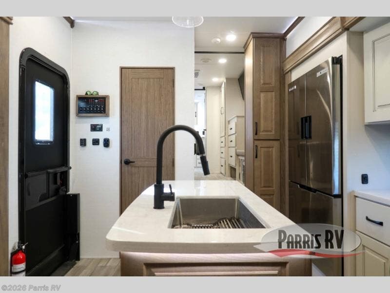 The Paradigm fifth wheels by Alliance RV are functional, high-quality, and luxurious for an unforgettable camping experience. There are three A/C units and a 40K BTU furnace to keep you comfortable year around, and you'll appreciate additional convenient amenities, like the all-in-one enclosed/heated utility center and the color coded and numbered wiring. A Rota-Flex pin box comes standard for hassle-free towing, along with Super-G 4,400 lb. rated tires and Dexter 7,000 lb. axles. You'll love the kitchen with its LG solid surface countertops and Insignia range, plus there is LED motion lighting in the pantry and a Maxx fan with a rain sensor to keep everything fresh when making dinner. Each model also includes an HD Smart TV in the living room and bedroom, plus a Winegard Air 360 antenna to keep you connected to the outside world. And of course there are a variety of options you can choose from to further customize your fifth wheel; dual pane windows, Super Solar Plus, slide out awning toppers, and generator prep or a generator to name a few!