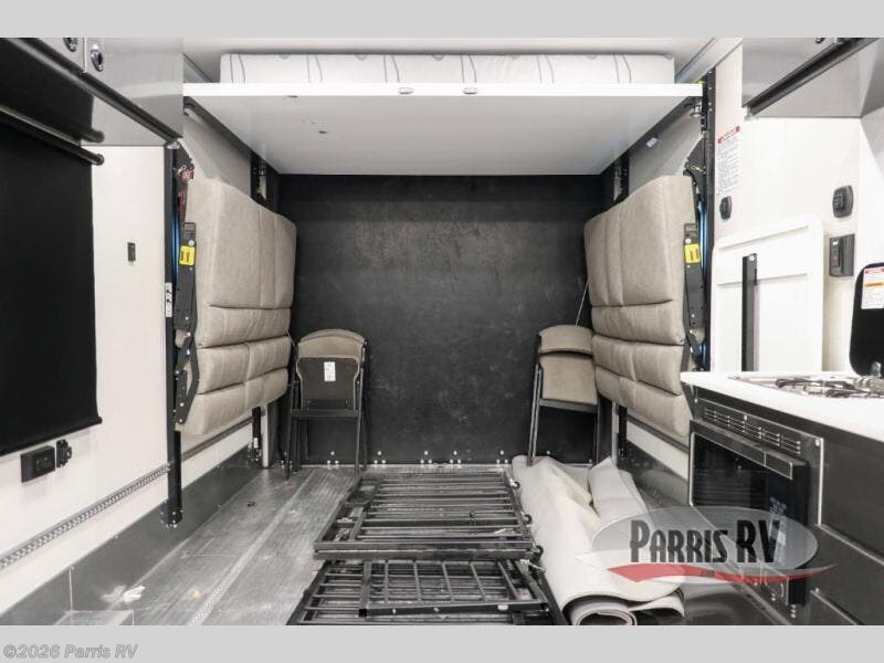 You won't want to camp any other way once you step inside this toy hauler! It has a 15' 10" total garage space with 5,000 lb. tie downs in the floor so you can be sure your toys will arrive safely. Once you have reached your destination, set up the Happijac bed, sofa sleeper, and dinette with benches for a quick afternoon nap or start making dinner with the flush mount two burner cooktop and oven. After a fun time on the trails rinse the mud out of your hair in the full bathroom with the one piece fiberglass shower with an Extend-A-Shower and curtain, plus there is a full length mirror on the door to make sure you got it all out. Start each morning feeling recharged after sleeping on the residential queen bed with storage and USB power outlets on either side for your phone to recharge at the same time!