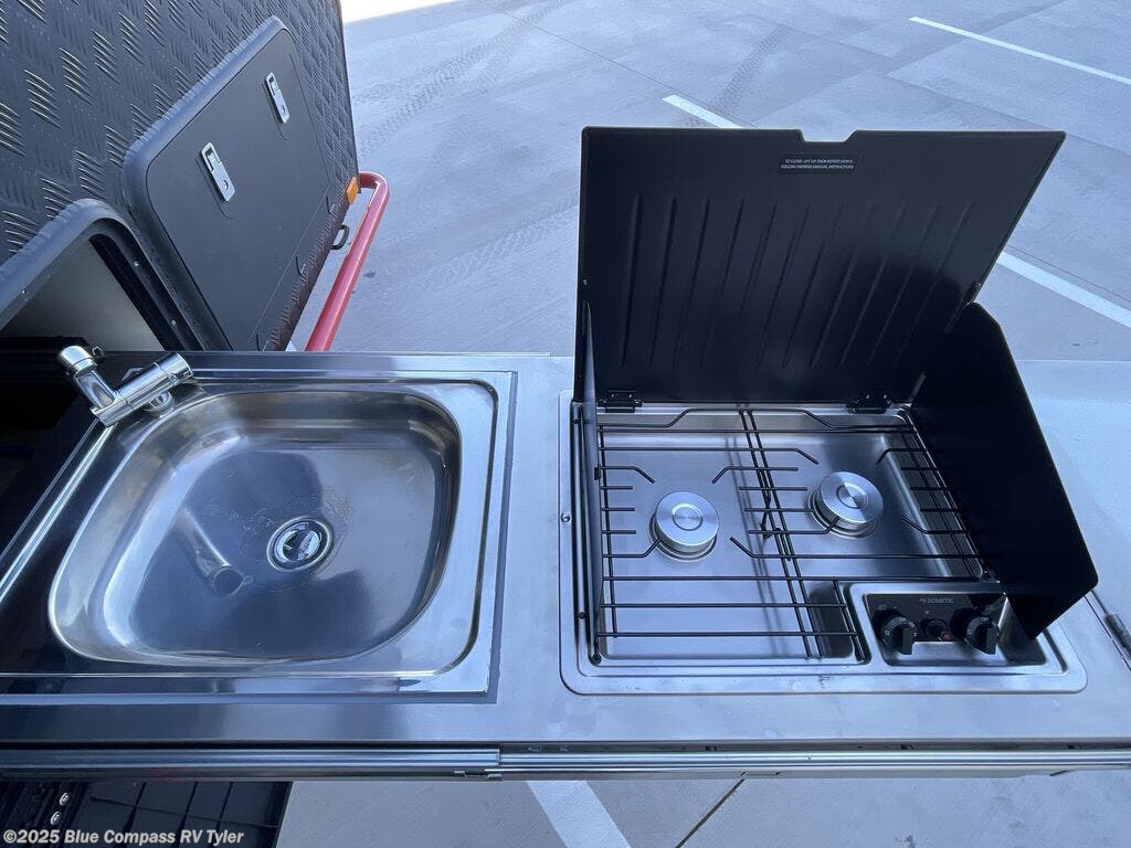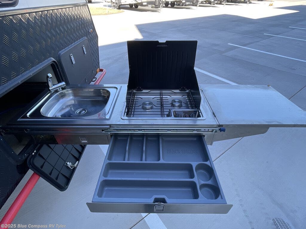 The Black Series Camper HQ Series travel trailers are one-of-a-kind! You won't find many more trailers like these out on the market. Built for the extreme camping enthusiast, the HQ Series is off-road and off-grid friendly. These rugged trailers have aluminum composite panels with added aluminum diamond plating for added strength and a stone guard/skid guard that adds protection for the bottom edge of the trailer. The Eurovision windows have a fly screen and privacy shades, and there is also a tri-lock security door with locking fly screen. An amazing feature that comes on each of the models is the outdoor kitchen which has a stainless steel sink slide, a propane stove, and a large prep table, and the roof-mounted solar panels are amazingly useful for those off-grid trips.