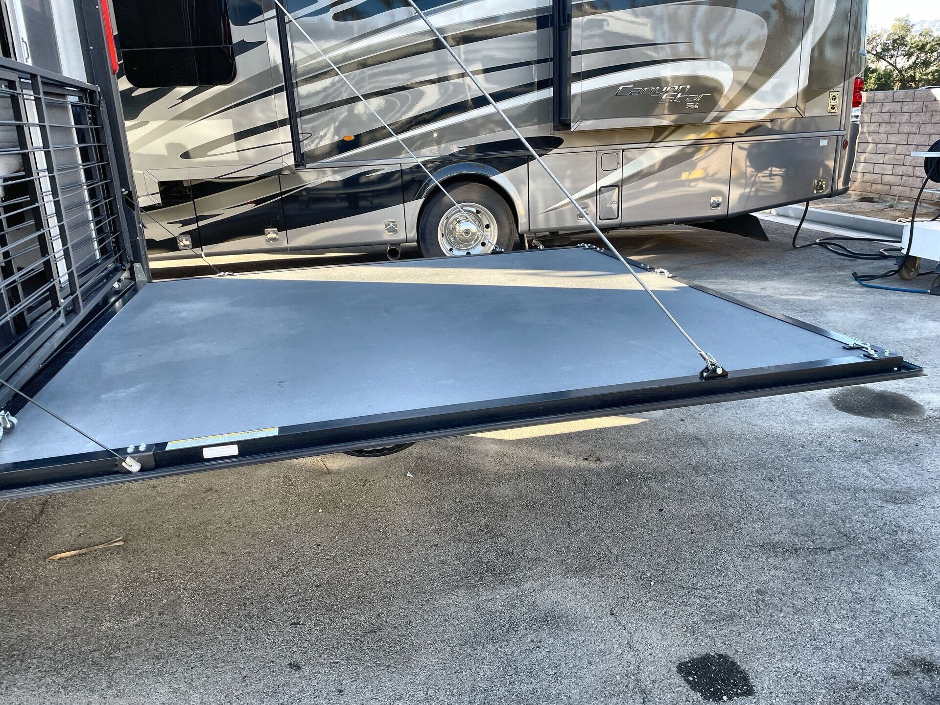 With any Model G toy hauler fifth wheel by Brinkley you will enjoy luxurious amenities, tons of storage space, and innovative features that have been developed and tested in the real world. Durable construction includes an industry leading PDI process, an industry best insulation package, and reinforced and walkable slide roofs. Some of the exterior features you'll find are a 3-way pass-through with a multi-functional flip-up bulkhead wall, under I-beam storage, a MAX-Vision reverse lighting system, and a low-maintenance roof to name a few. A Rockford Fosgate audio system comes standard, along with a OneControl app system that lets you control your fifth wheel's functions right from your mobile device. You will find the solar system with a designated storage area to be ultra convenient, plus there is a FlexPower 5500 with a dual fuel inverter generator for all your power needs. Head inside to find a residential interior with Brinkley's CraftSense wood trim construction, floating entrance steps, integrated window screens and insulated blackout blinds, and residential solid surface countertops plus backsplash. You will also enjoy the neon shower lighting and recessed medicine cabinets in the bath, plus motion activated LED bed lights and dual bedside outlets in the bedroom. Choose a Model G toy hauler fifth wheel to experience all the luxury it has to offer!