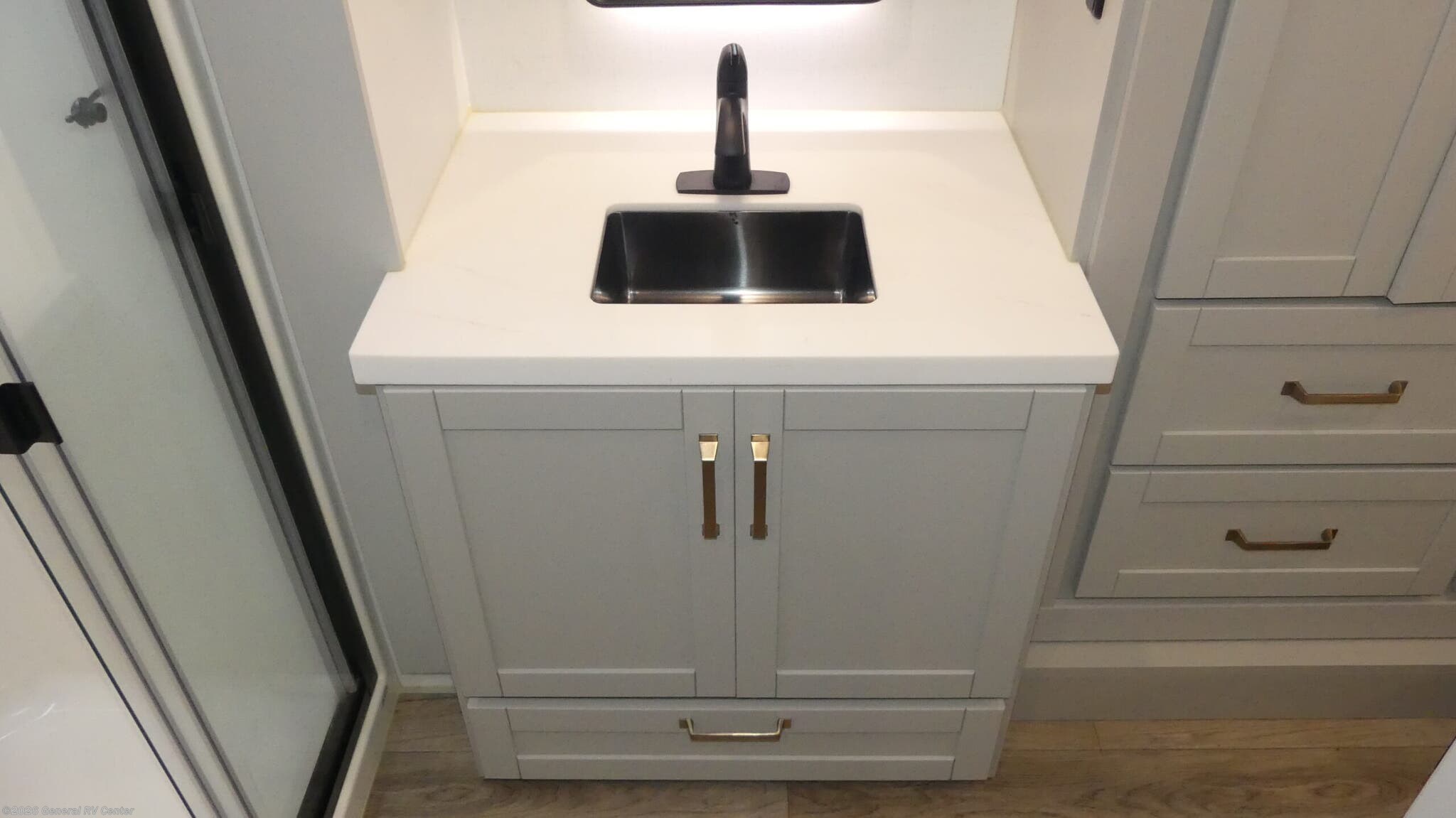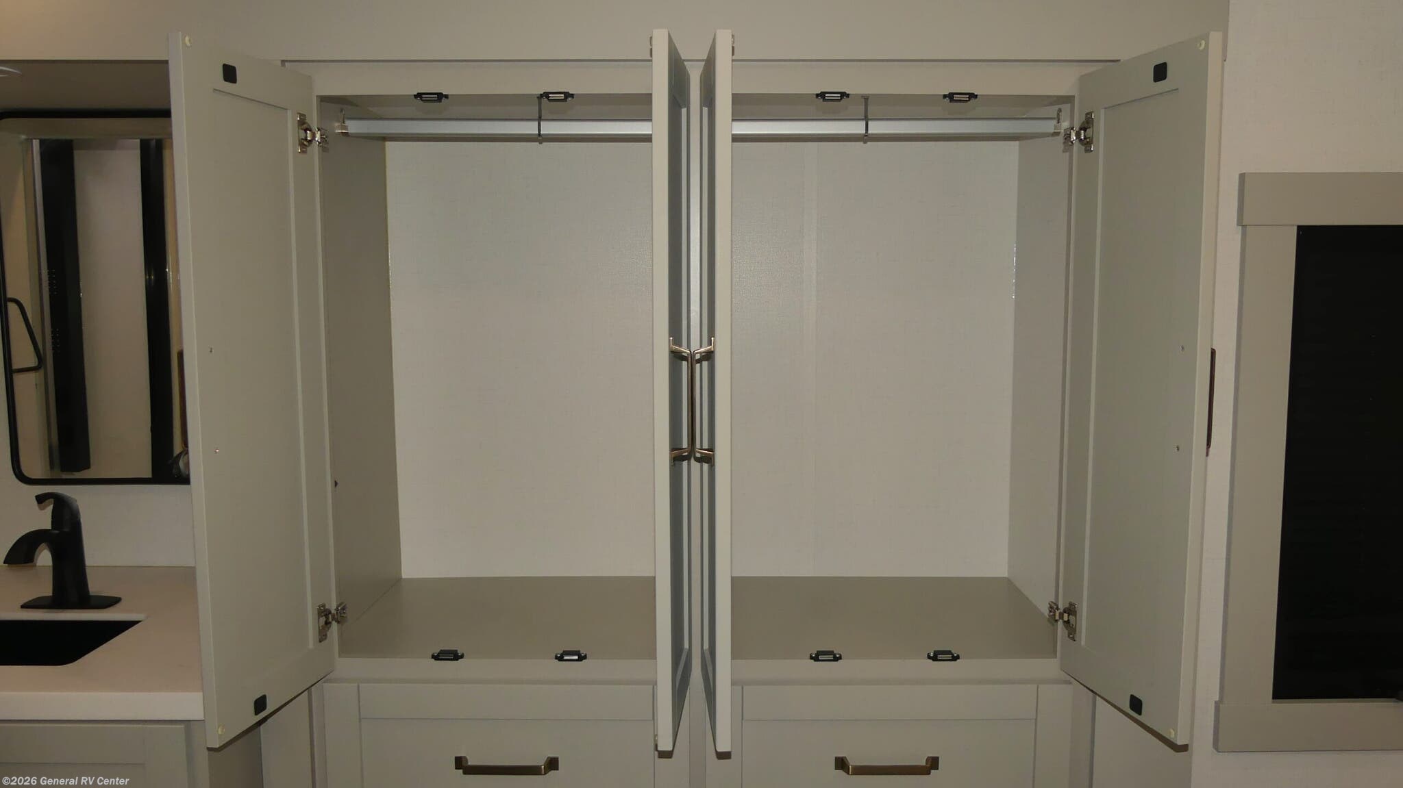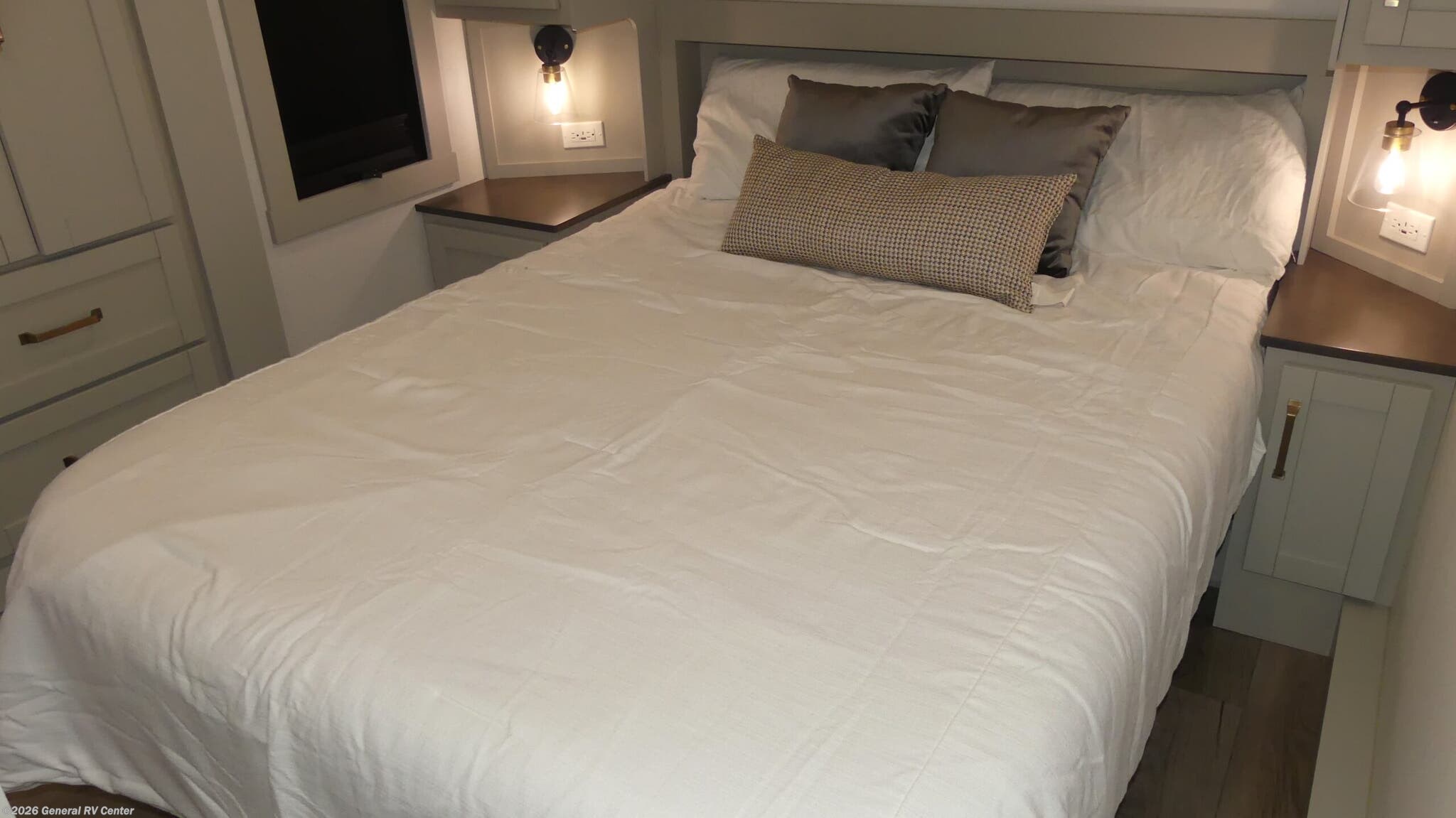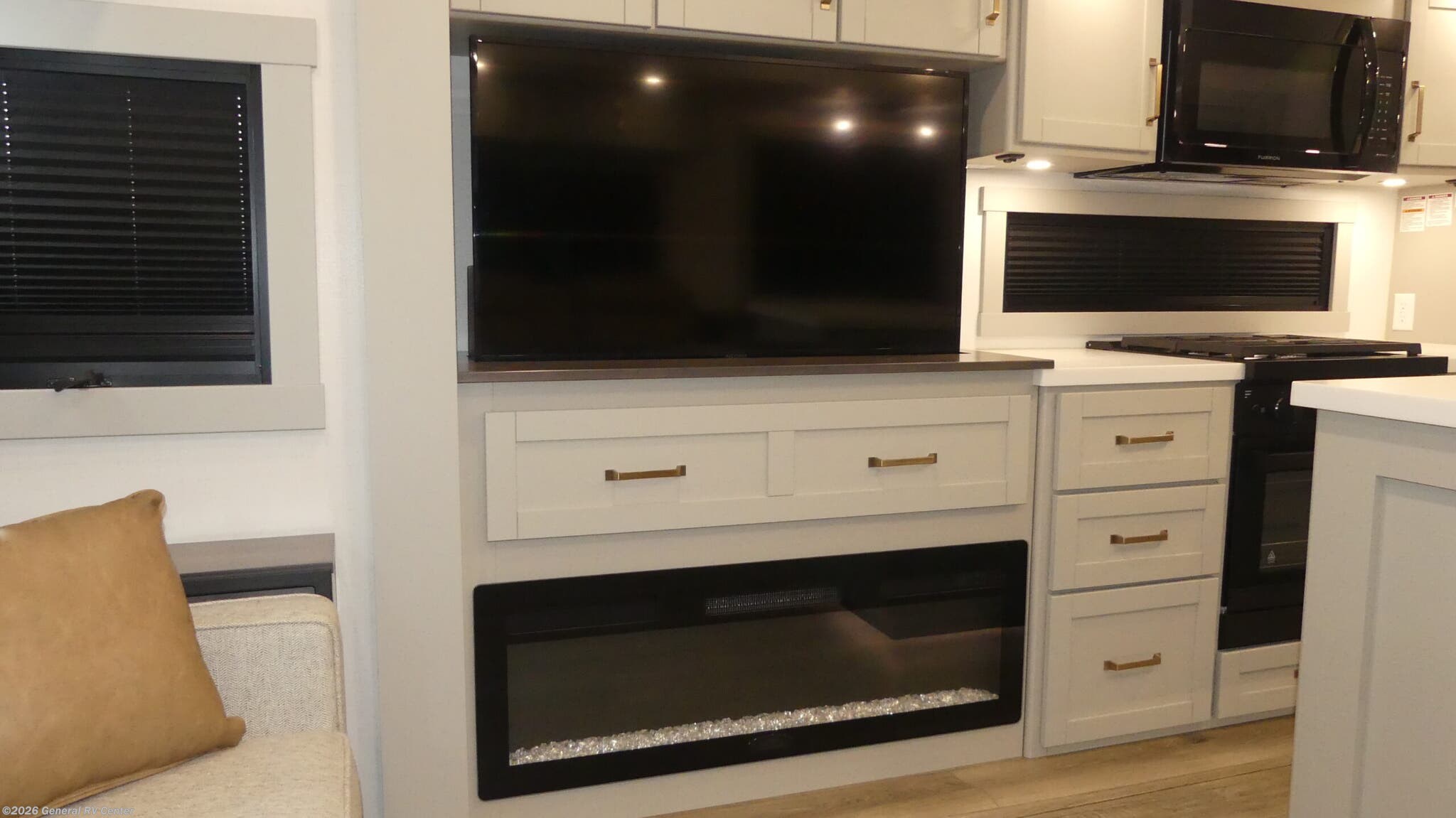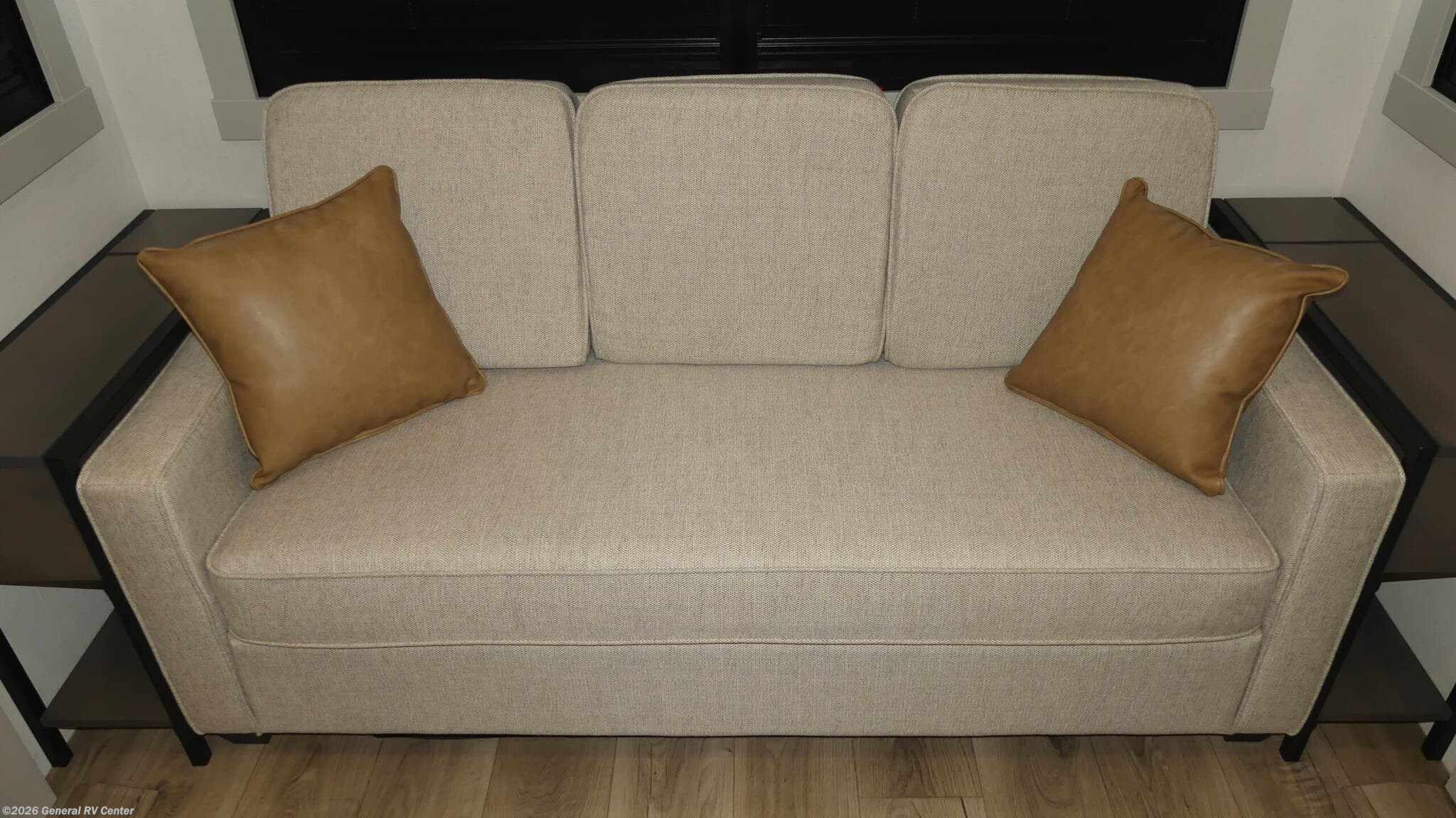 Step into the 2024 Brinkley Model Z 2900, where comfort meets style in an extraordinary way. This RV is designed for those who love to travel without compromising on luxury. With a length of nearly 33 feet, it offers a spacious haven for up to four travelers, featuring a cozy queen bed and a convertible bed for added versatility. The expansive rear living area is perfect for relaxation, boasting dual tri-fold sofas and theater seating, ensuring everyone has the best seat in the house. The center kitchen is a chef's delight, equipped with a three-burner cooktop and a full-size electric refrigerator, making meal preparation a breeze. The thoughtful layout includes a center bath with a stylish plastic and glass shower, offering convenience and privacy. With two gray tanks and a generous fresh water capacity of 75 gallons, extended adventures are well within reach. The dual powered retractable awnings provide ample shade, perfect for enjoying the great outdoors. Whether you're parked by a serene lake or exploring the mountains, the Brinkley Model Z 2900 is your ultimate travel companion. For more information, visit your nearest General RV Dealership Location.