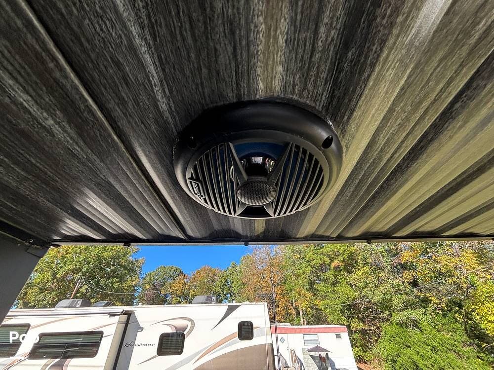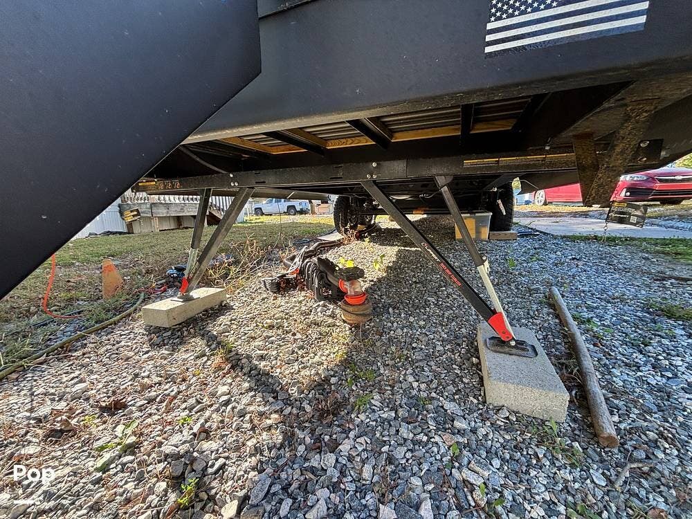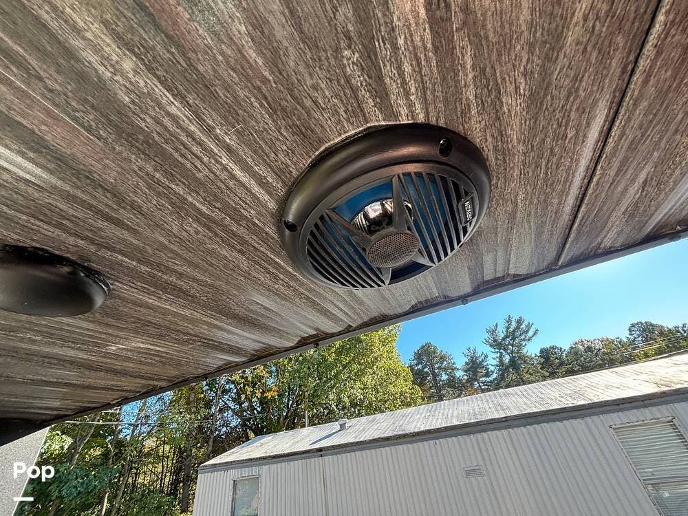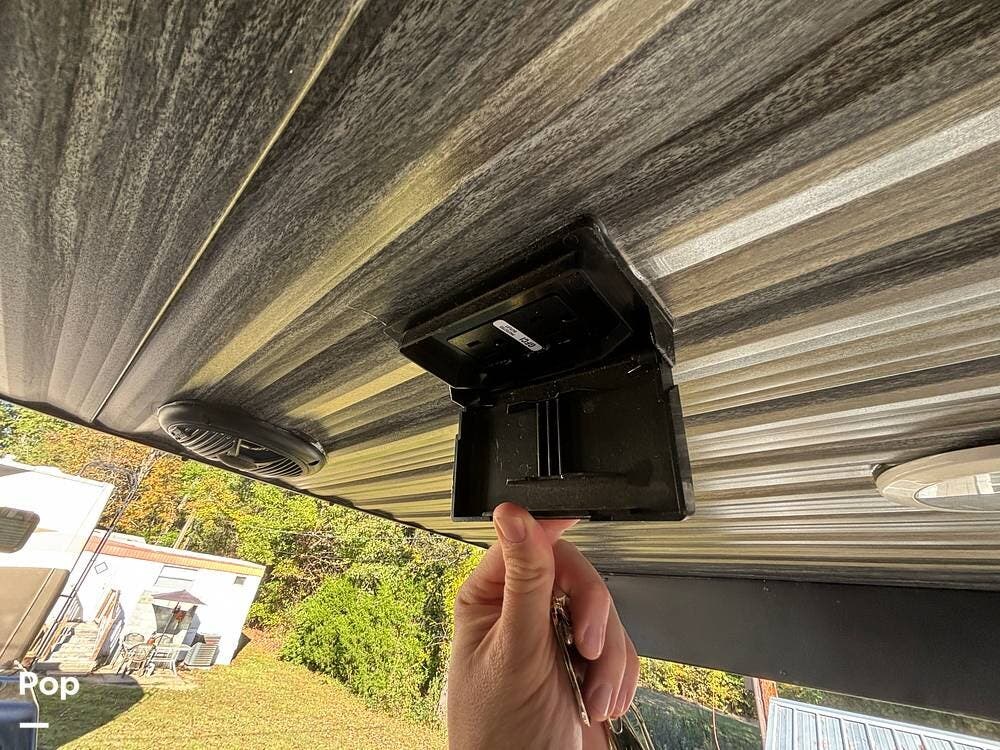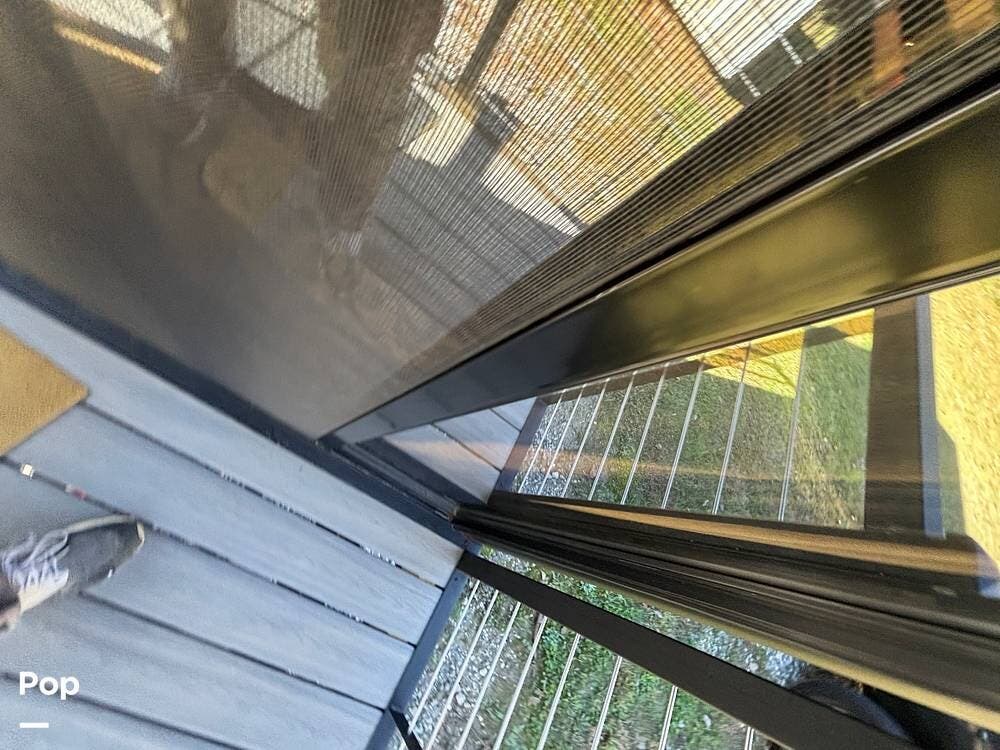 Its exterior is built for durability and ease of use, featuring a solid frame construction, attractive metal sidewalls, and residential-style windows that let in abundant natural light. The front patio doors enhance the residential feel and allow a seamless transition between indoor and outdoor living. Stabilizer jacks provide a solid foundation once parked, while exterior lighting and large storage compartments add practicality and convenience.