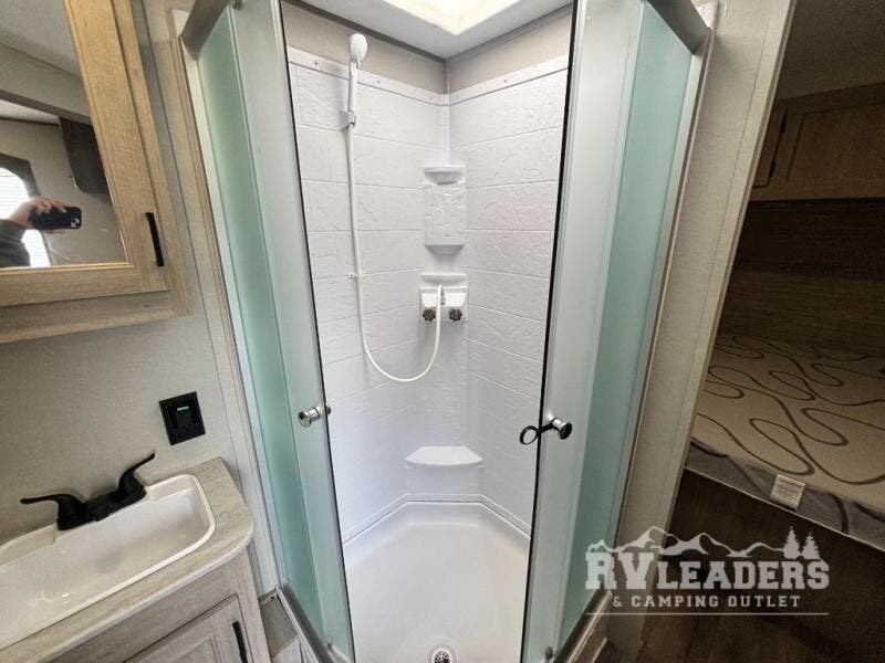 The best looking, most affordable toy hauler is found in the Catalina Trailer Blazer by Coachmen. Each one is constructed with a seamless alpha roof membrane, an enclosed and fully sealed underbelly, and a cambered structural steel I-beam frame for added support. There is a rear loading cargo door with a 3,000 lb. capacity, a black out screen wall with a zip walk-thru and windows, plus 500 lb. tie-downs to secure your toys. You'll love the interior with its Congoleum woodplank linoleum flooring and LED interior lighting. Head outside to find an electric awning with multicolored LED lights and a remote, a 15' Toy Loc cable, a "Leash Link" quick hookup D-ring for pets, and upgraded aluminum wheels. The Catalina Trail Blazer also comes with RV-LINK 4G LTE connectivity with a WiFi booster and extender, a JBL Aura Cube media center, plus premium JBL interior speakers for your pleasure!