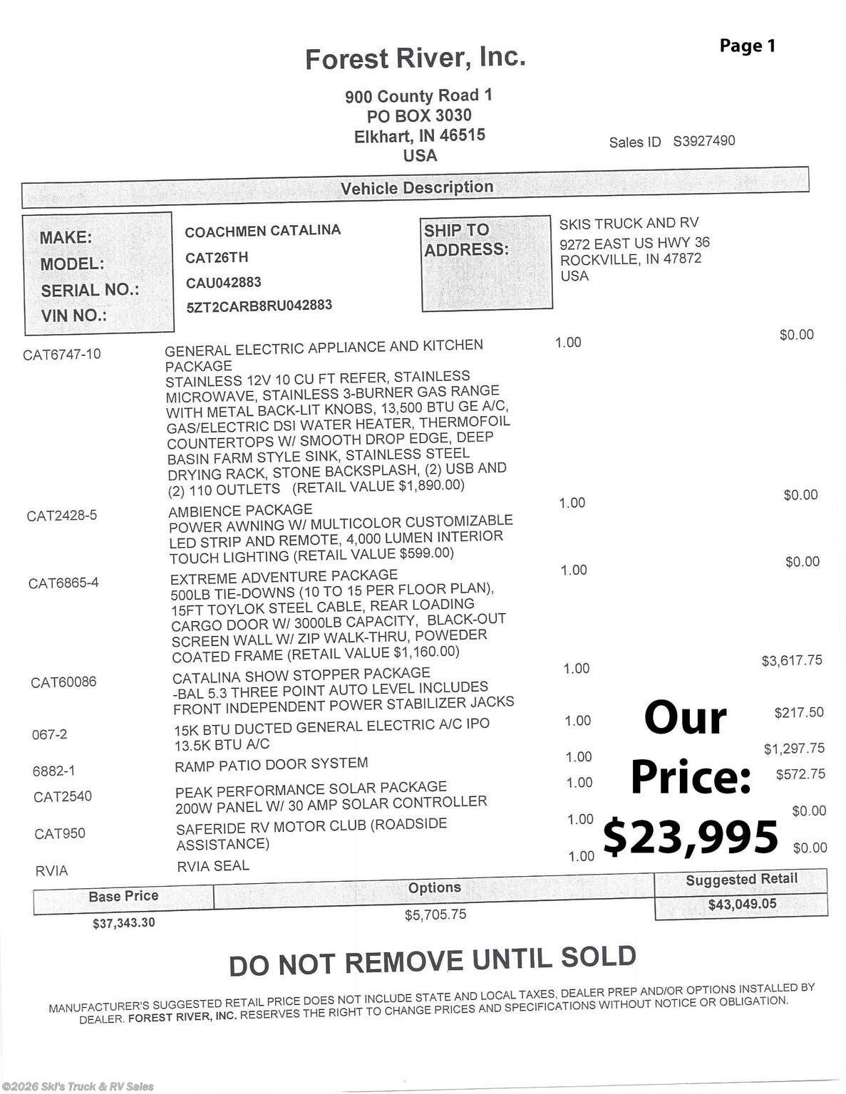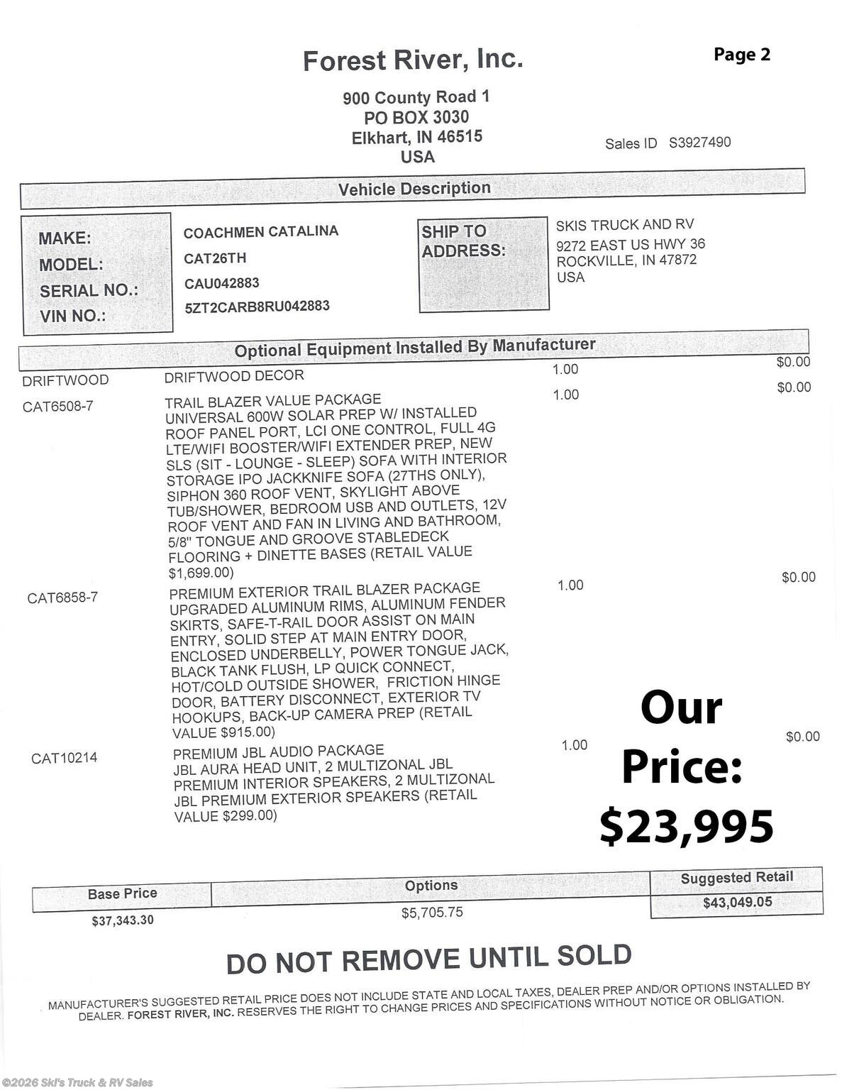 Request More Info on this 2024 Coachmen Catalina Trail Blazer 26TH Offered for sale by Ski's Truck & RV Sales