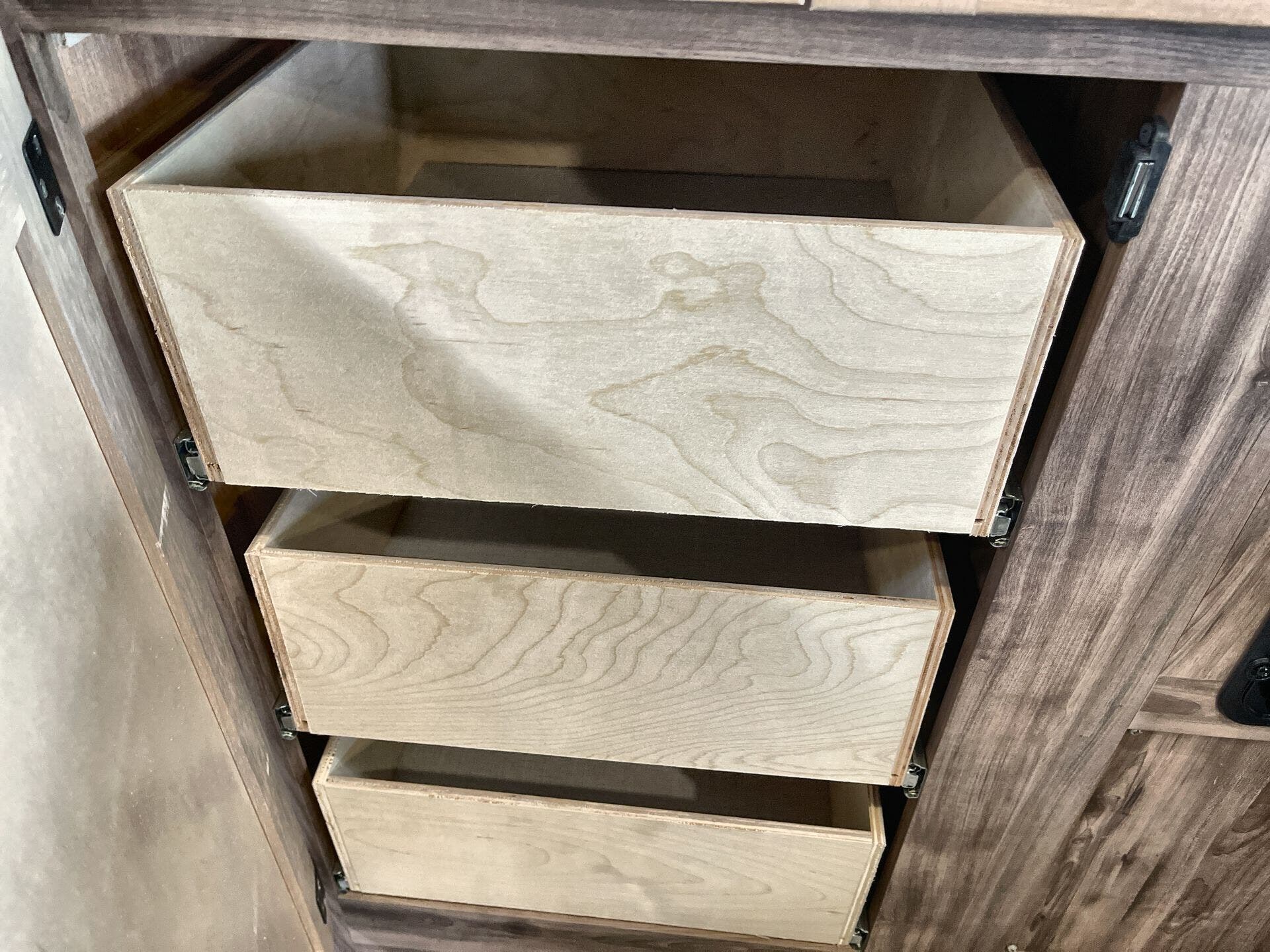 - Fresh Water: 41 gallons | Grey Water: 59 gallons | Black Water: 28 gallons