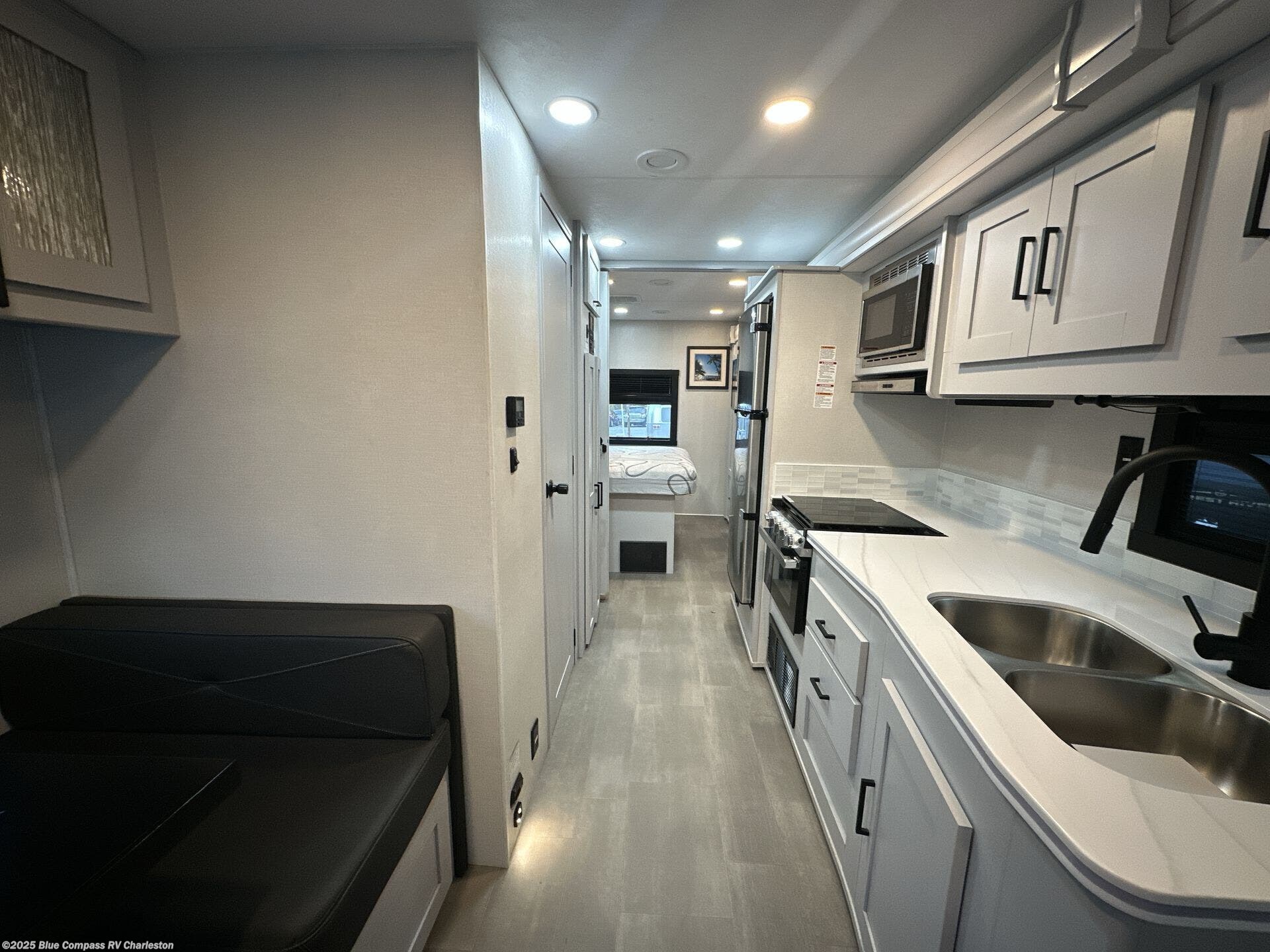 You will be impressed with all that this motorhome has to offer! Starting with the exterior kitchen with a double sink to make for easy clean up, and the exterior LED TV so you can watch your favorite show as you cook. The rear private bedroom will have you feeling right at home providing a 60" x 74" queen bed that has a CPAP station above it, and opposite the bed wardrobes on either side of the LED TV and storage space. There is a broom closet for your convenience just outside the full bathroom which features a 38" x 24" shower with skylight for more head room and natural lighting. The fully equipped kitchen has everything you need to prepare your meals including a stainless steel microwave oven, and you can enjoy dining at the 30" x 70" booth dinette. Relax and enjoy a great book while sitting on the 63" sofa with storage below for extra games or a cozy blanket!