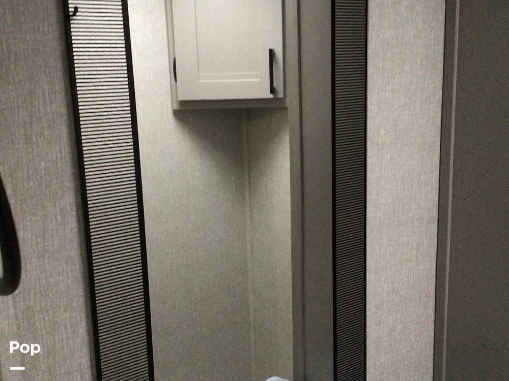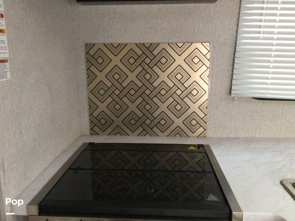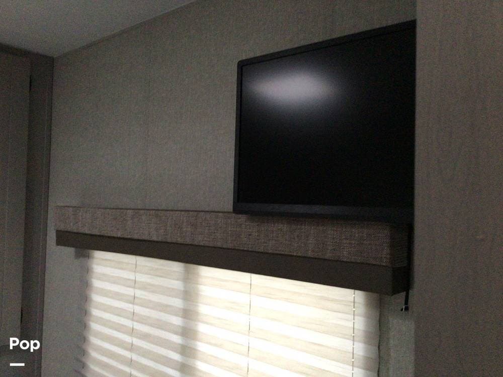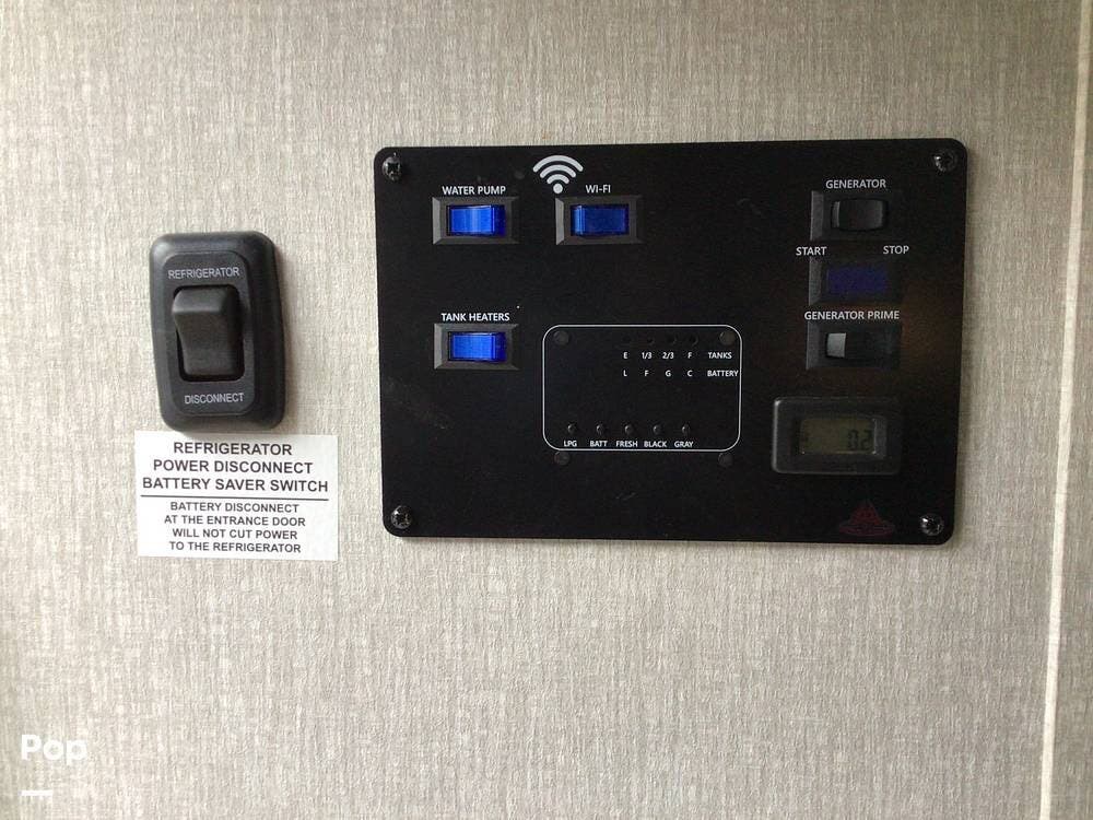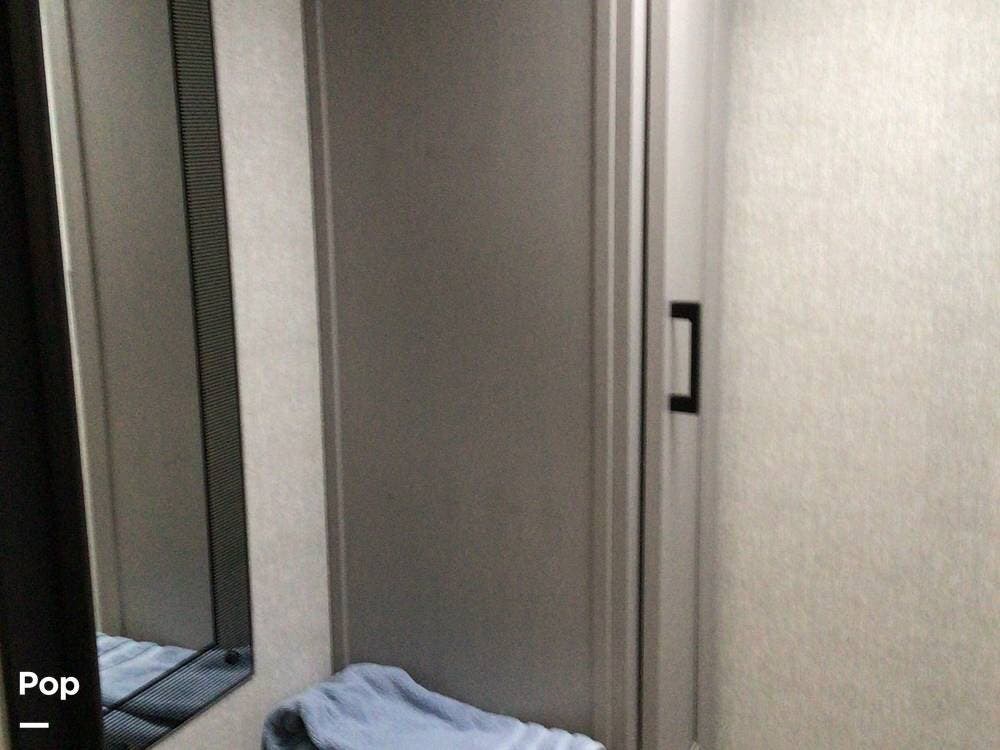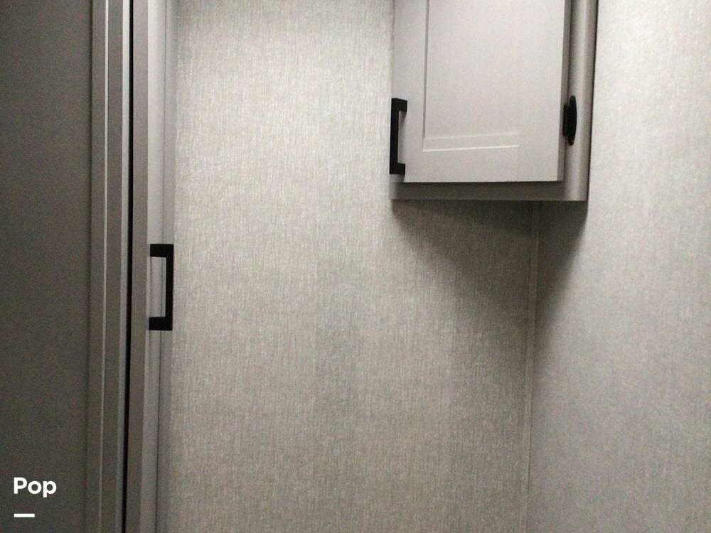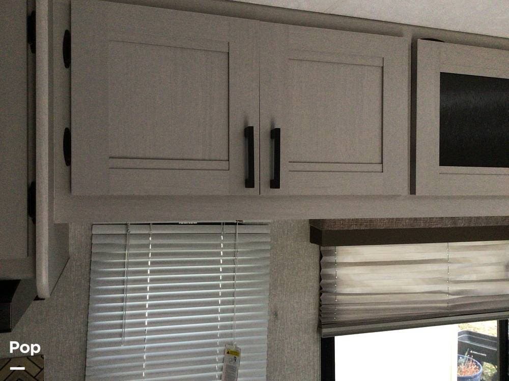 The kitchen has plenty of counter space and ample storage. It has a 10-cubic-foot 12V double-door refrigerator, a 3-burner cooktop, and a microwave oven. This will make the most discerning chef happy!