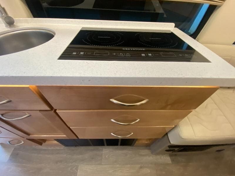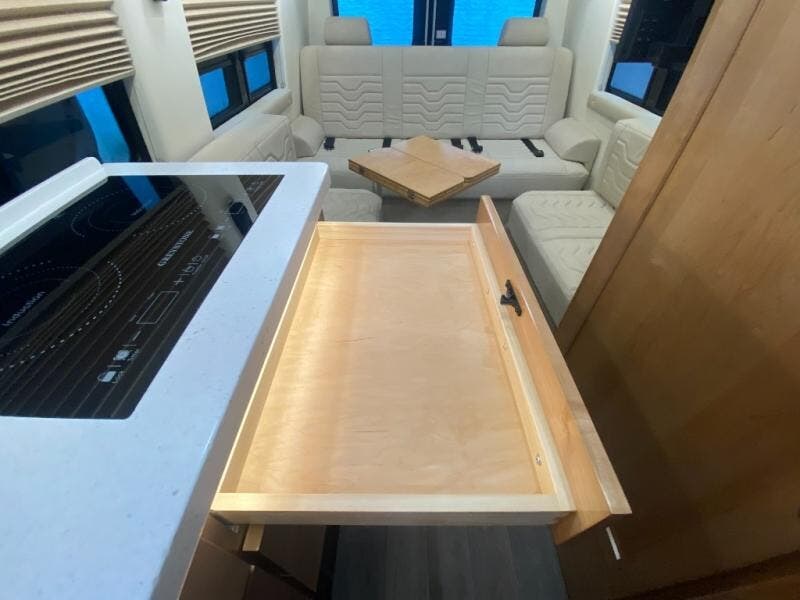 Pack your bags and load up into this motorhome for a fun vacation! The motorized rear sofa lays flat at the push of a button and can be combined with the two jump seats to create a sleeping area for a good night's rest. The wardrobe provides enough hanging and drawer storage to organize your items. Start your mornings off right by grabbing some eggs from the refrigerator with pull-out freezer drawer then fry them up on the two burner cooktop. Now that your belly is full, you can get cleaned up in the wet bath with sink and shower that has an Oxygenics Fury handheld shower head with on/off switch. Stay entertained even when it's raining with the 24" LED Smart TV! Available with optional 4x4 chassis. See dealer for details.