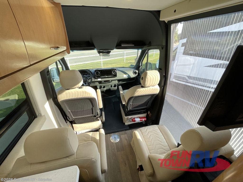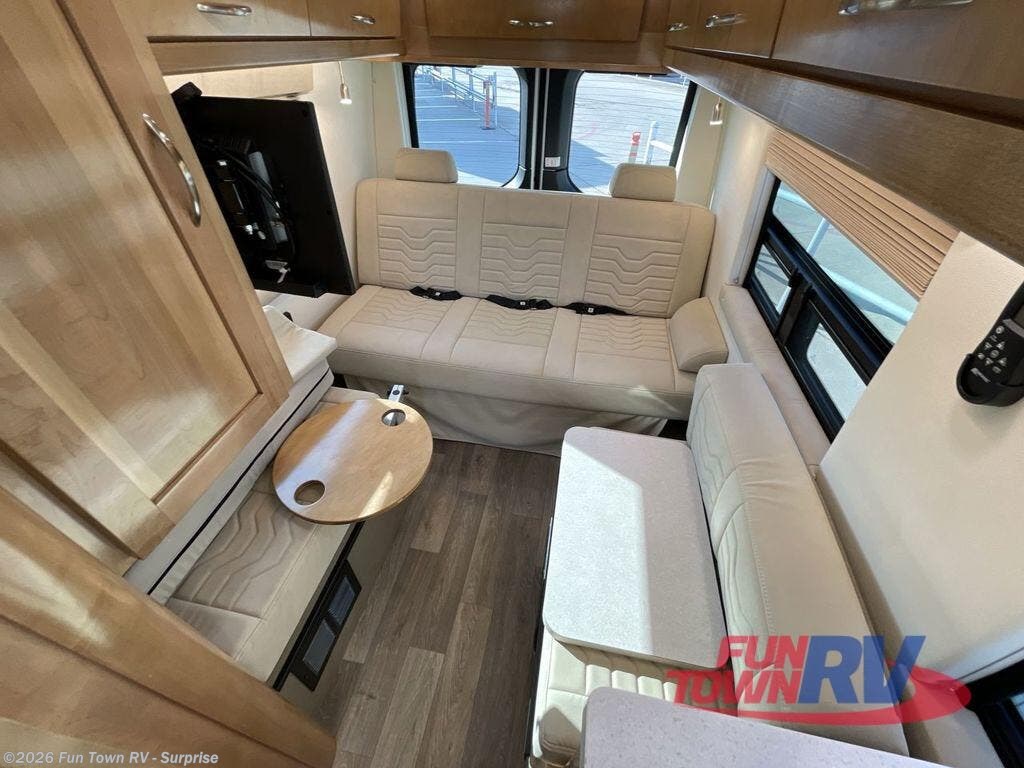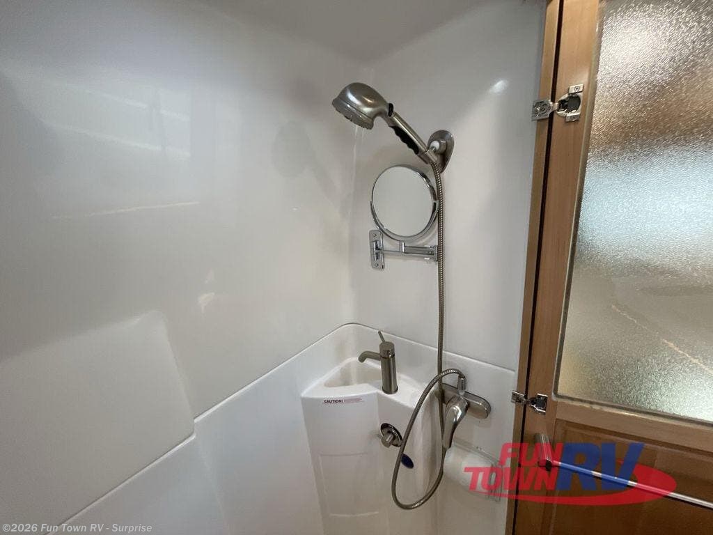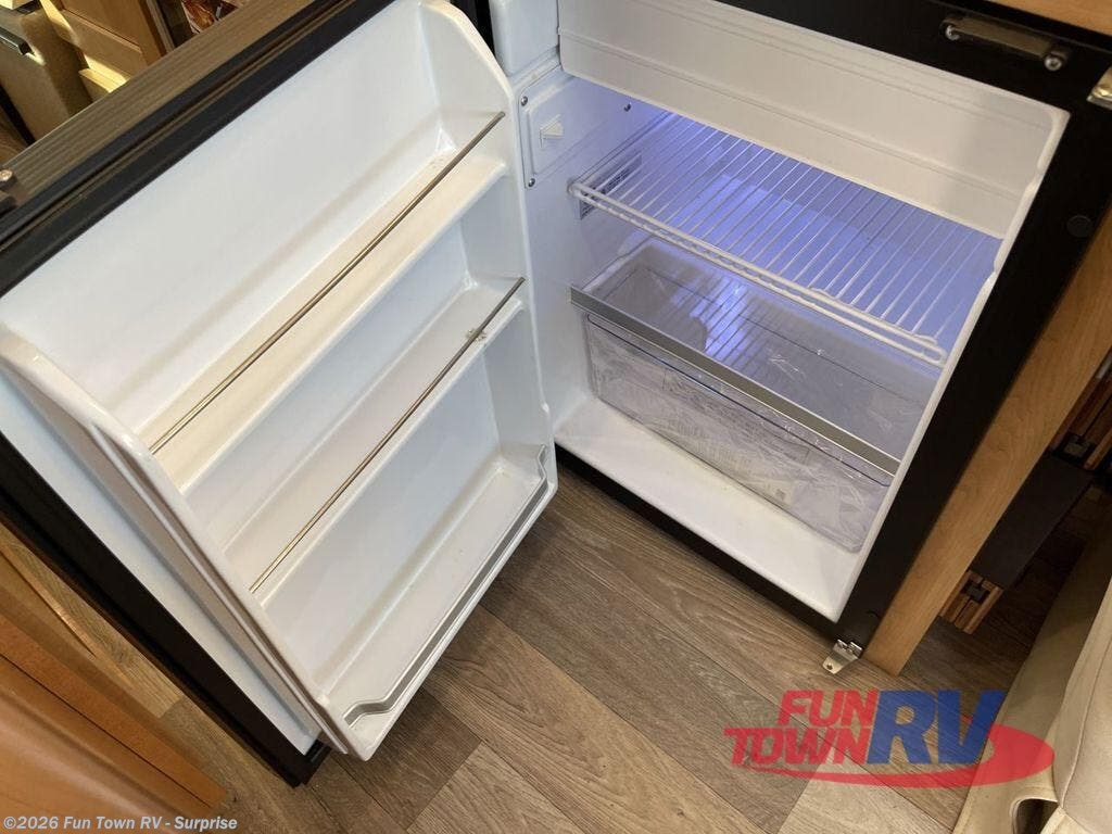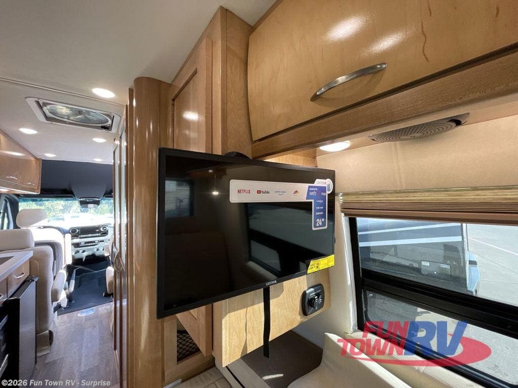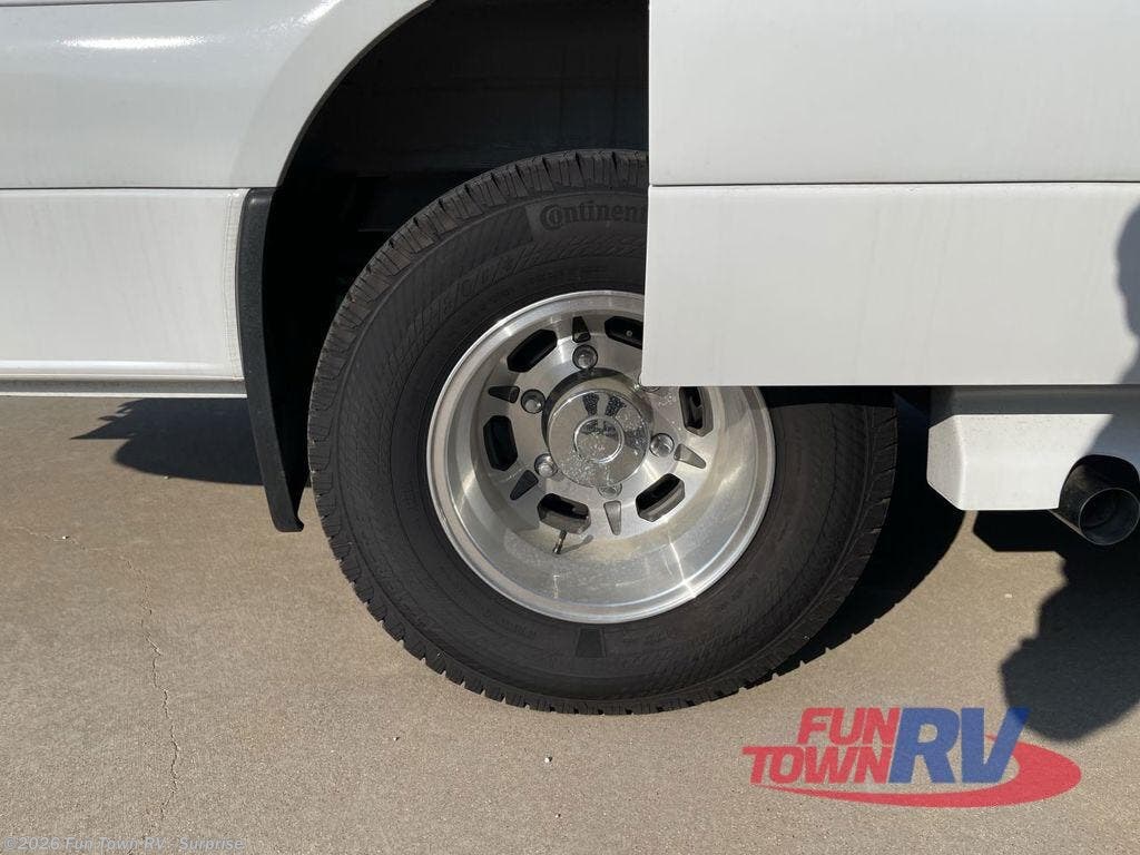 Experience all of the colors of the season with this motorhome! With four captain's chairs, everyone will have a comfortable place to sit while you travel and you could even get some work done with the removable table in between them all. The full galley has everything you need to prepare home cooked meals like a single burner cooktop and a refrigerator. Stay squeaky clean with the wet bath including a sink and shower that has an Oxygenics Fury handheld shower head with on/off switch. Above one of the jump seats there is an overhead wardrobe and a 24" LED Smart TV. The rear sofa can fold out to create a sleeping area in combination with the two jump seats so you can have a good night's rest each night! Available with optional 4x4 chassis. See dealer for details.