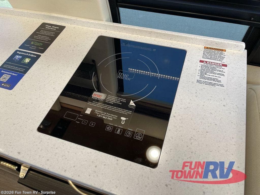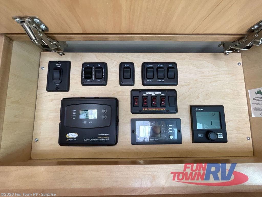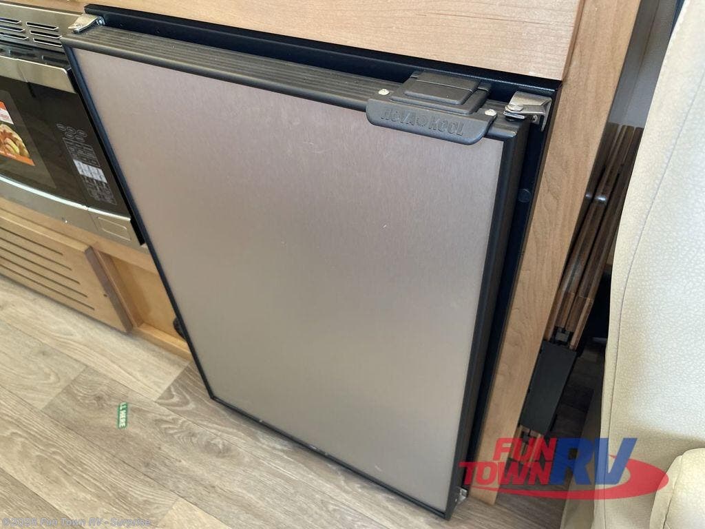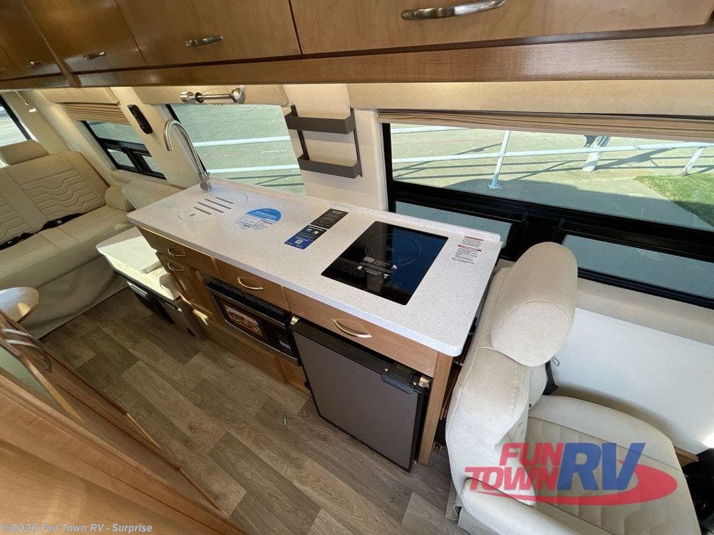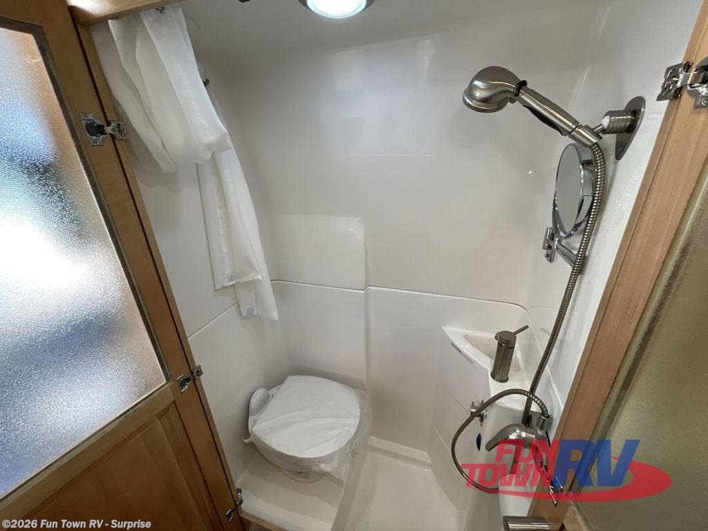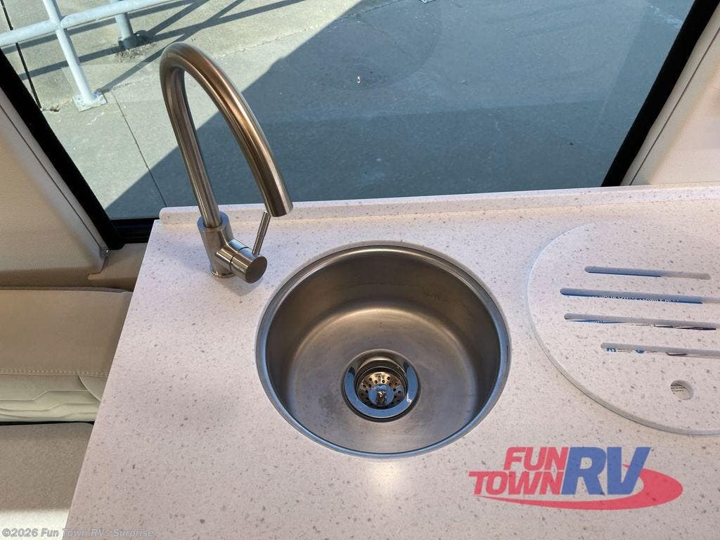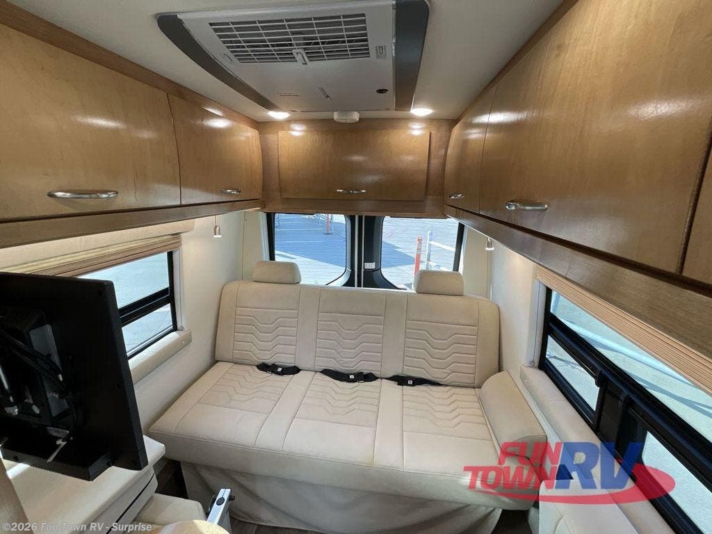 Experience all of the colors of the season with this motorhome! With four captain's chairs, everyone will have a comfortable place to sit while you travel and you could even get some work done with the removable table in between them all. The full galley has everything you need to prepare home cooked meals like a single burner cooktop and a refrigerator. Stay squeaky clean with the wet bath including a sink and shower that has an Oxygenics Fury handheld shower head with on/off switch. Above one of the jump seats there is an overhead wardrobe and a 24" LED Smart TV. The rear sofa can fold out to create a sleeping area in combination with the two jump seats so you can have a good night's rest each night! Available with optional 4x4 chassis. See dealer for details.