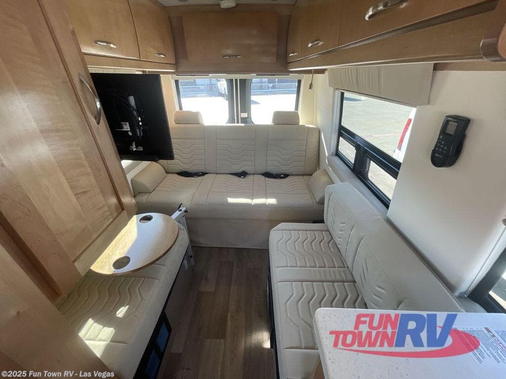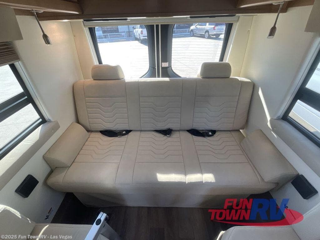 Jump into fun with this motorhome! The two jump seats offer a comfortable place to sit and when they are combined with the motorized rear sofa they create a comfortable sleeping space. Above one of the jump seats is an overhead cabinet wardrobe and a 24" LED Smart TV for watching your favorite movies. After a long day of traveling, freshen up in the wet bath with sink and shower that has an Oxygenics Fury handheld shower head with on/off switch. Now that you are squeaky clean, you can prepare a delicious home cooked meal with the single burner cooktop and comfortably enjoy it sitting in one of the three captain's chairs with a removable table in between them all! Available with optional 4x4 chassis. See dealer for details.