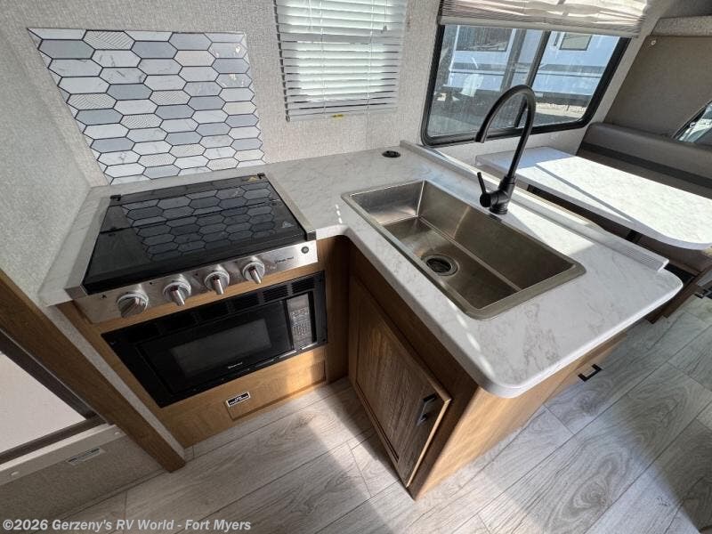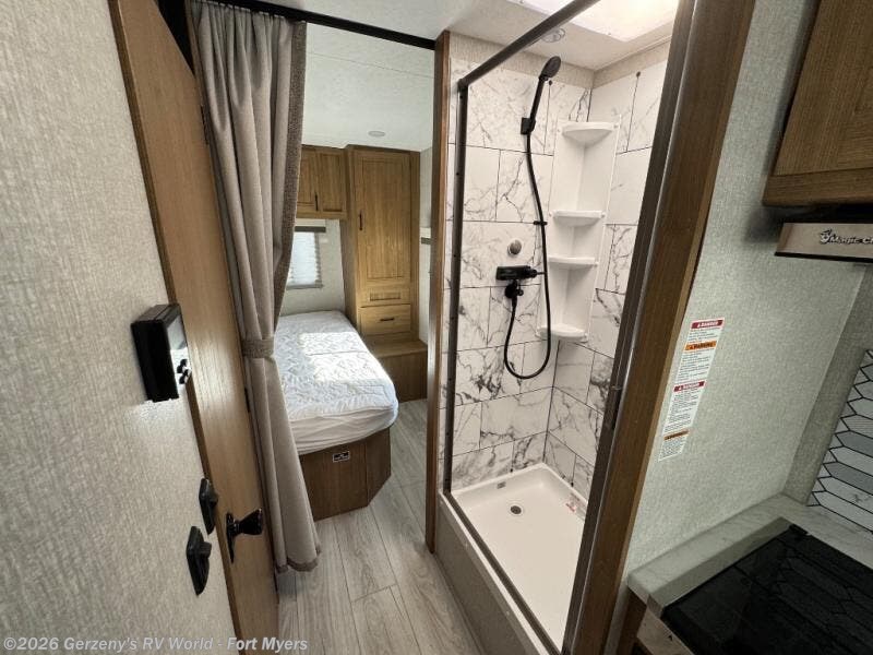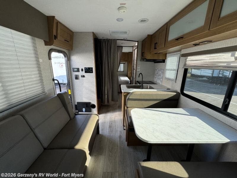With each Leprechaun Class C gas motorhome by Coachmen you will enjoy "better" interior appointments, like the raised panel cabinetry, the one-piece thermofoil countertops, and the premium vinyl flooring. You will sleep soundly each night on the mattress with a bedspread, and staying clean will be easy with the premium showerhead and faucet in the bath. These models include reclining cockpit seats, cruise control, and a rear backup camera so you can easily get in and out of the campground. The Leprechaun is constructed with Azdel composite sidewalls, a seamless, one-piece roof membrane, and vacu-bond laminated walls, roof, and floor for a durable motorhome made to last.