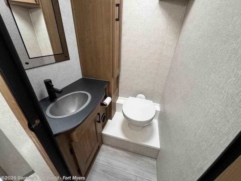 Have you been looking for privacy when sleeping and getting dressed in your next coach? This Leprechaun Class C gas motorhome offers a private rear bedroom with a walk-around queen bed, a bunk over the cab for the kids, and furniture that doubles as sleeping accommodations for guests. The private toilet and sink with the shower just across the hall allow two people to freshen up at once. Your family will love having a sofa and a booth dinette for relaxing, eating meals, playing games, or enjoying one another's company throughout your trip.