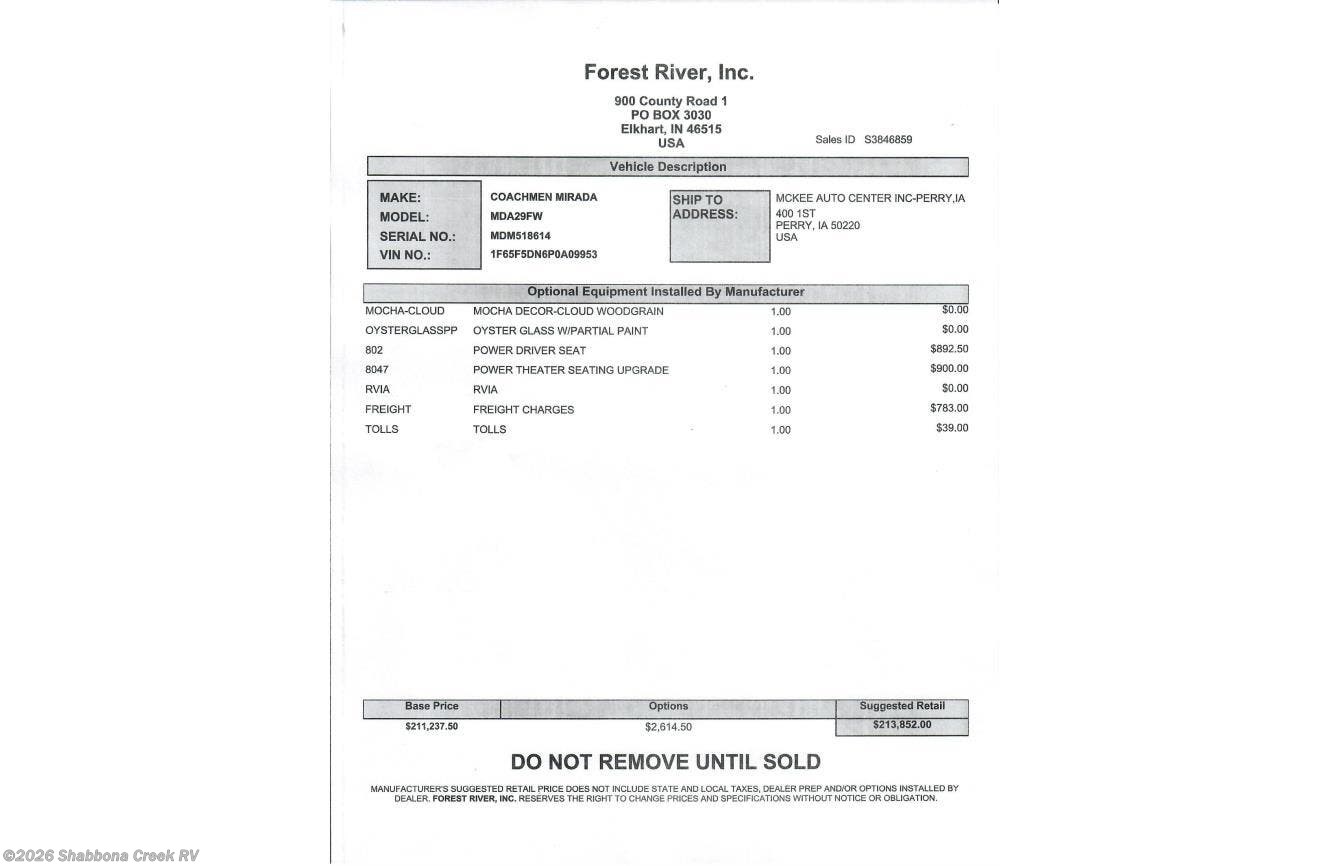 Request More Info on this 2024 Coachmen Mirada 29FW * Offered for sale by Shabbona Creek RV