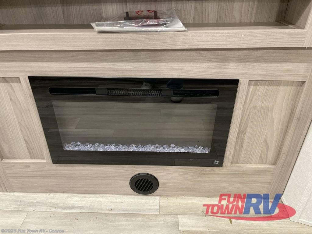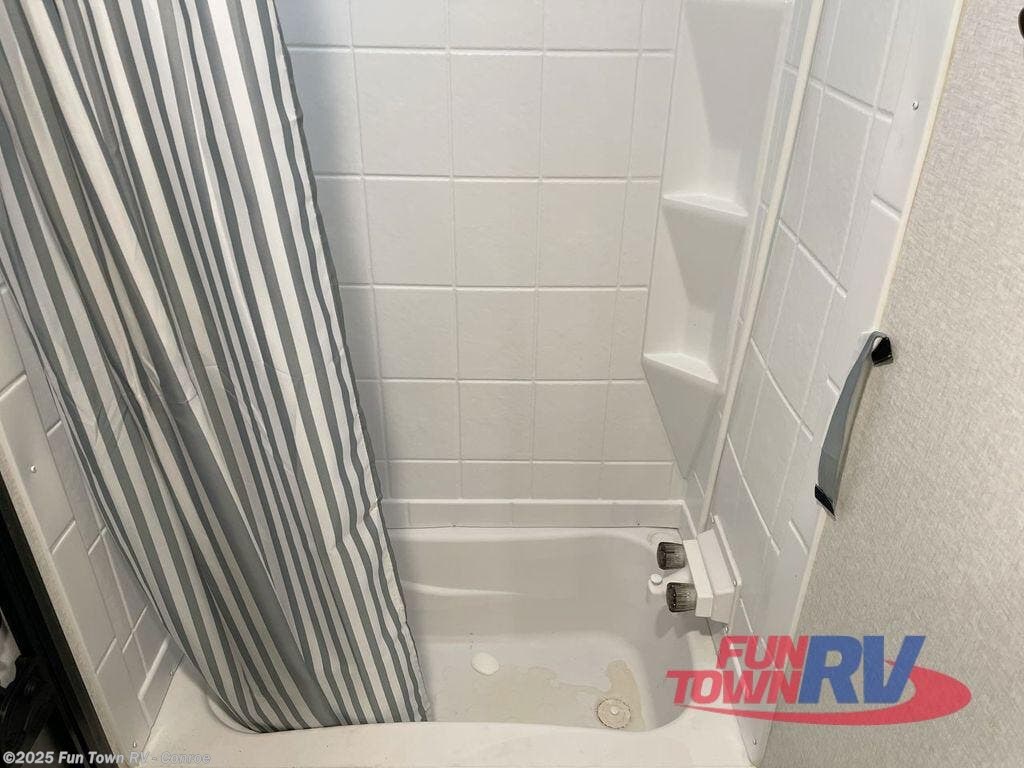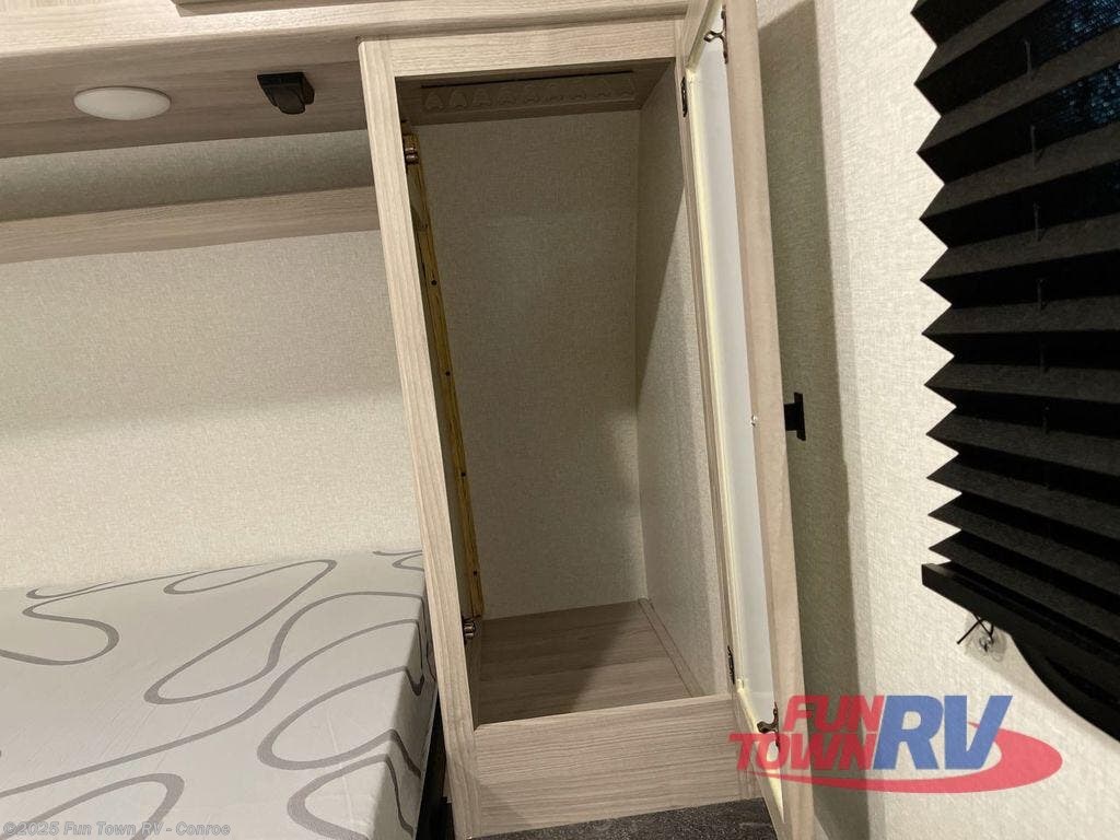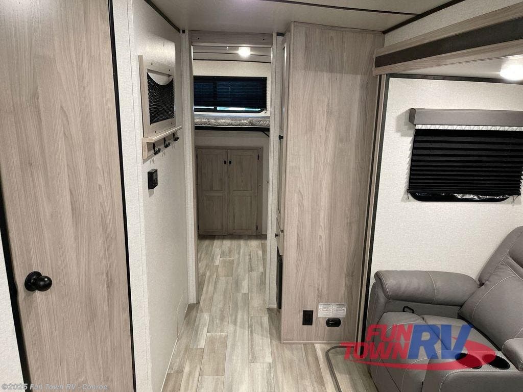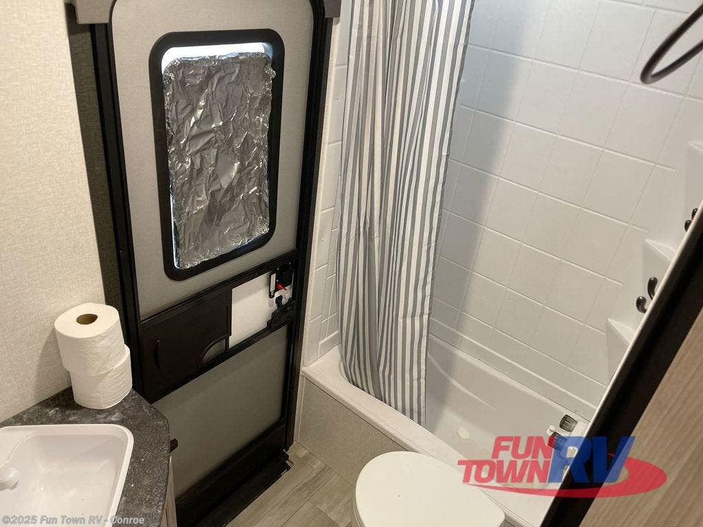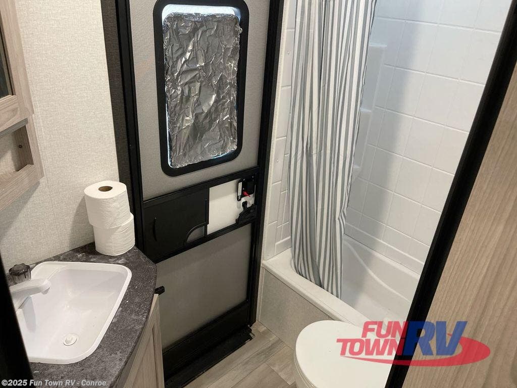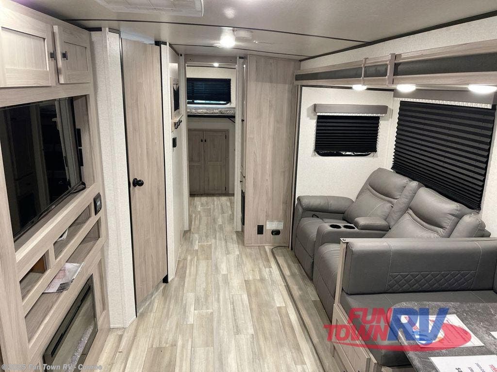 This travel trailer will be perfect to see family and friends in other states or camping for long-periods of time. There is an abundant amount of storage in the living and kitchen area, including behind the entertainment center in the hidden pantry and the second pantry with shelves, plus in the front bedroom under the queen bed with the MAX bed storage system. There is even storage in the rear private bunkhouse cabinet and countertop, plus along the exterior in the pass-through compartment and the Stor-More Cargo in the rear. The side Stor-More cargo door leads you into the bunkhouse to stow items like bikes and totes during travel. You will also love making meals in the kitchen with full amenities including a 10 cu. ft. refrigerator, and outside using the camp kitchen. And having dual entry just makes everything easy especially getting to the full bathroom.
