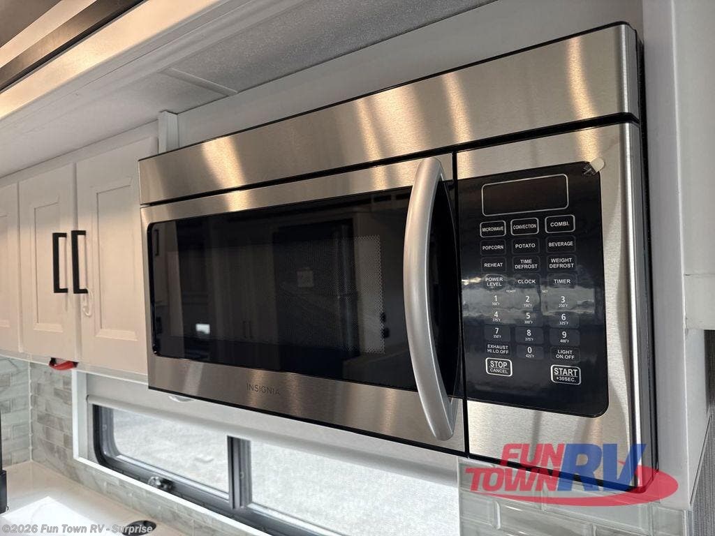 You won't believe all that this motorhome has to offer! Starting with the full rear bathroom which has a 38" x 26" shower to clean up in, a linen closet, and a pantry with washer/dryer option, plus it leads directly into the master suite. Here you will find a king bed slide with a CPAP station above it and across from a dresser with wardrobes on either side and a 32" LED TV to watch your movies in true relaxation. The convenient half bathroom is centrally located so guests can easily use it when needed. At night, you can either relax on the 68" sofa or the theater seating across from the LED TV, and if you need more sleeping space, the drop-down overhead bunk is sure to be a big hit