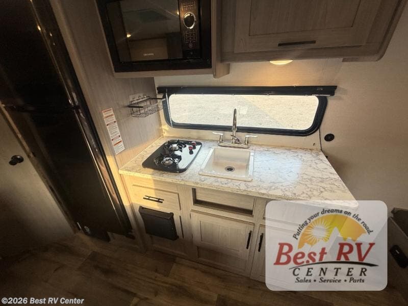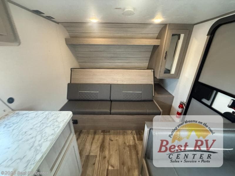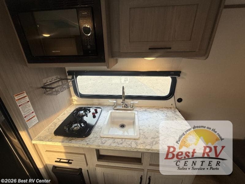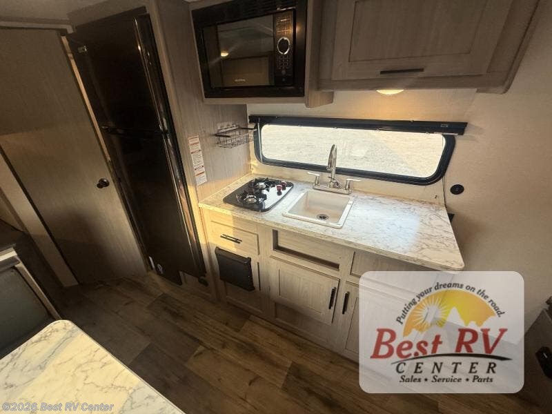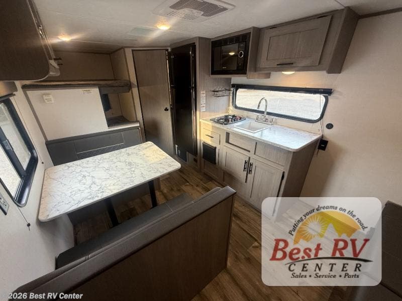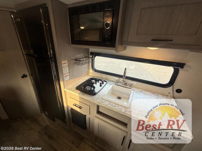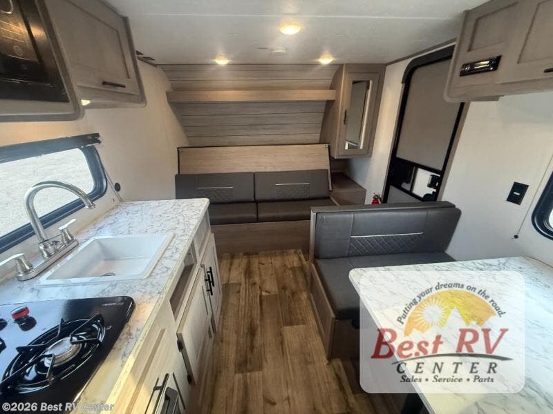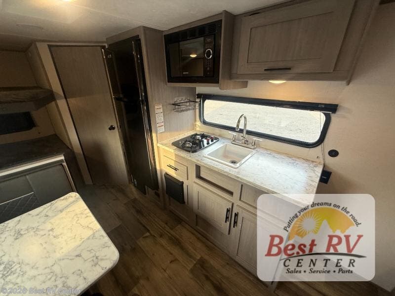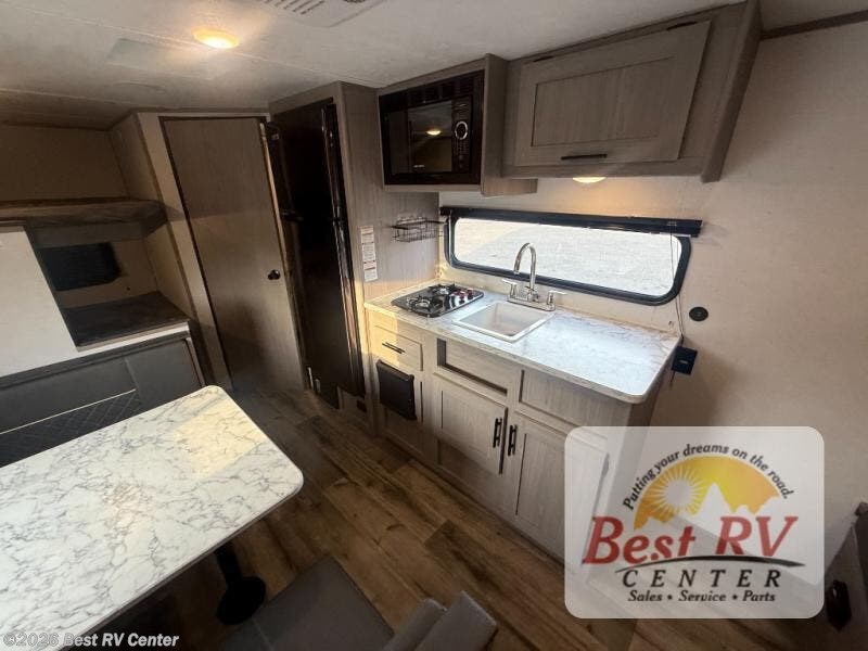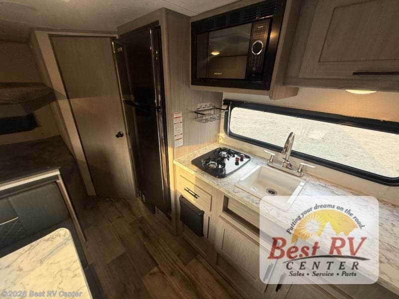The Coleman Lantern LT Series travel trailers by Dutchmen will make each camping trip enjoyable! Each model is constructed with a TPO roof membrane and diamond plate rock guard for added protection during transport. There is a power tongue outside, along with backup camera prep and solar prep if you want the option to go off-grid. The overhead kitchen cabinetry will let you bring along necessities to cook meals each day, and the magnetic cabinet door catches will keep everything secure during towing. There are also pleated shades in the living room and bedroom, a large single basin kitchen sink, and many more hassle-free camping amenities!