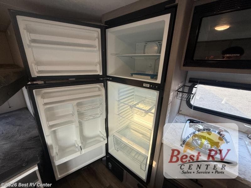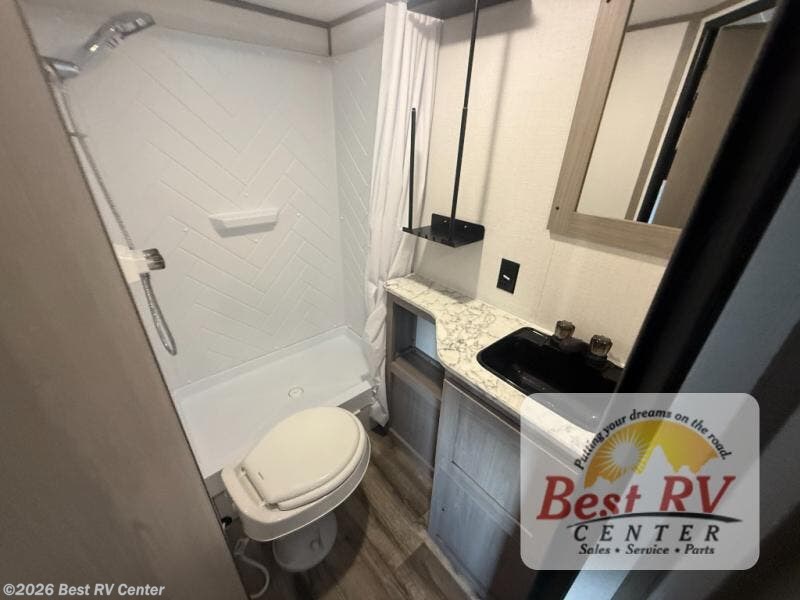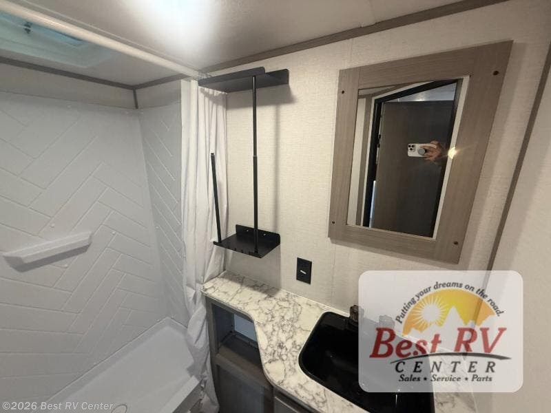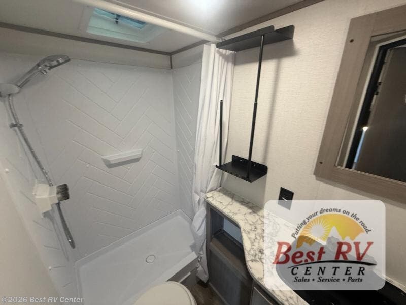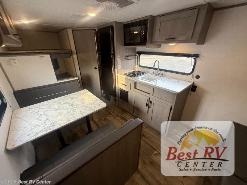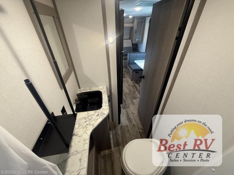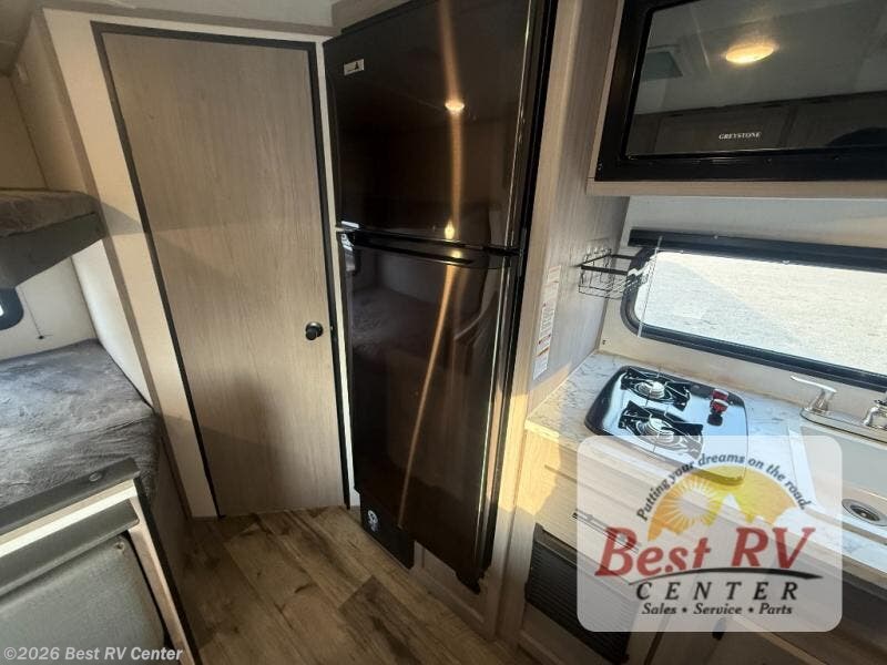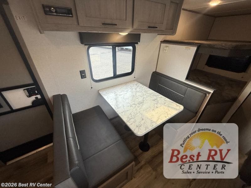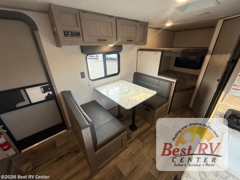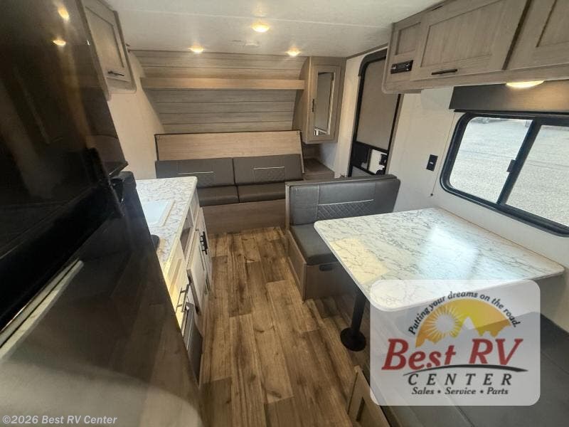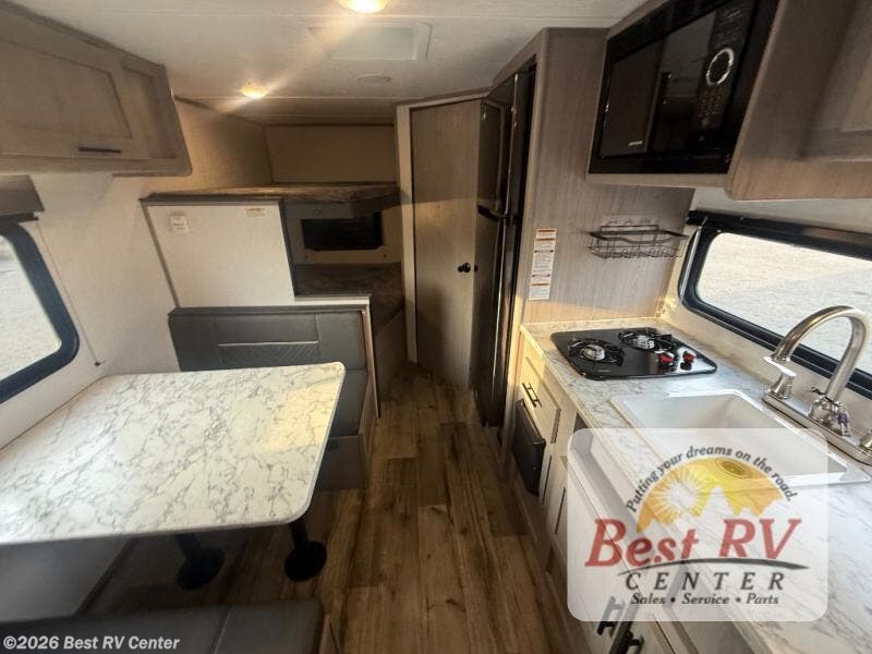 The Coleman Lantern LT Series travel trailers by Dutchmen will make each camping trip enjoyable! Each model is constructed with a TPO roof membrane and diamond plate rock guard for added protection during transport. There is a power tongue outside, along with backup camera prep and solar prep if you want the option to go off-grid. The overhead kitchen cabinetry will let you bring along necessities to cook meals each day, and the magnetic cabinet door catches will keep everything secure during towing. There are also pleated shades in the living room and bedroom, a large single basin kitchen sink, and many more hassle-free camping amenities!