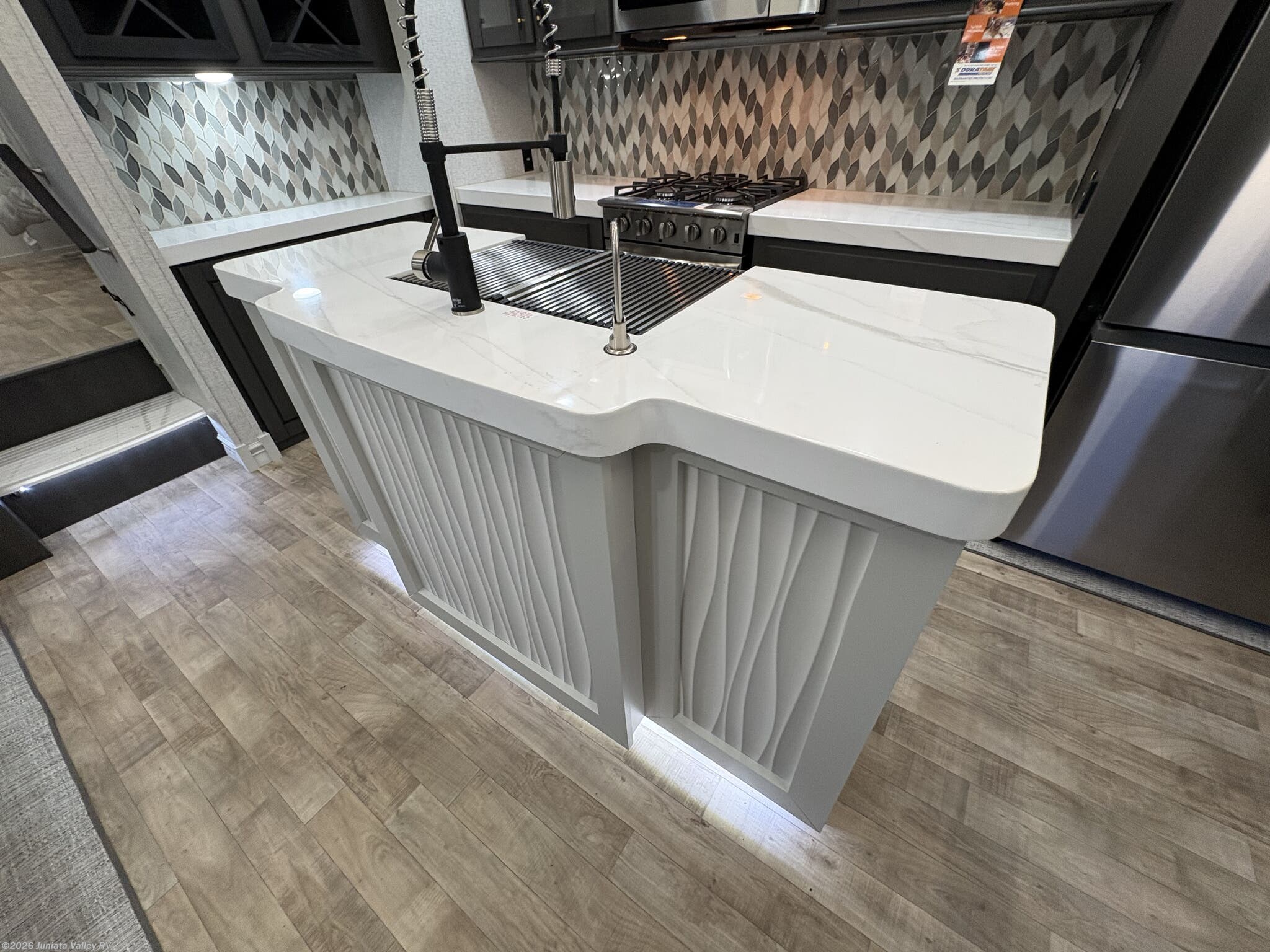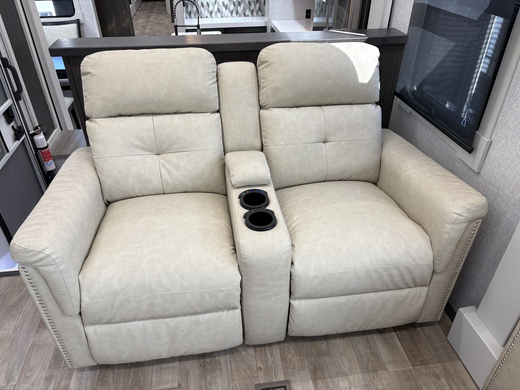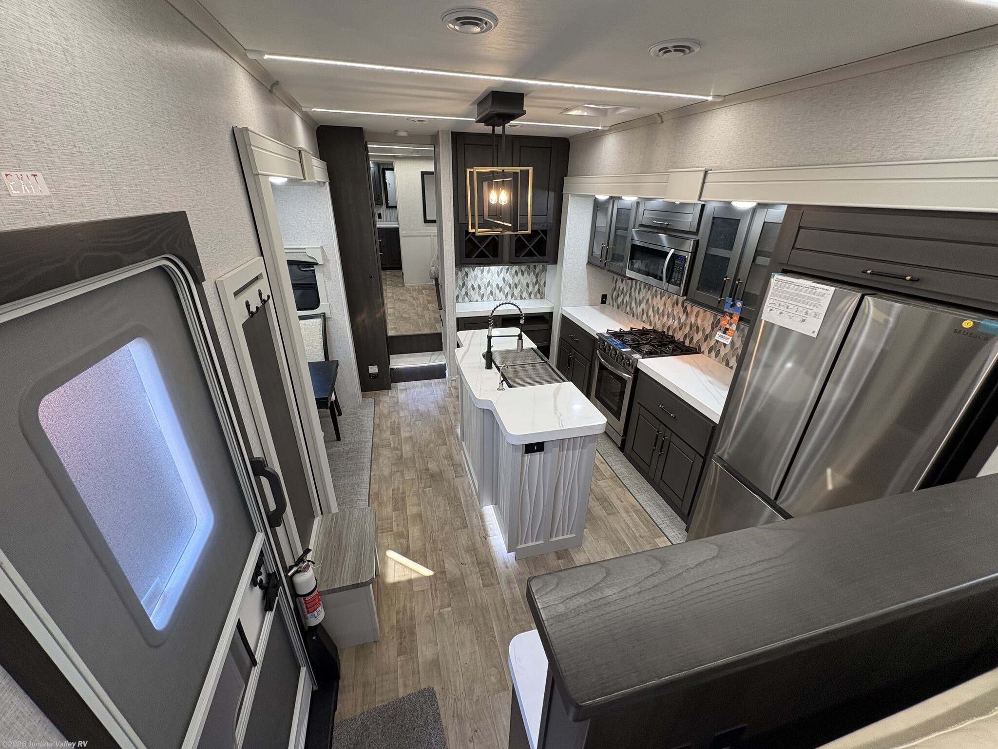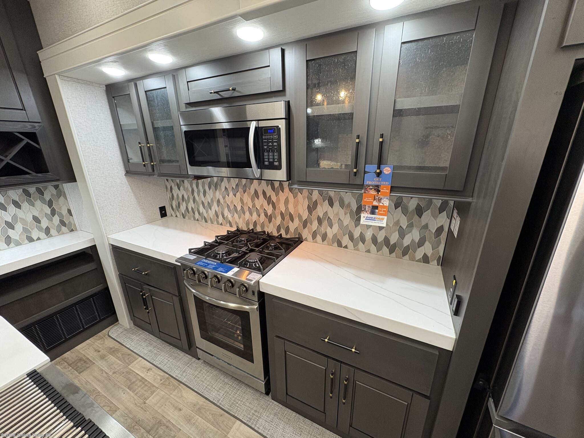 Just in from the factory, Redwood 4200 FL. This beautiful, luxury 5th wheel is very well equipped. Some of the options are; custom full body paint in Topaz blue, Redwood Full-time living package, tankless water heater, generator prepped, washer & dryer prepped, residential refridgerator, 3rd 15,000 BTU A/C, 6 point hydraulic auto leveling, 8,000LB axels with H range tires, rear 2" receiver, Dual pane frameless windows, Firefly smart automation system, slide awnings and dishwasher.