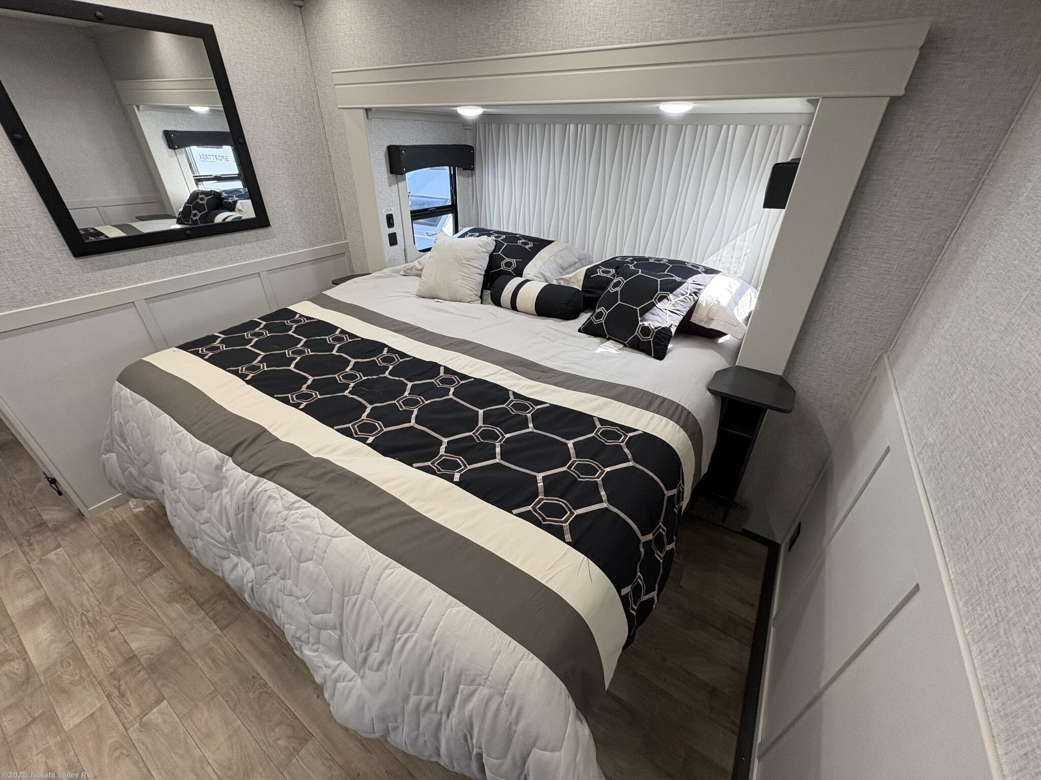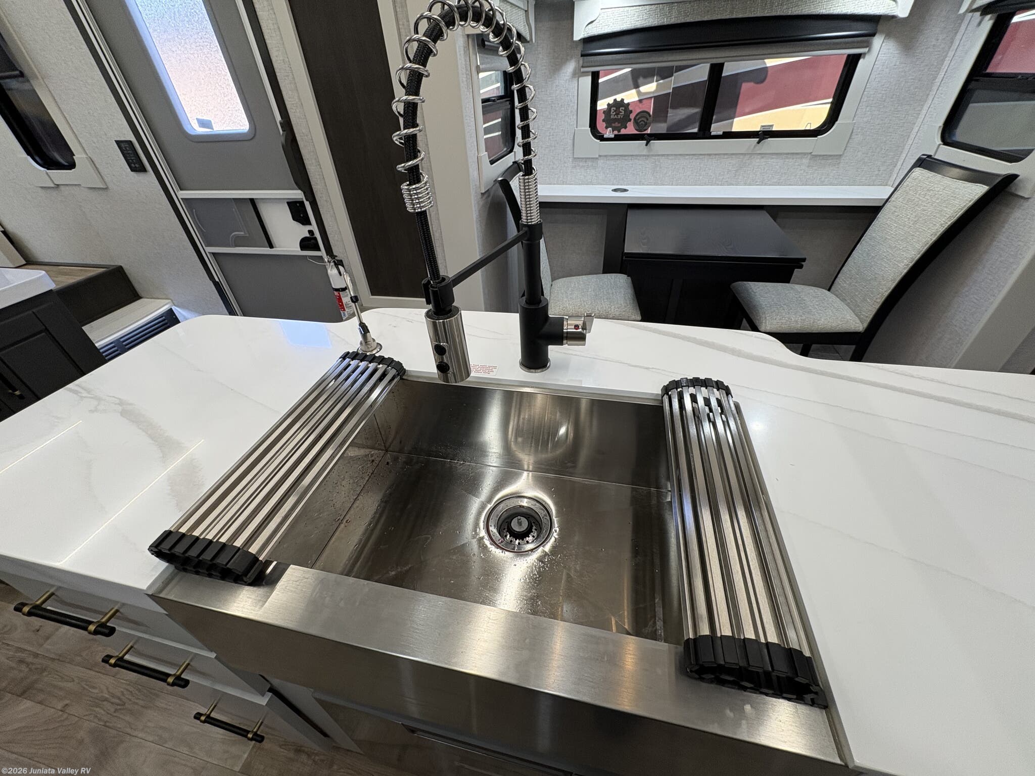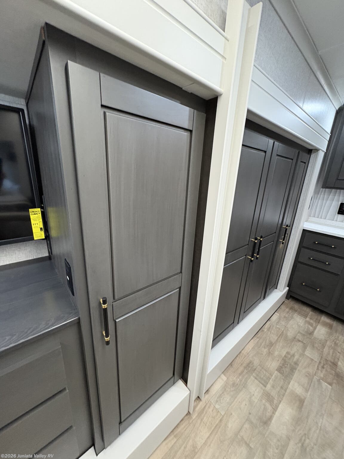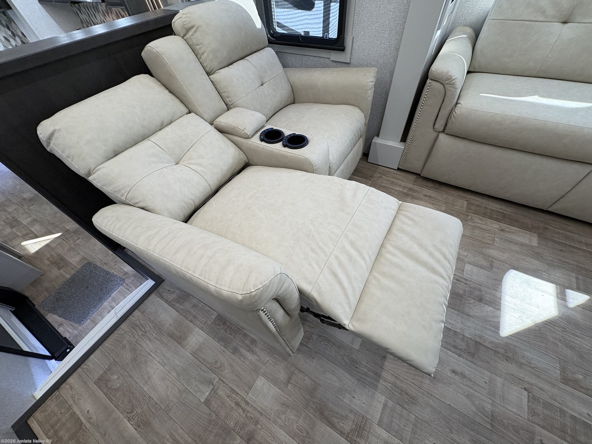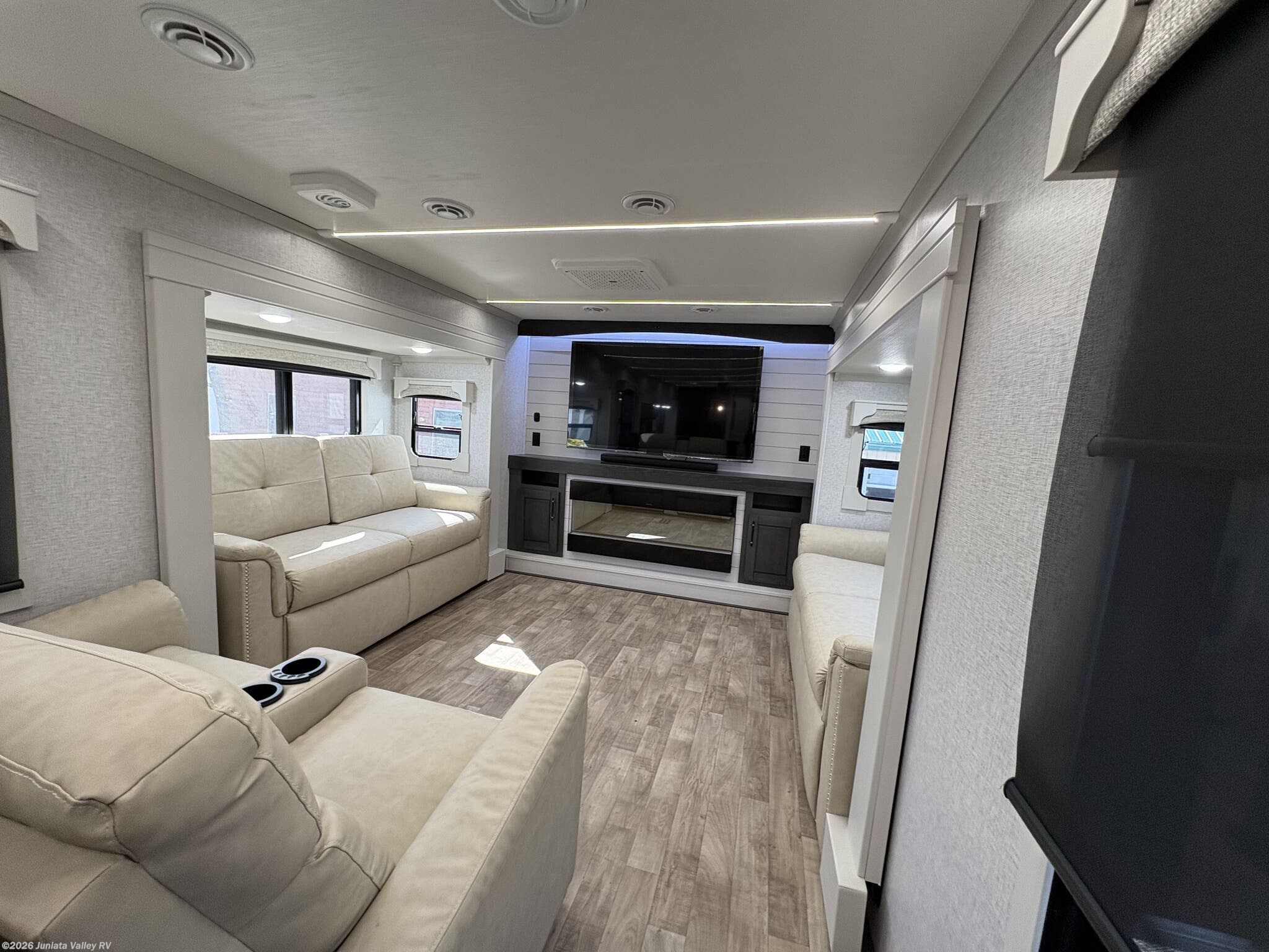 Just in from the factory, Redwood 4200 FL. This beautiful, luxury 5th wheel is very well equipped. Some of the options are; custom full body paint in Topaz blue, Redwood Full-time living package, tankless water heater, generator prepped, washer & dryer prepped, residential refridgerator, 3rd 15,000 BTU A/C, 6 point hydraulic auto leveling, 8,000LB axels with H range tires, rear 2" receiver, Dual pane frameless windows, Firefly smart automation system, slide awnings and dishwasher.
