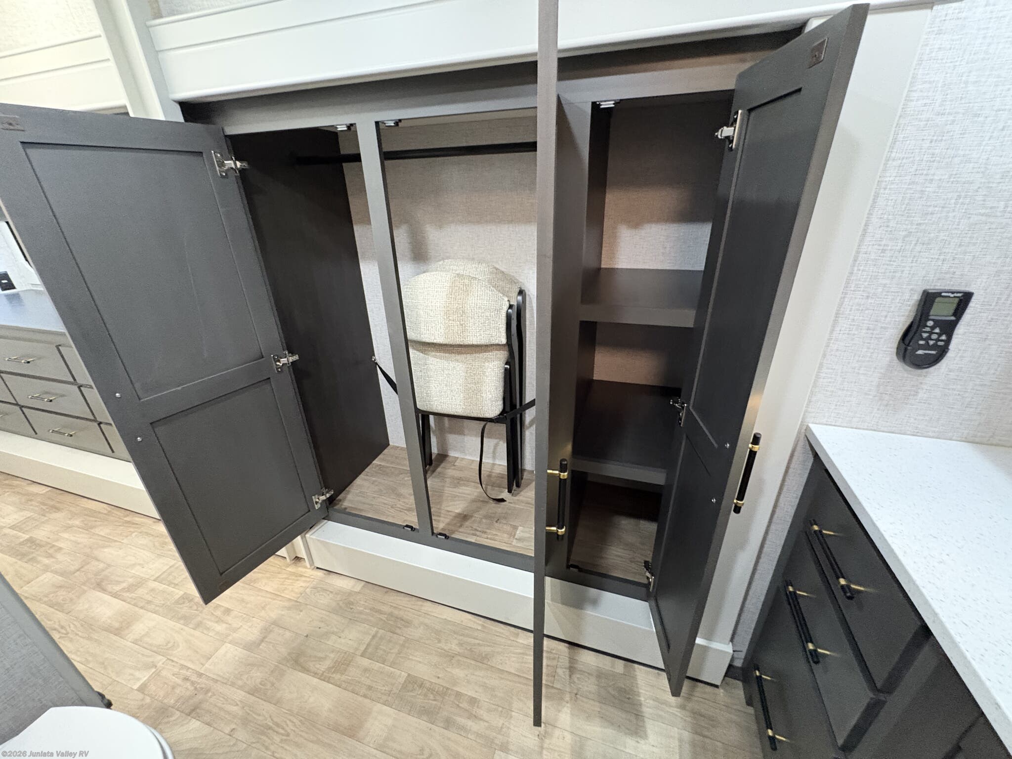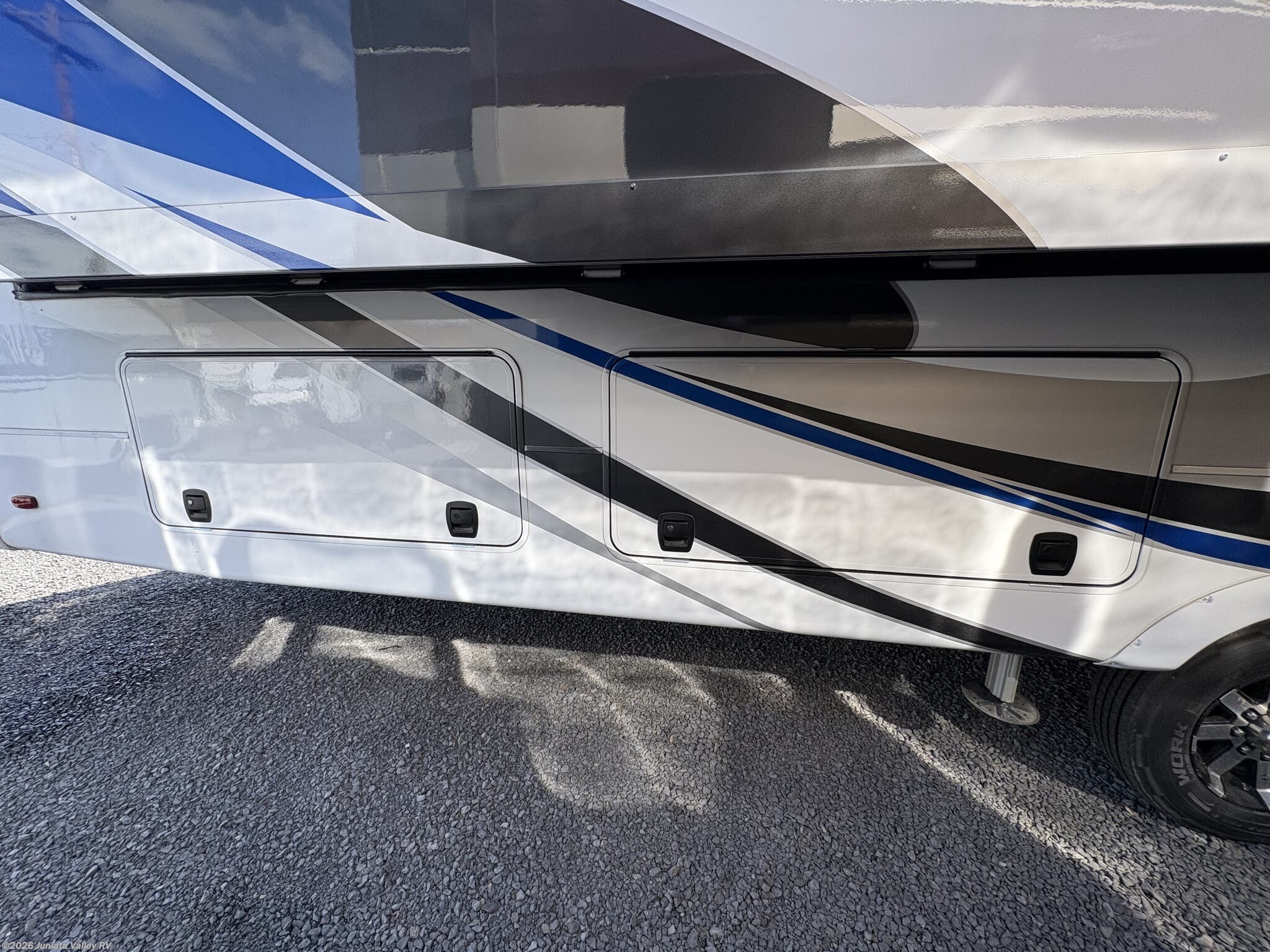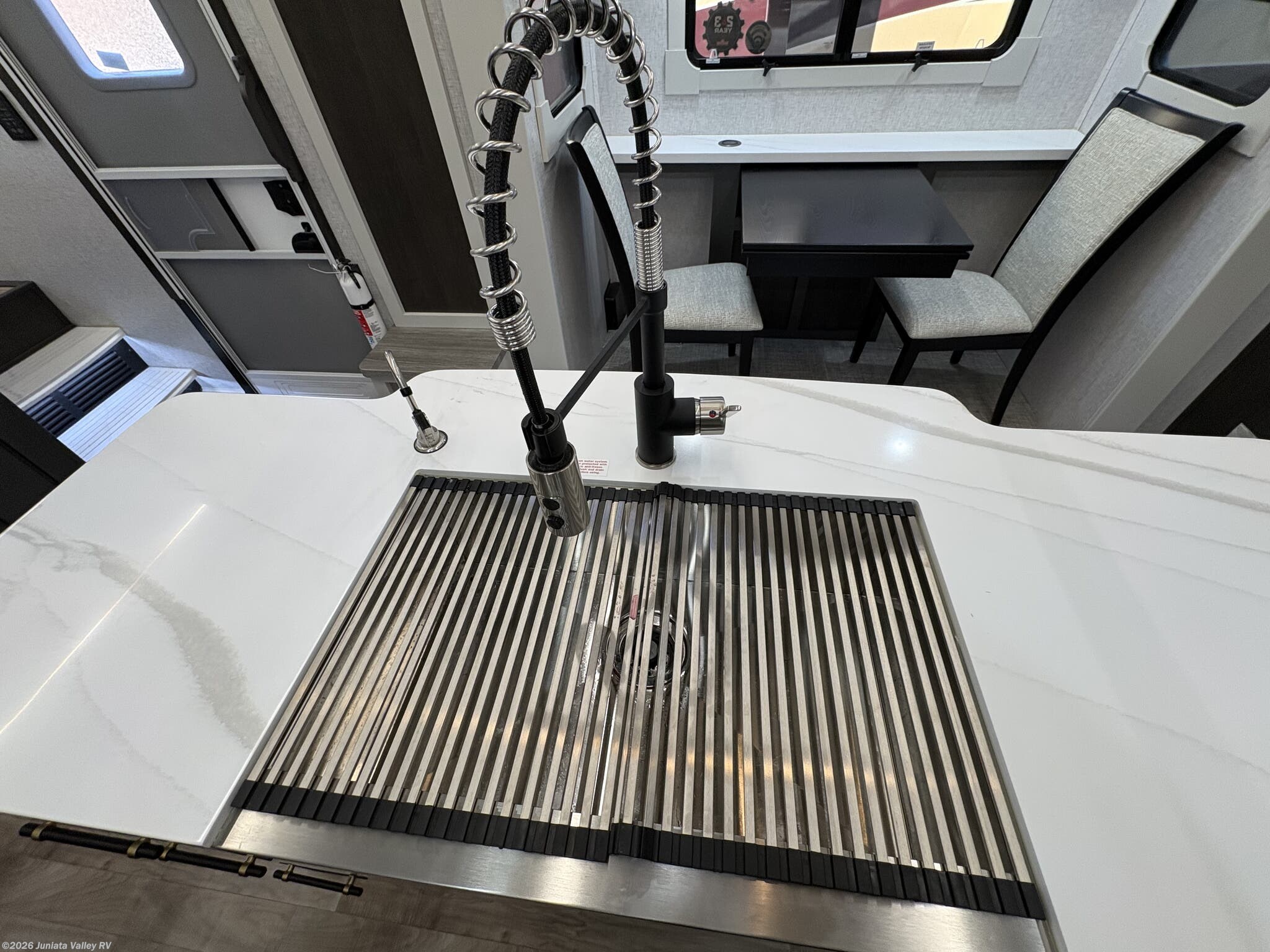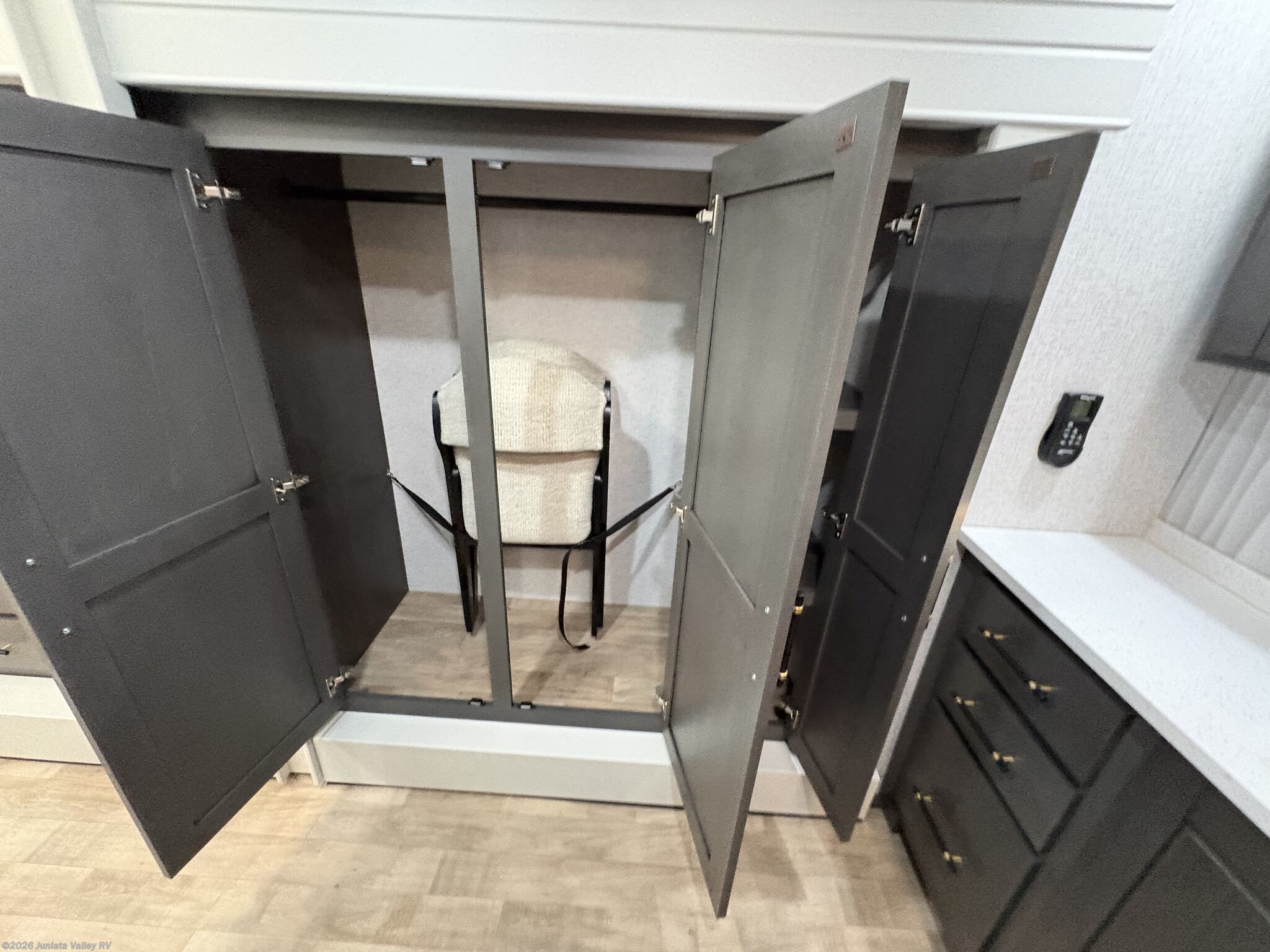 Just in from the factory, Redwood 4200 FL. This beautiful, luxury 5th wheel is very well equipped. Some of the options are; custom full body paint in Topaz blue, Redwood Full-time living package, tankless water heater, generator prepped, washer & dryer prepped, residential refridgerator, 3rd 15,000 BTU A/C, 6 point hydraulic auto leveling, 8,000LB axels with H range tires, rear 2" receiver, Dual pane frameless windows, Firefly smart automation system, slide awnings and dishwasher.