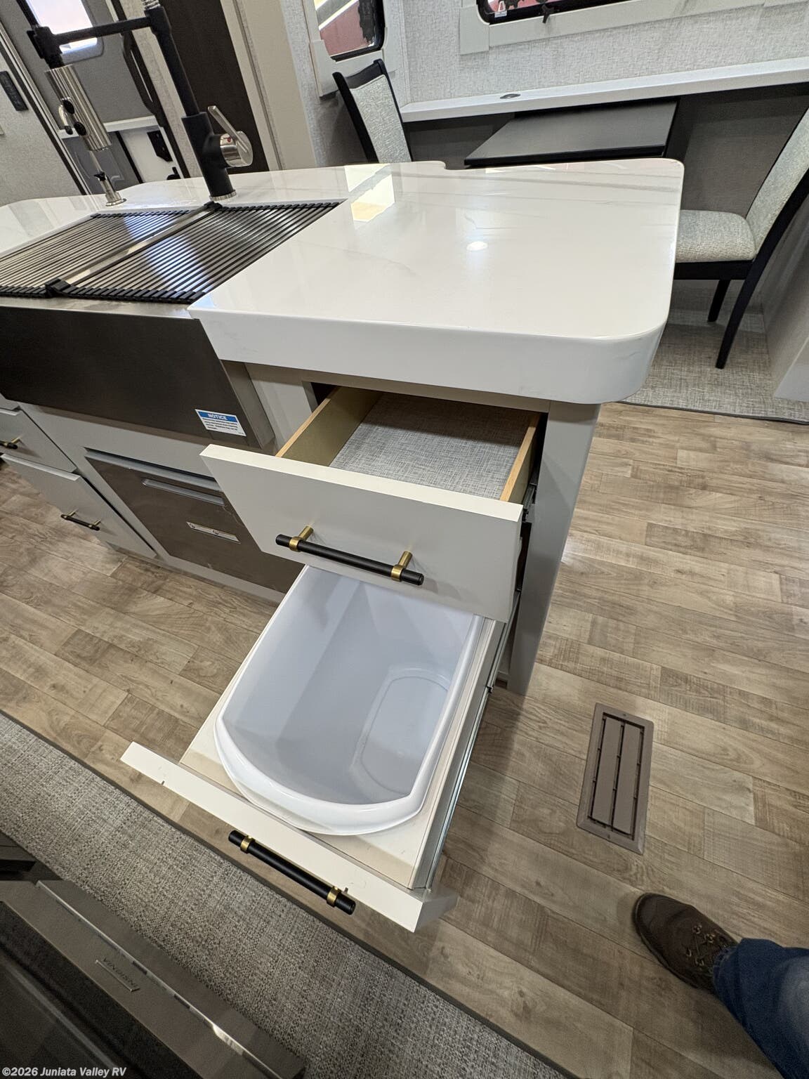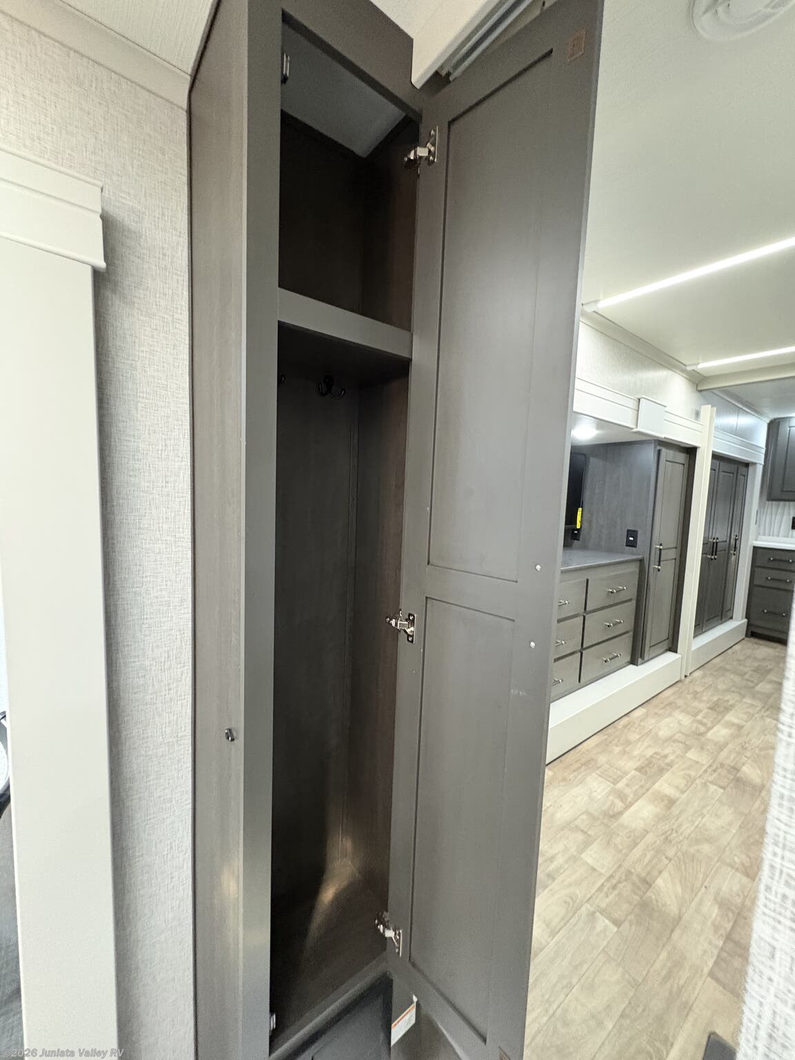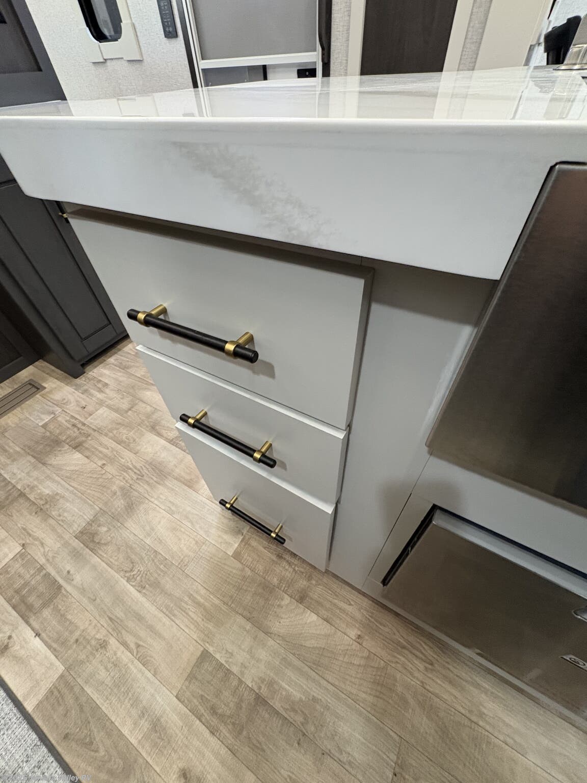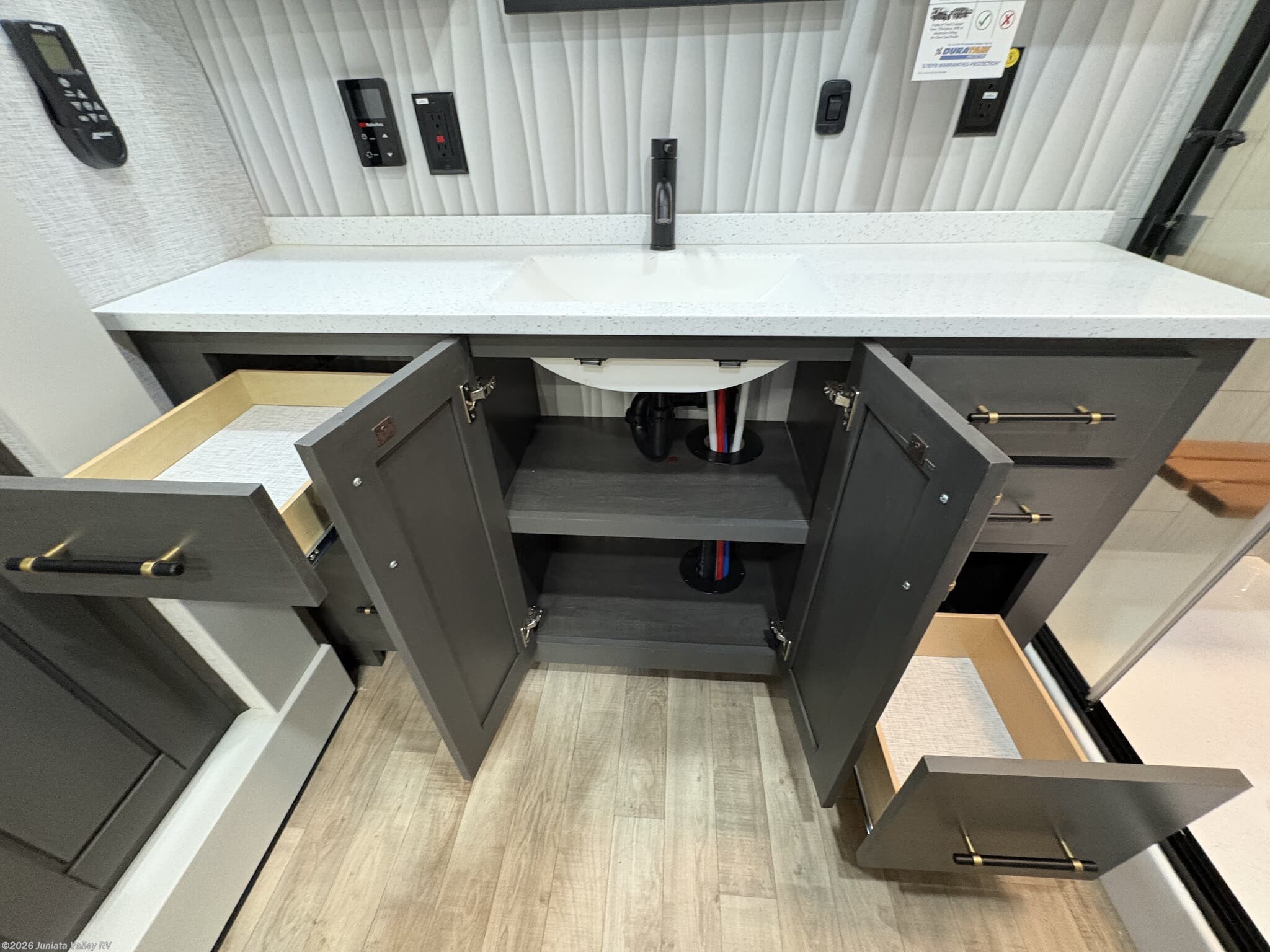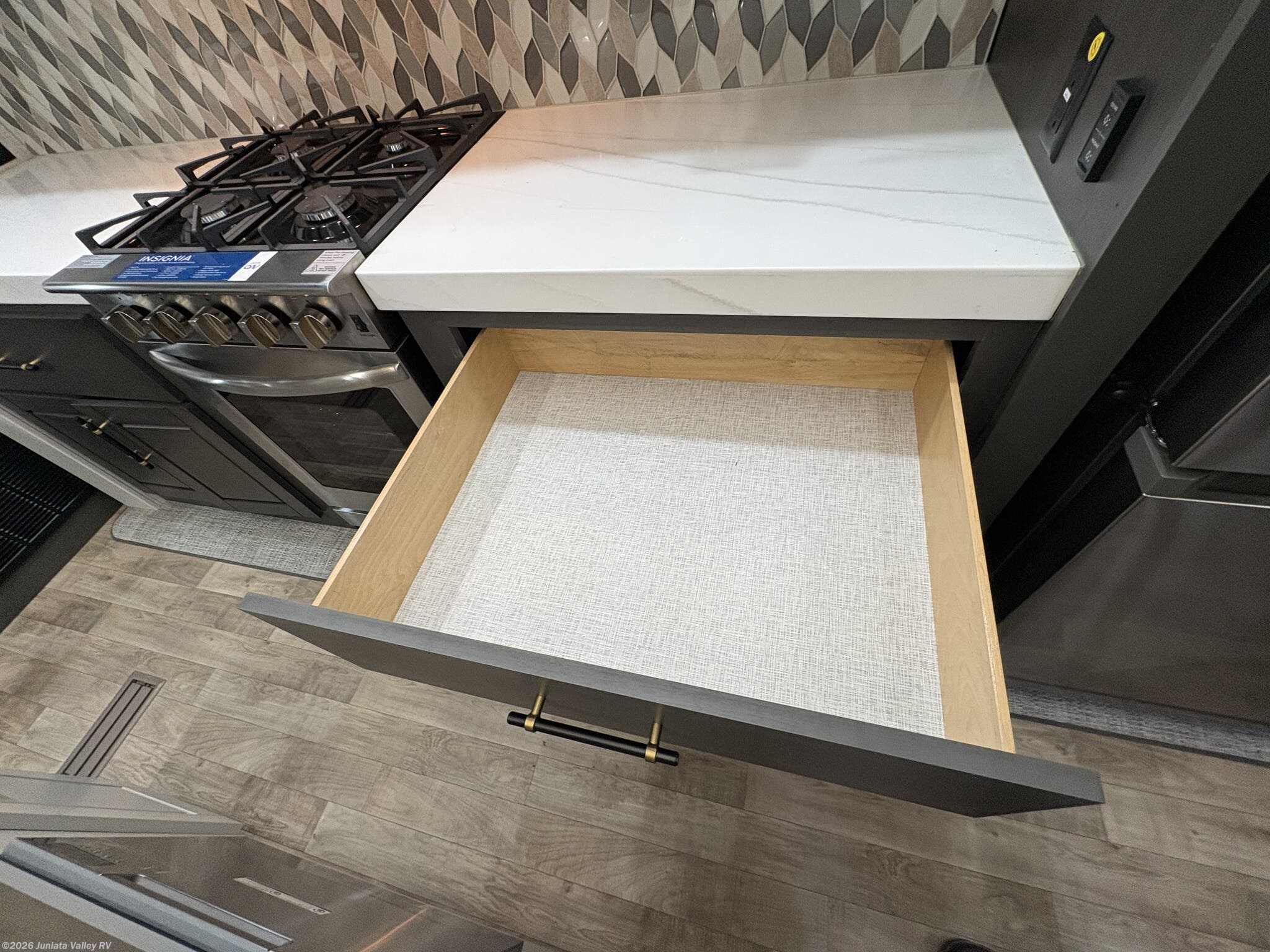 Just in from the factory, Redwood 4200 FL. This beautiful, luxury 5th wheel is very well equipped. Some of the options are; custom full body paint in Topaz blue, Redwood Full-time living package, tankless water heater, generator prepped, washer & dryer prepped, residential refridgerator, 3rd 15,000 BTU A/C, 6 point hydraulic auto leveling, 8,000LB axels with H range tires, rear 2" receiver, Dual pane frameless windows, Firefly smart automation system, slide awnings and dishwasher.