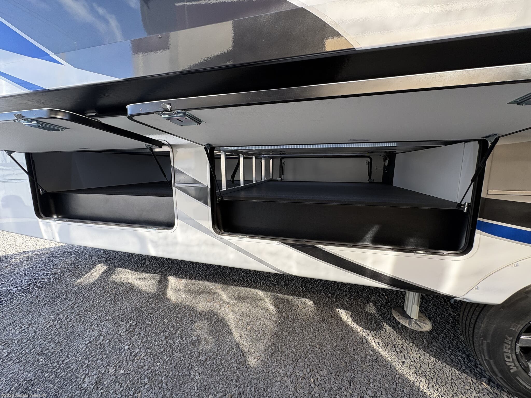 Alloy Wheels, Aluminum Entrance Steps, Automatic Leveling Jacks, Awning, Black Tank Flush, Custom Paint, Enclosed Underbelly, Exterior Speakers, External Shower, Fiberglass Sidewalls, Full Body Paint, Heated Underbelly, Hitch, Keyless Entry, Ladder, Leveling Jacks, Pass Thru Storage, Power Awning, Power Roof Vent, Powered Landing Legs, Roof Vent, Screen Door, Second Roof A/C, Skylight, Slam Latch Baggage Doors, Slideout, Slide-out Awning, Spare Tire Kit, Thermal Pane Windows, Tinted Windows, Upgraded Insulation Package -