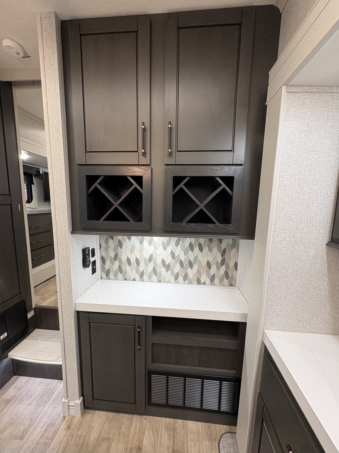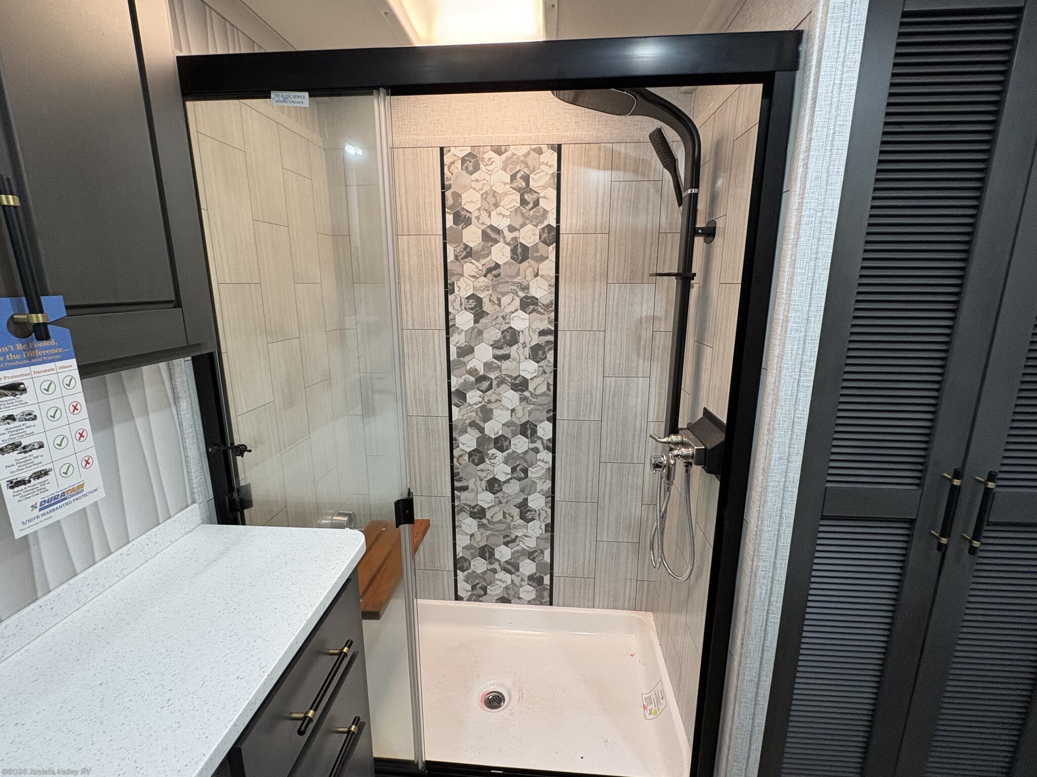 Azdel Composite Panels, Ceiling Fan, Central Vacuum, Corian Countertops, Day/Night Shades, Dinette, Fireplace, Free Standing Dinette w/Chairs, Glass Shower Door, Island Kitchen, King Size Bed, Kitchen Sink, Medicine Cabinet, Overhead Cabinetry, Pantry, Pleated Shades, Recliner(s), Rocker Recliner(s), Roof Vents, Self Contained, Shower, Sofa Bed, Solid Surface Countertops, Table and Chairs, Theater Seating, Toilet, Vanity, Wardrobe(s), Washer/Dryer Prep -