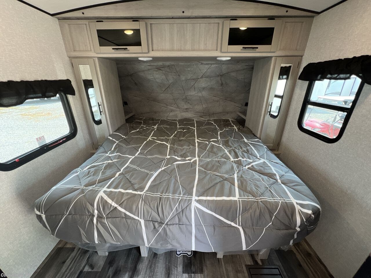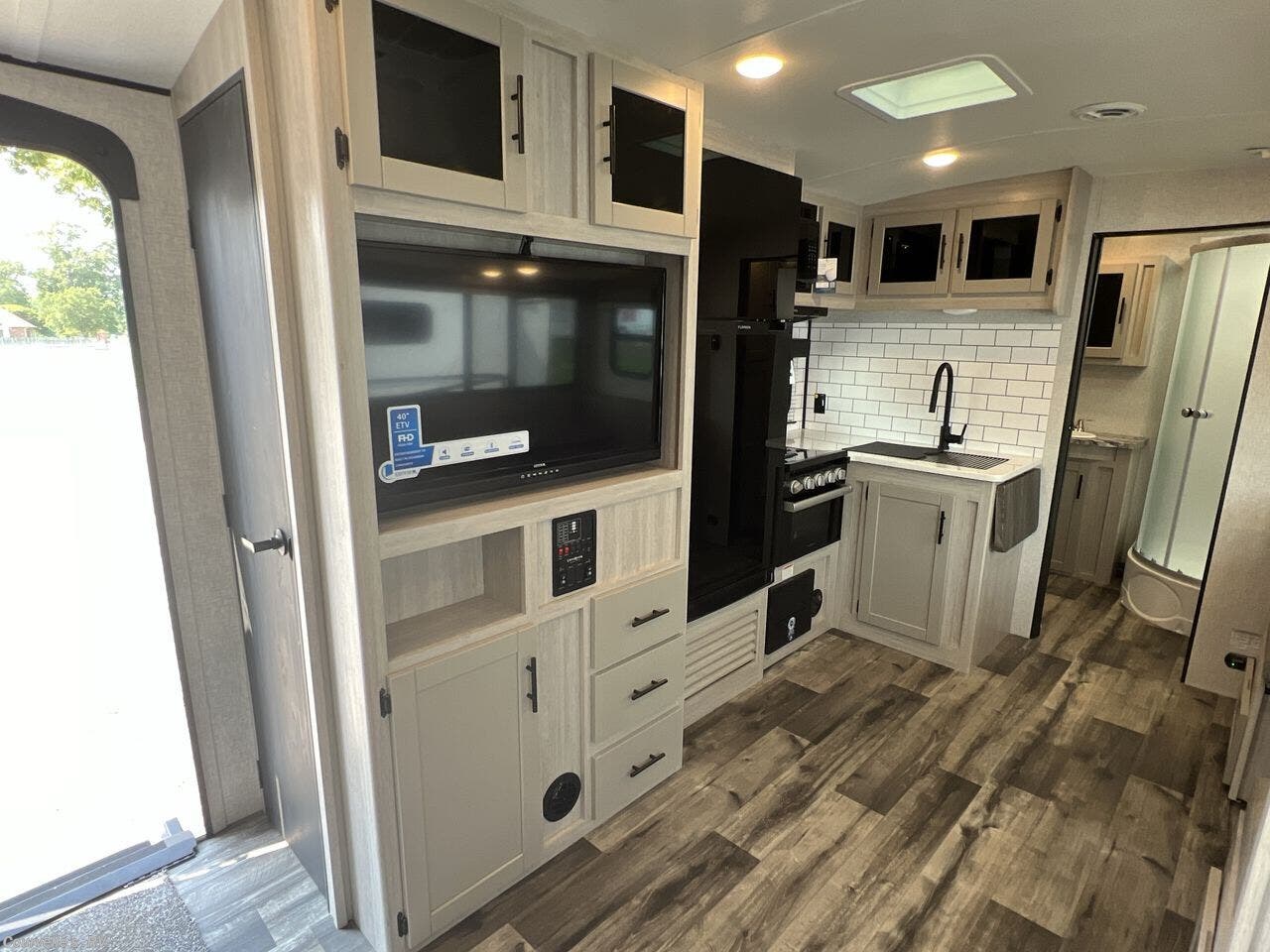 Black Tank Flush, Detachable Power Cord, Enclosed Underbelly, Exterior Speakers, External Shower, Fiberglass Sidewalls, Ladder, Outside Kitchen, Pass Thru Storage, Power Awning, Power Hitch Jack, Power Roof Vent, Power Stabilizer Jacks, Screen Door, Skylight, Slideout, Spare Tire Kit -