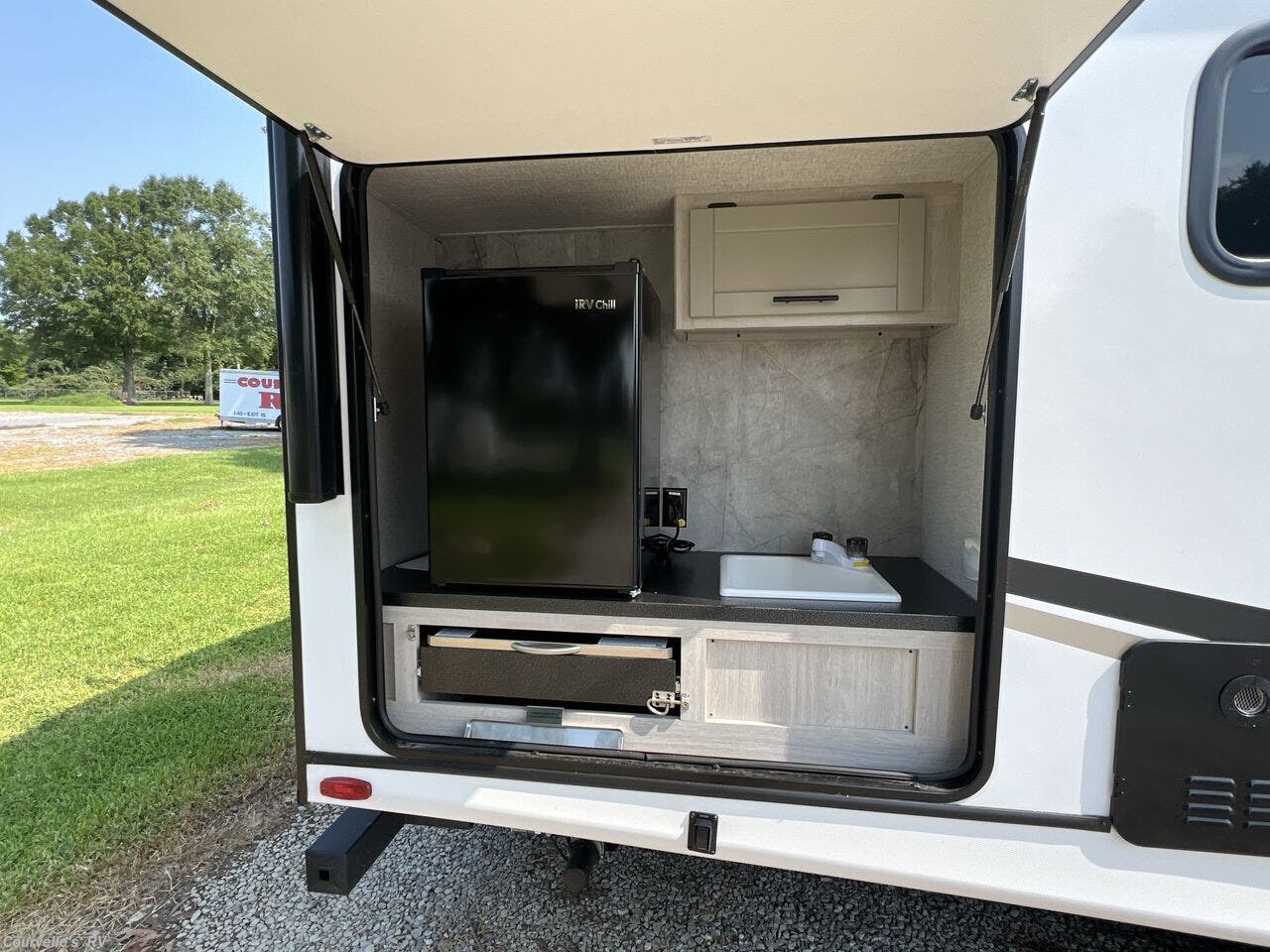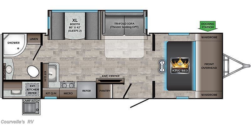 This 2024 CrossRoads Sunset Trail Super Lite 253RB is outfitted with all the features you need for happy camping. Be a part of the CrossRoads family with this 2024 CrossRoads Sunset Trail Super Lite 253RB. This rig sleeps 4, so it makes the perfect family RV. The one slide allows for easy setup and just enough extra space inside. It doesn’t matter whether you are cooking for one or an entire campground, this kitchen has everything you need with the fridge, oven, stove. Kick back and relax in the living area with the theater seating and , or TV. Remote work, homeschooling and dinner times are all made possible by the booth dinette. You’ll wake up feeling well-rested for your adventures in your king size bed. Keep a comfortable temperature inside your rig with the A/C option. Go longer without filling up thanks to the 45 gallon fresh water tanks. The exterior features make camping a breeze, such as black tank flush, detachable power cord, enclosed underbelly, exterior speakers, external shower, fiberglass sidewalls, ladder, outside kitchen, pass thru storage, power awning, power hitch jack, power roof vent, power stabilizer jacks, screen door, skylight, slideout and spare tire kit. An outside shower makes it easier to keep your adventure rig clean. The outside kitchen allows you to enjoy the Great Outdoors at meal time. Store all the gear you need for your travels with the spacious pass-through storage underneath.