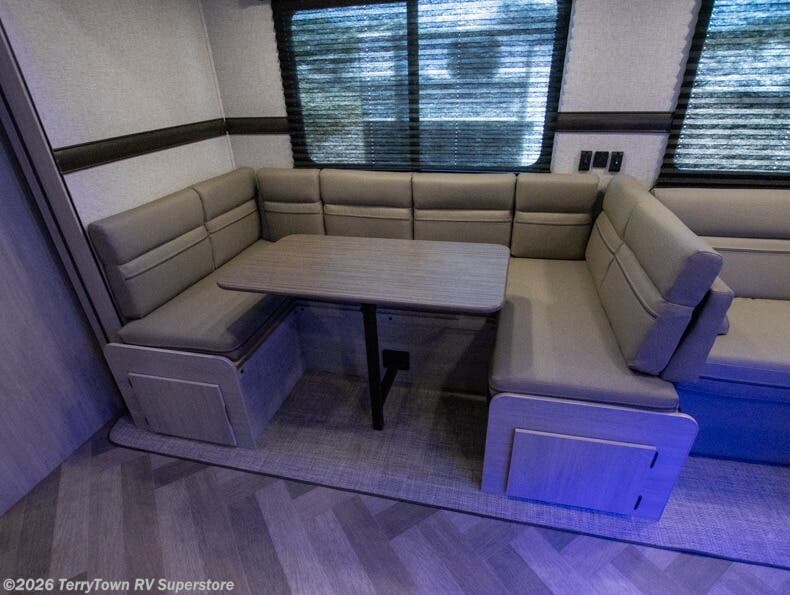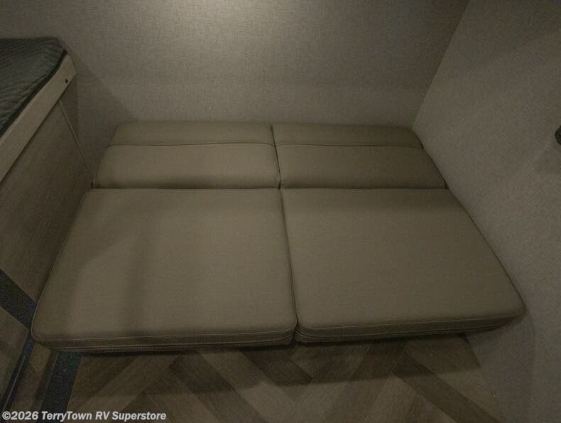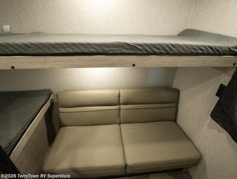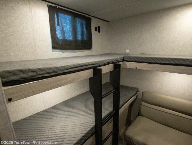 Pack your bags and load up the kids for a family vacation with this travel trailer! The kids will love having their own private bunkhouse with a set of bunk beds with a ladder, a dresser, and a bunk above a jackknife sofa. Just outside the bunkhouse is a linen closet across from full bathroom for everyone to start their days feeling clean and fresh. You can prepare delicious meals in the oven or even the microwave, and clean up easily with the stainless steel sink and stainless steel high-rise faucet. There is an entertainment center for all to enjoy while relaxing on either the jackknife sofa or the U-shaped dinette slide. You and your spouse will enjoy a good night's rest on the 60" x 74" RV queen bed, and you can charge your electronics too with the USB ports. There is also a TV hook-up for those nights when you just can't fall asleep.