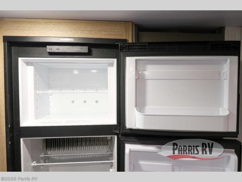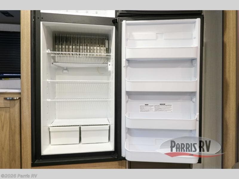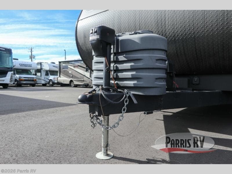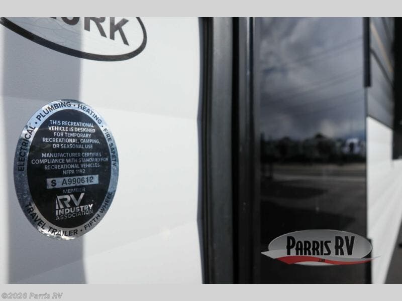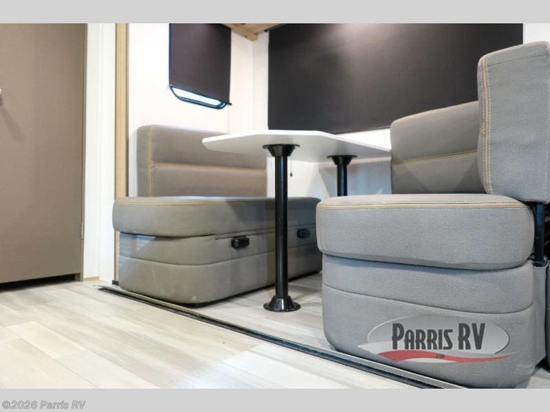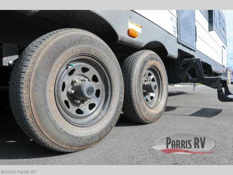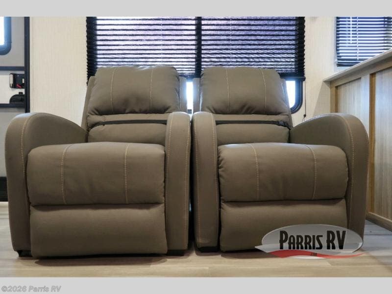 Start a new journey in this cozy travel trailer for five to six. The rear kitchen includes ample counter space to prep meals, a three burner cooktop, plus a spacious pantry where you can keep dry goods and snacks. There are two lounge chairs to relax on, along with a Lux Lounge, and a booth dinette. The fireplace is sure to make your space feel a little more like home, as well as the front private bedroom with a queen bed. The spacious full bath is close by the bedroom for convenience, and there is a bedroom wardrobe so you're not living out of a suitcase all weekend! You can unload your camping chairs from the full pass-through storage, grab a cold drink from the exterior refrigerator, and relax under the 18' patio awning!