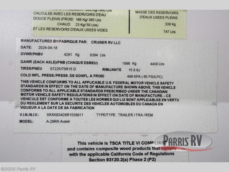 Request More Info on this 2024 Cruiser RV Avenir A-29RK Offered for sale by Parris RV