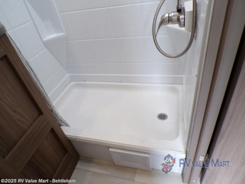 This travel trailer is perfect for a couple who wishes to escape the hustle and bustle of everyday life! Enjoy a good night's rest each night on the front queen bed with drawers below to store your camping essentials. Get squeaky clean each morning in the rear corner bathroom with the neo-angled shower then grab some bacon from the 5 cu. ft. refrigerator and fry it up on the two burner cooktop while you drink a cold glass of orange juice. The sofa slide creates more walking around space, a place for an afternoon nap, and even a sleeping space for an extra guest to tag along. Stay protected by the 12' power awning with LED light and store your outdoor gear in the front exterior full pass-through storage area!