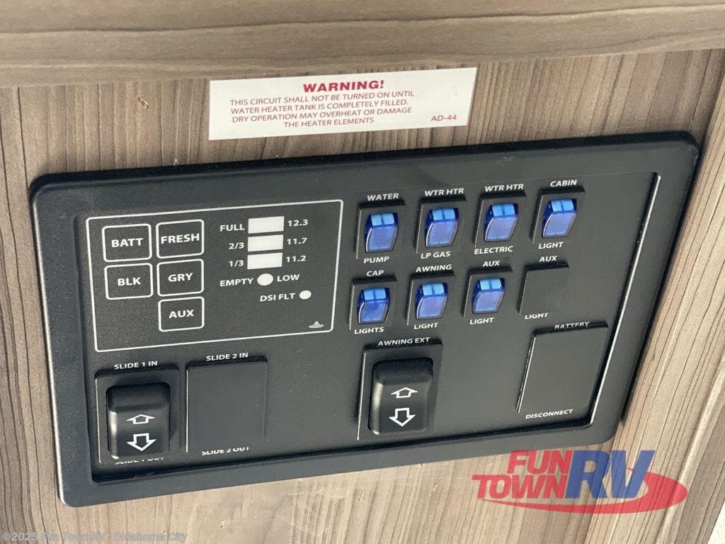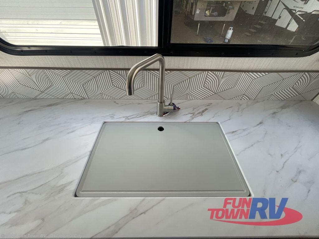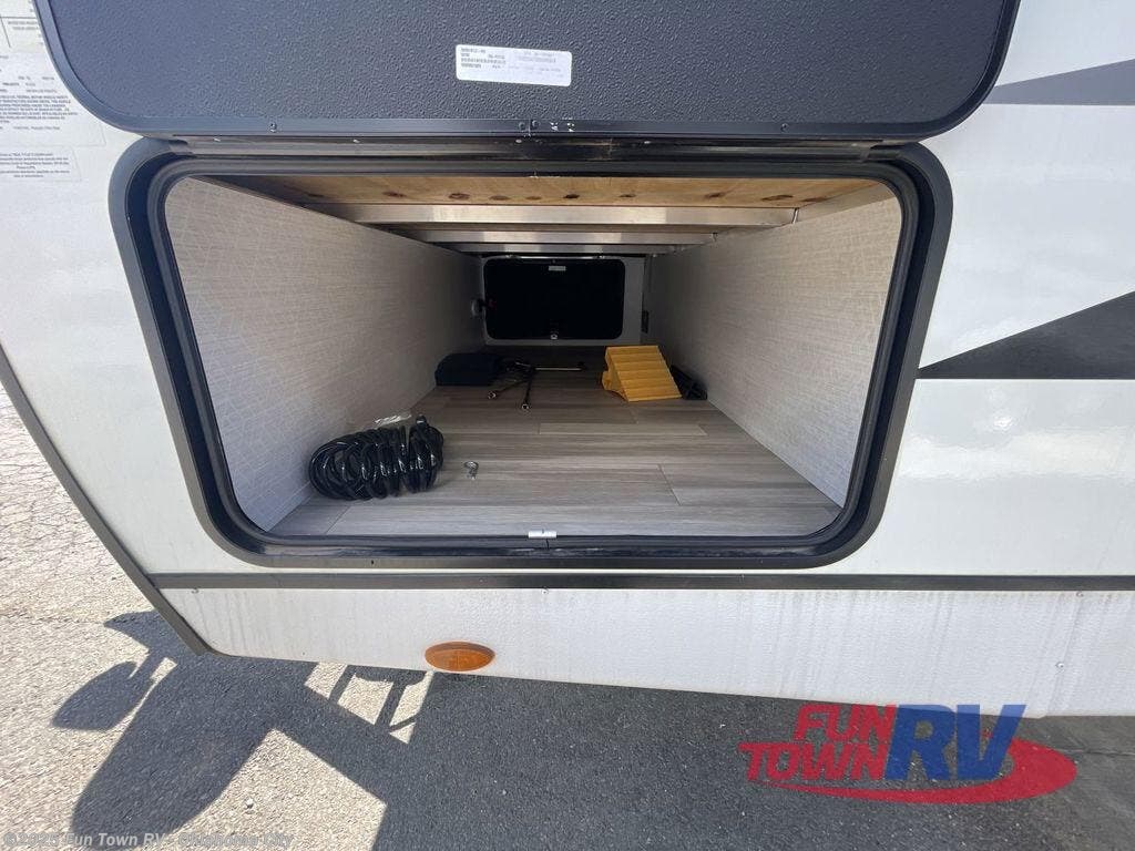 Step into this rear kitchen travel trailer for fun in the great outdoors. You will love the amount of counter space you have, plus there is a booth dinette for dining and hanging out. The large slide out opposite provides more floor space, a sofa, a walk-in pantry and refrigerator for your perishables. The front private bedroom will feel just like home with its dual wardrobes, a dresser/wardrobe, plus a sliding king bed for more space to get dressed each morning. And don't forget to relax outside under the 20' awning with LED light, and utilize the outdoor refrigerator and griddle when feeding a crew.