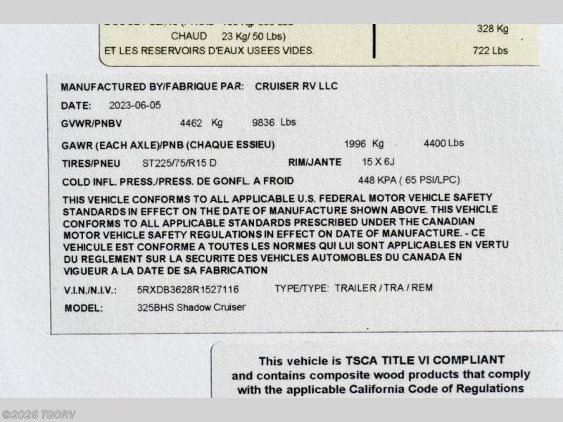 Request More Info on this 2024 Cruiser RV Shadow Cruiser 325BHS Offered for sale by TGORV