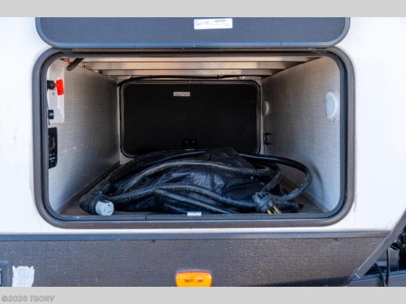 Built with AZDEL composite wall panels, this trailer avoids the moisture issues common with wood-backed construction, helping keep weight down and durability up over time. An enclosed, heated underbelly, ducted A/C, and high-output furnace help extend the camping season, while pass-through storage keeps gear accessible and out of the way.