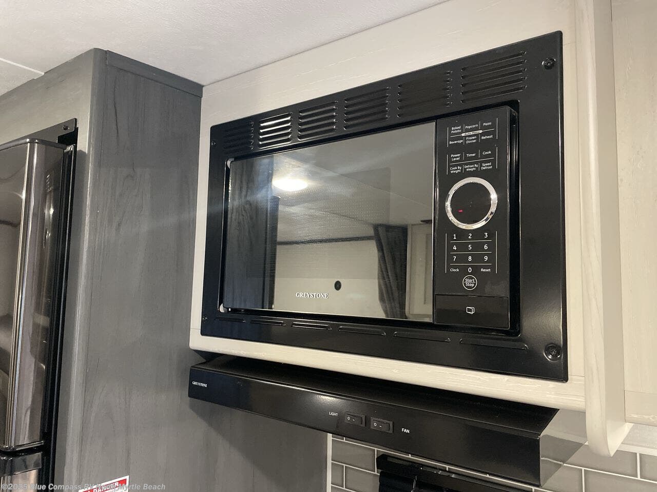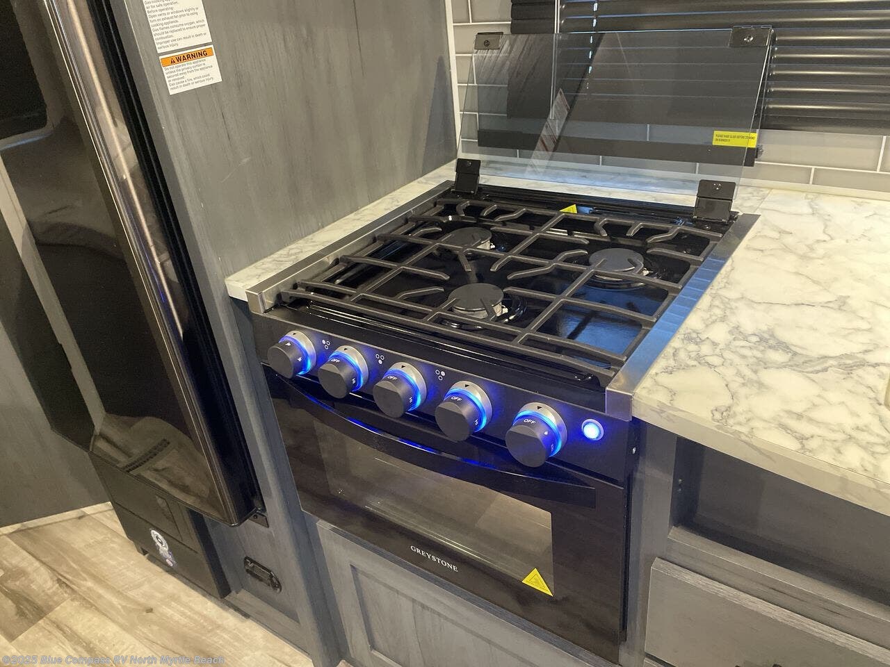 Enjoy privacy in the front bedroom when you close the curtains. You can sleep on your own residential queen bed, and there are two wardrobes to stow away your clothes. Your family and friends can sleep on the double-size bunks in the rear next to the full bathroom with a shower, and the booth dinette as well as the sofa provide extra sleeping space. The 10 cu. ft. 12V refrigerator will hold your cold items, and you can cook using the range top, and keep everything clean using the galley sink with high rise faucet. And the overhead cabinets will hold your dishes, snacks and such.