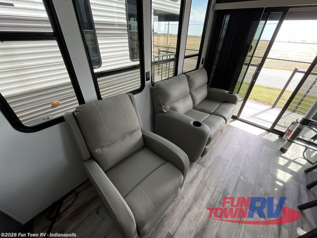 With any Aspen Trail Loft destination trailer, you can enjoy extended stays without the hassle. The fiberglass insulation throughout, 3/8" walk-on roof decking, and chambered chassis are just a few of the durable construction advantages. The high-efficiency 15k BTU A/C cooling system, second 13.5 BTU A/C, and 35,000k BTU furnace will keep you comfortable year around, and the tankless on-demand water heater is an added convenience you won't want to camp without. You'll enjoy spending time outdoors with the large awning and light strip, and the folding entry assist handle makes it easy to come and go. A central vacuum system will make it easier to clean up and an Aspen Trail command center provides a central place to control your unit's functions. The interior of the Aspen Trail Loft features the Home Series interior design package, seamless countertops, residential appliances, blackout roller shades throughout, and an 8 ft. ceiling height with a 7 ft. slide out height.