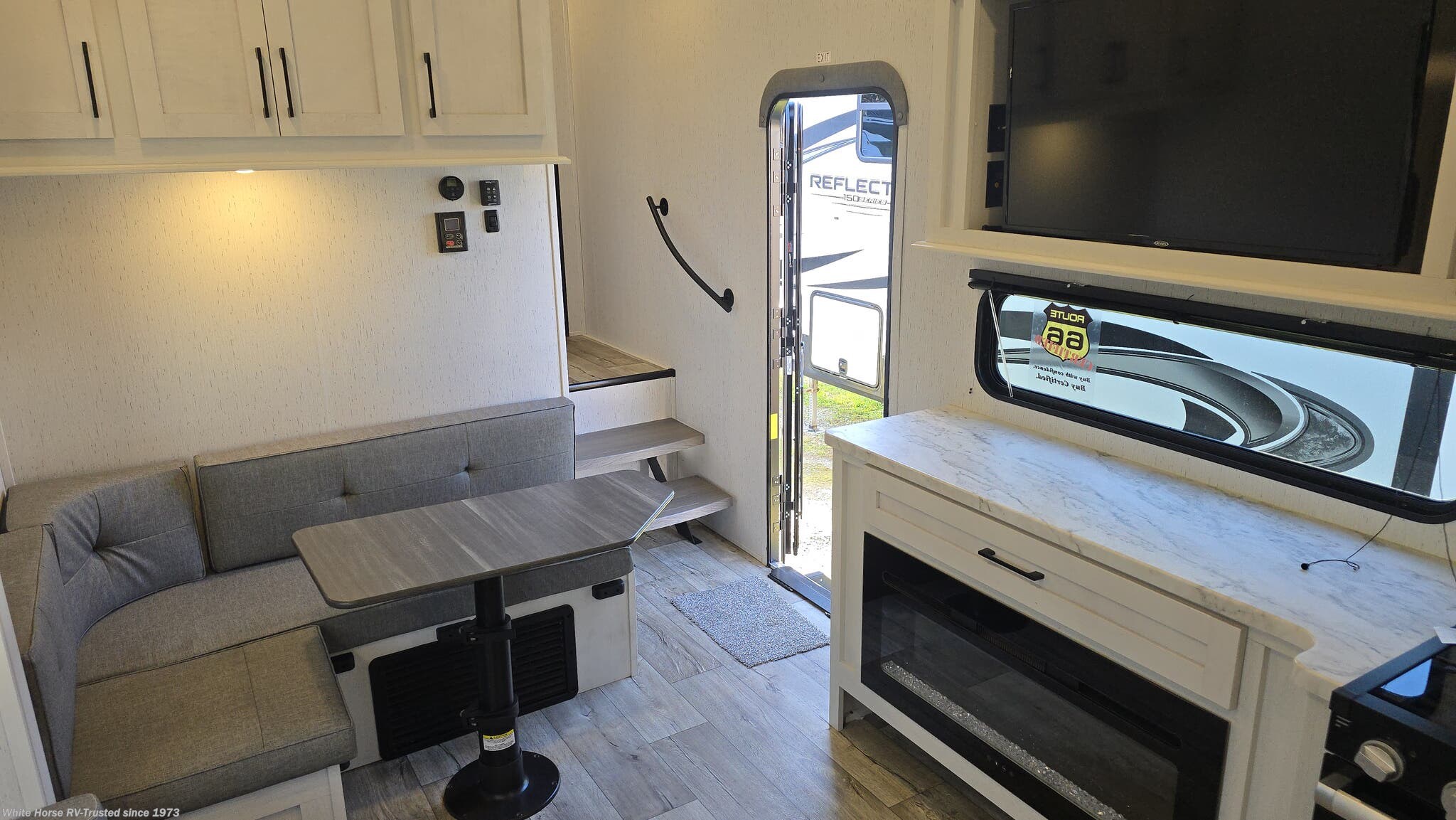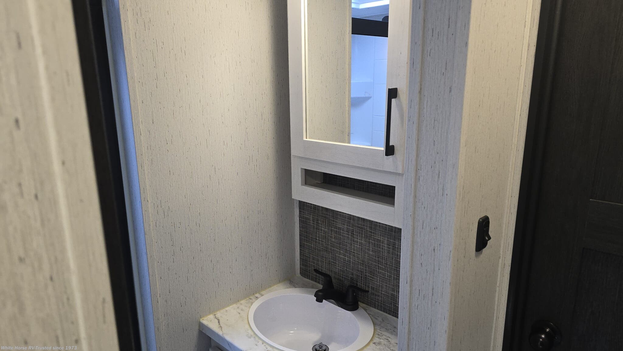 Dinette, Fireplace, Medicine Cabinet, Queen Bed, Shower, Solid Surface Countertops, Theater Seating, Toilet, Vanity, Washer/Dryer Prep