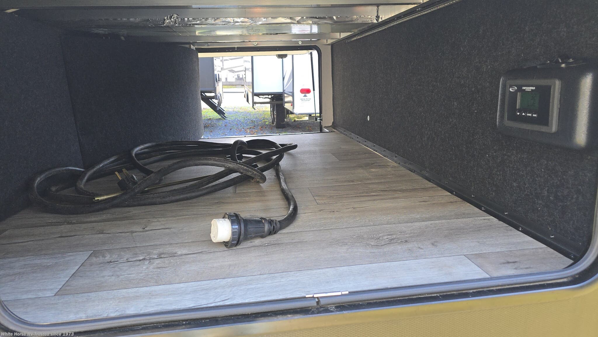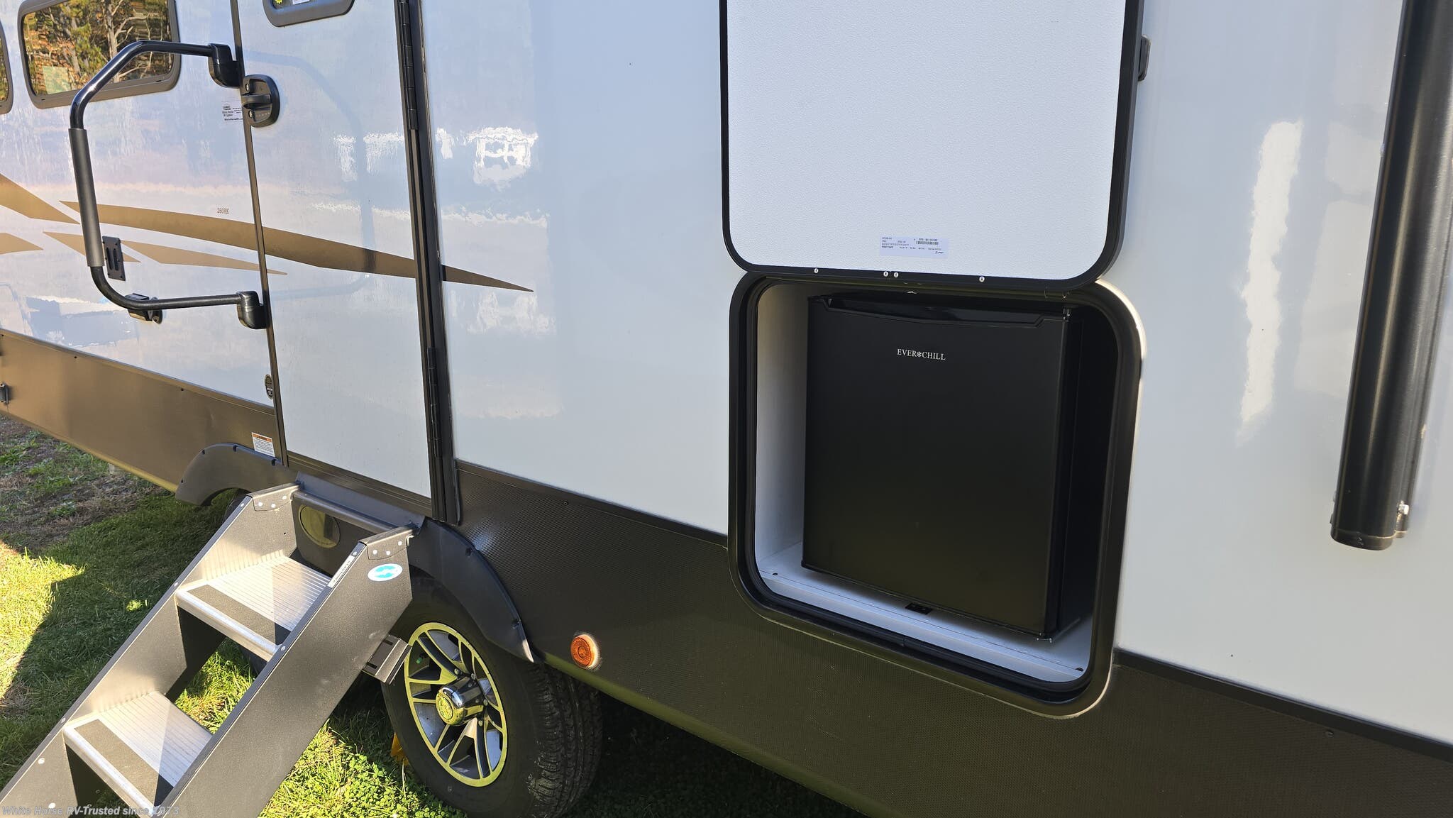 Exterior: Power awning with LED lights, solid entry steps, pass-through storage